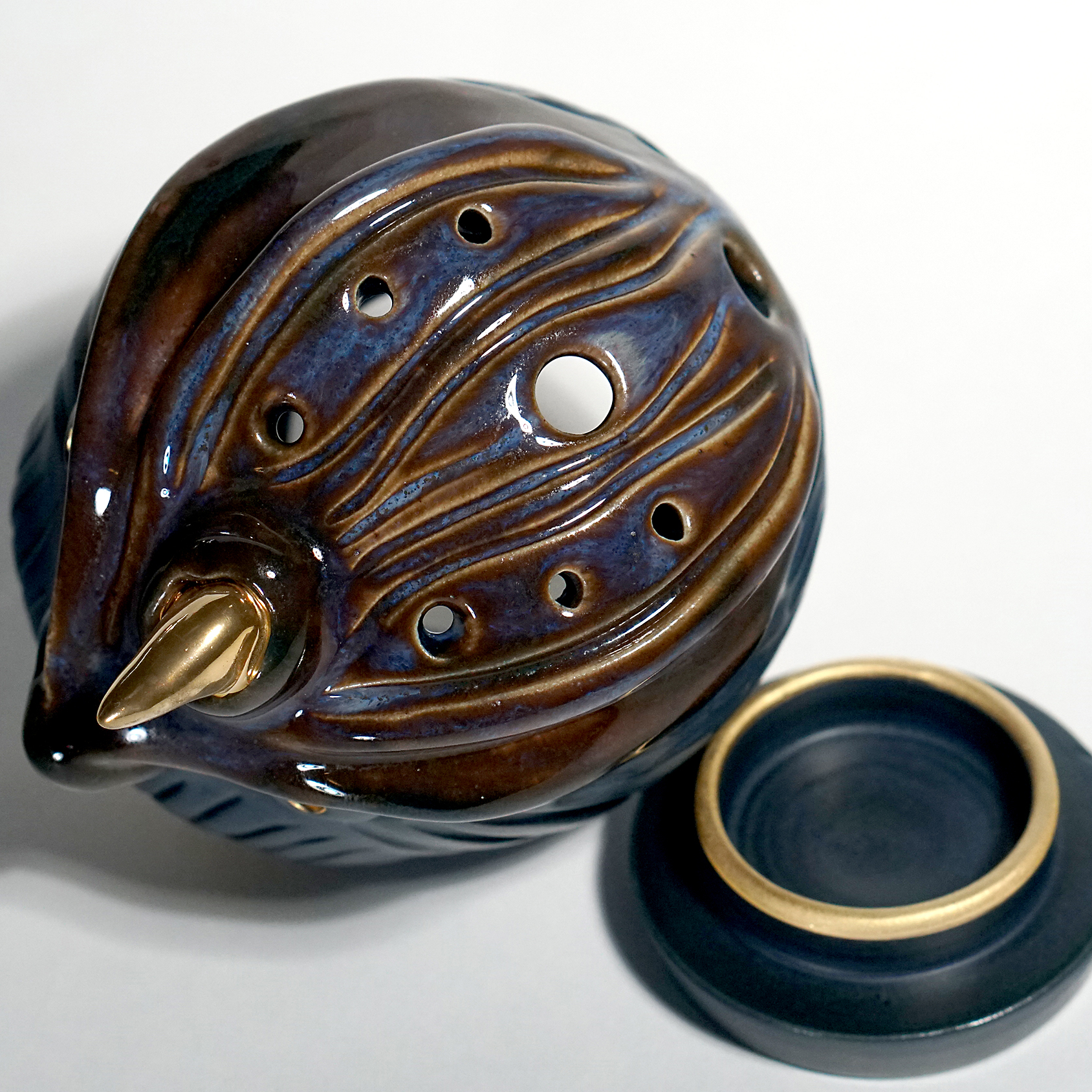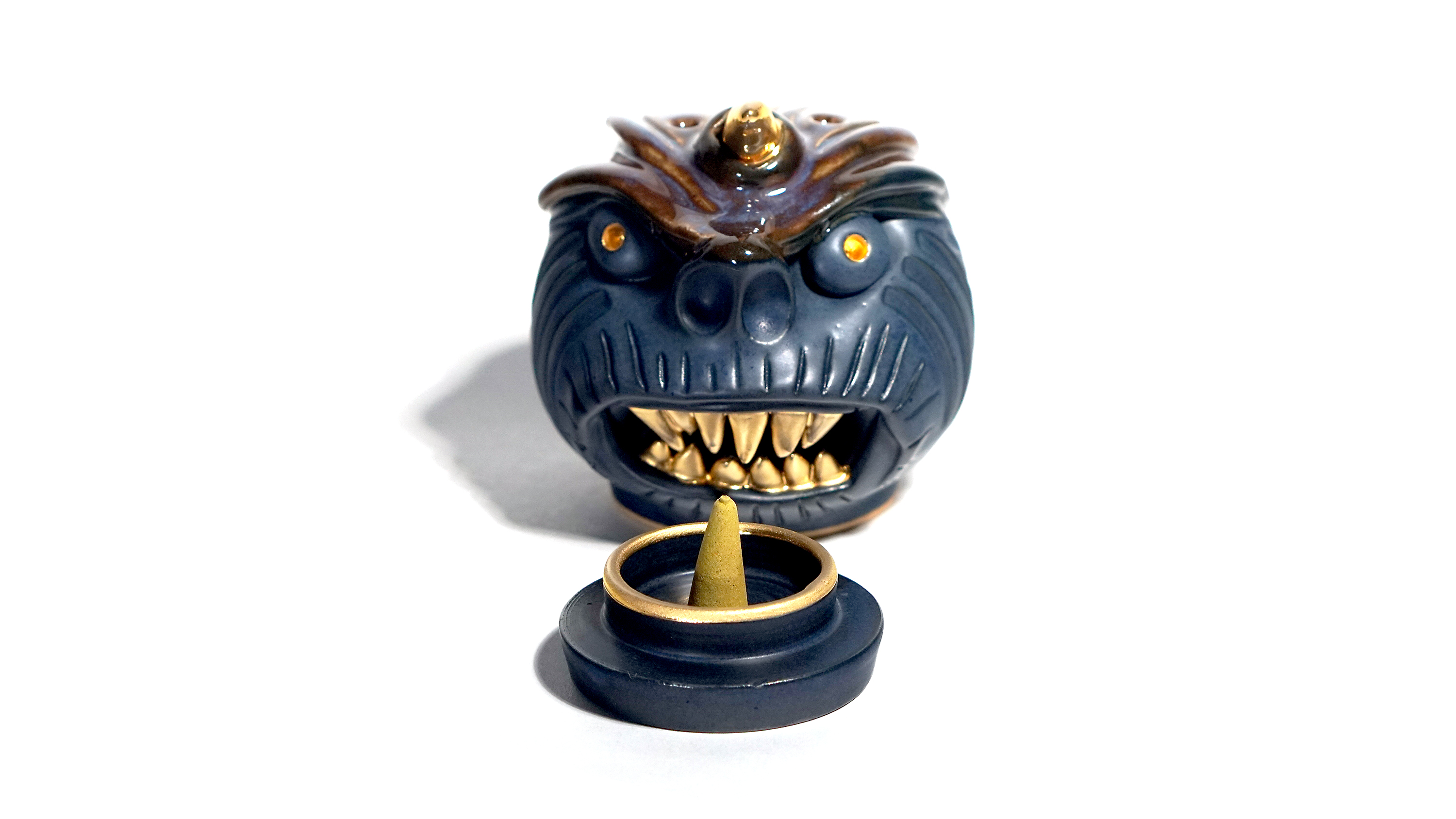 Made by sculpting and wheel throwing, the scent of incense burner spreads subtly through the hollow parts of the lid.