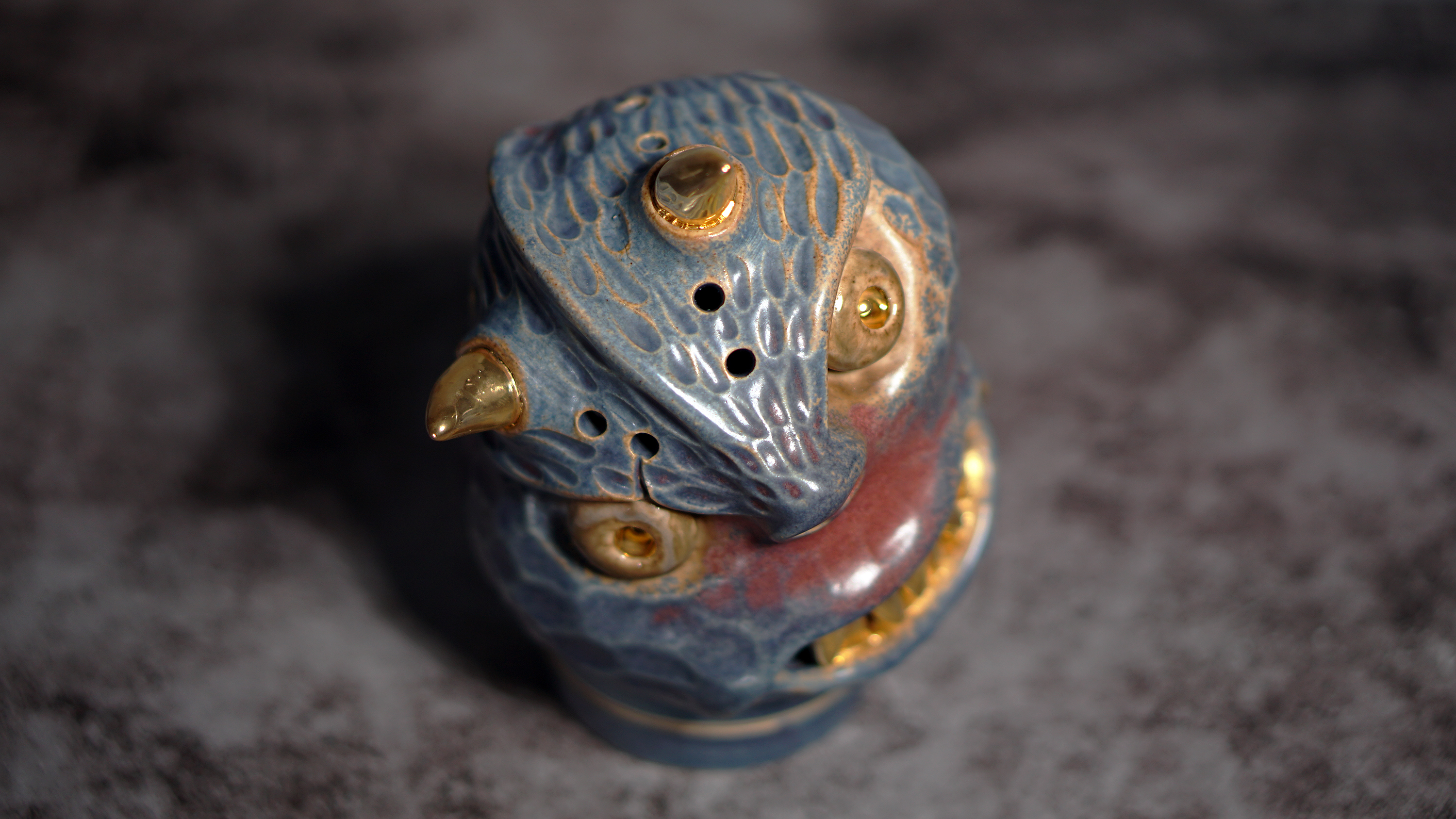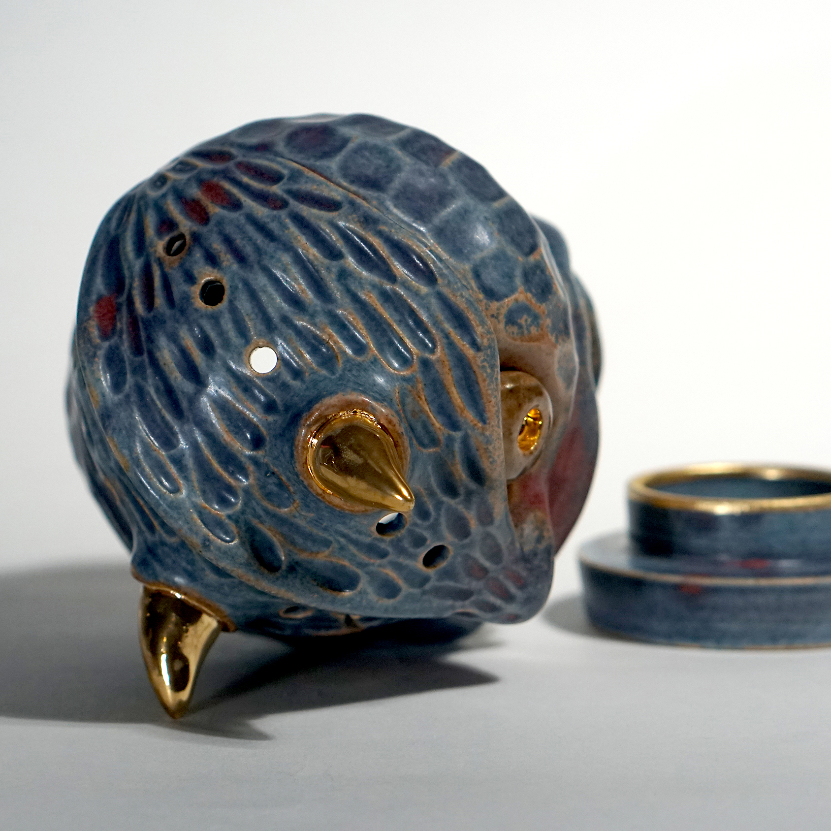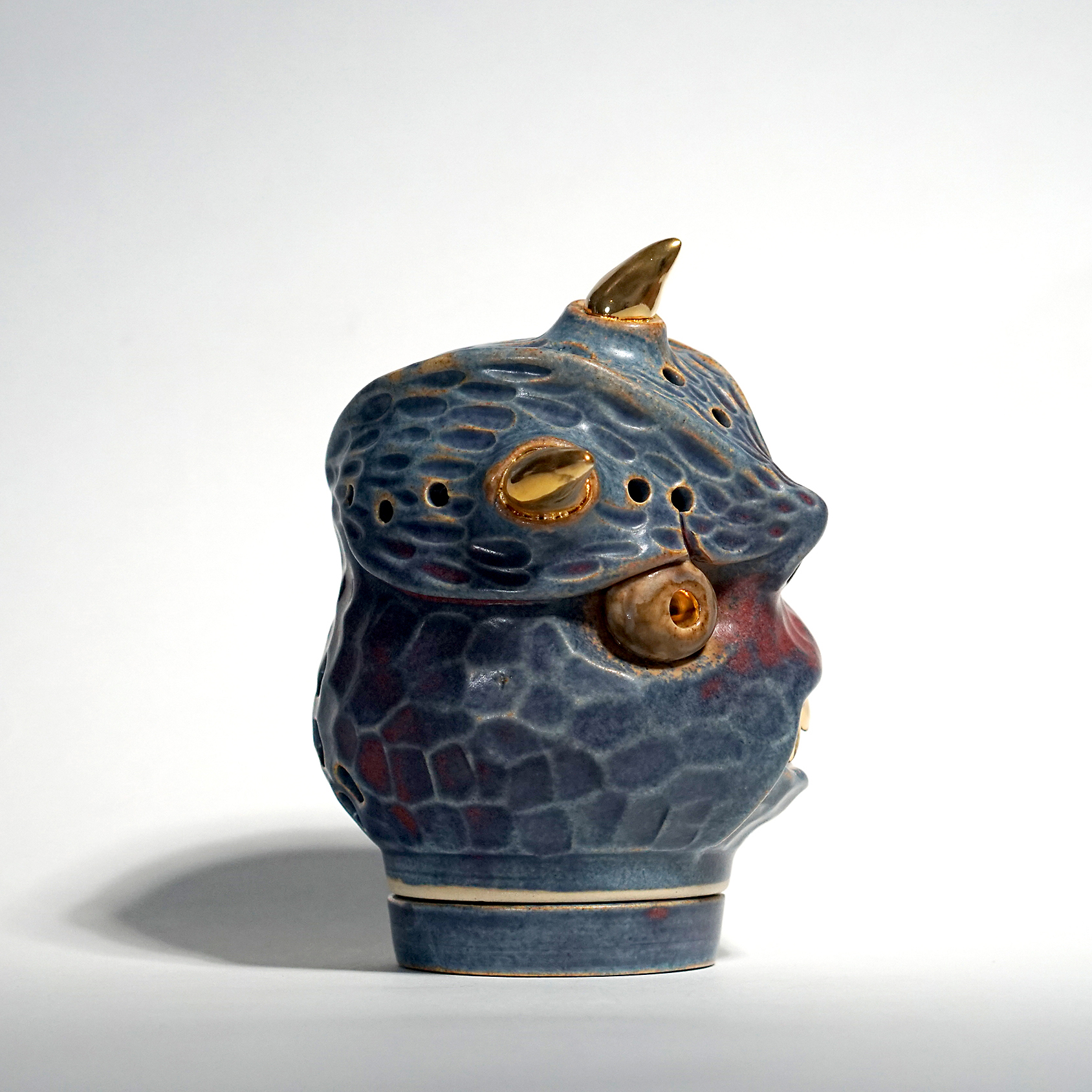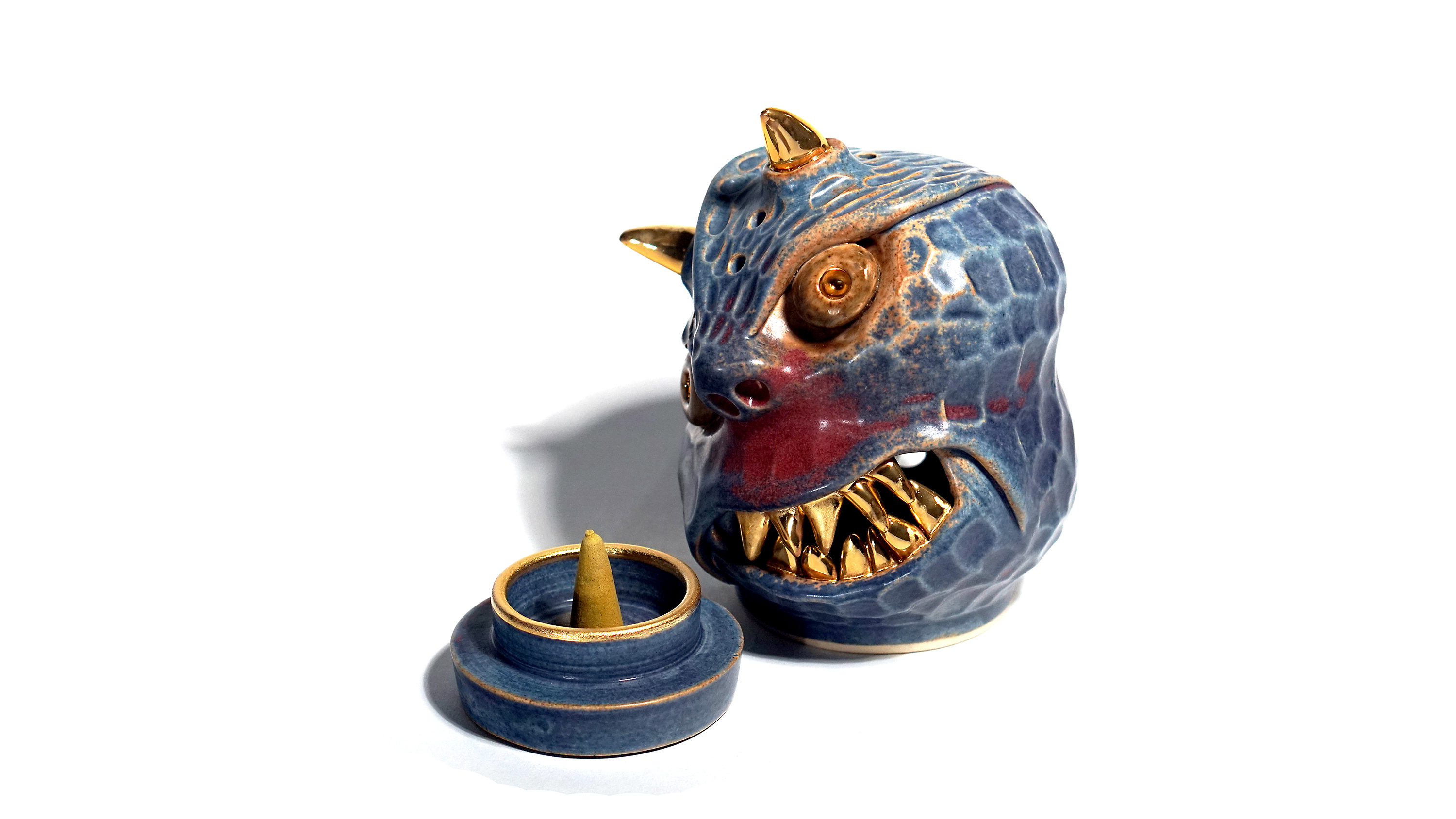 Made by sculpting and wheel throwing, the scent of incense burner spreads subtly through the hollow parts of the lid.