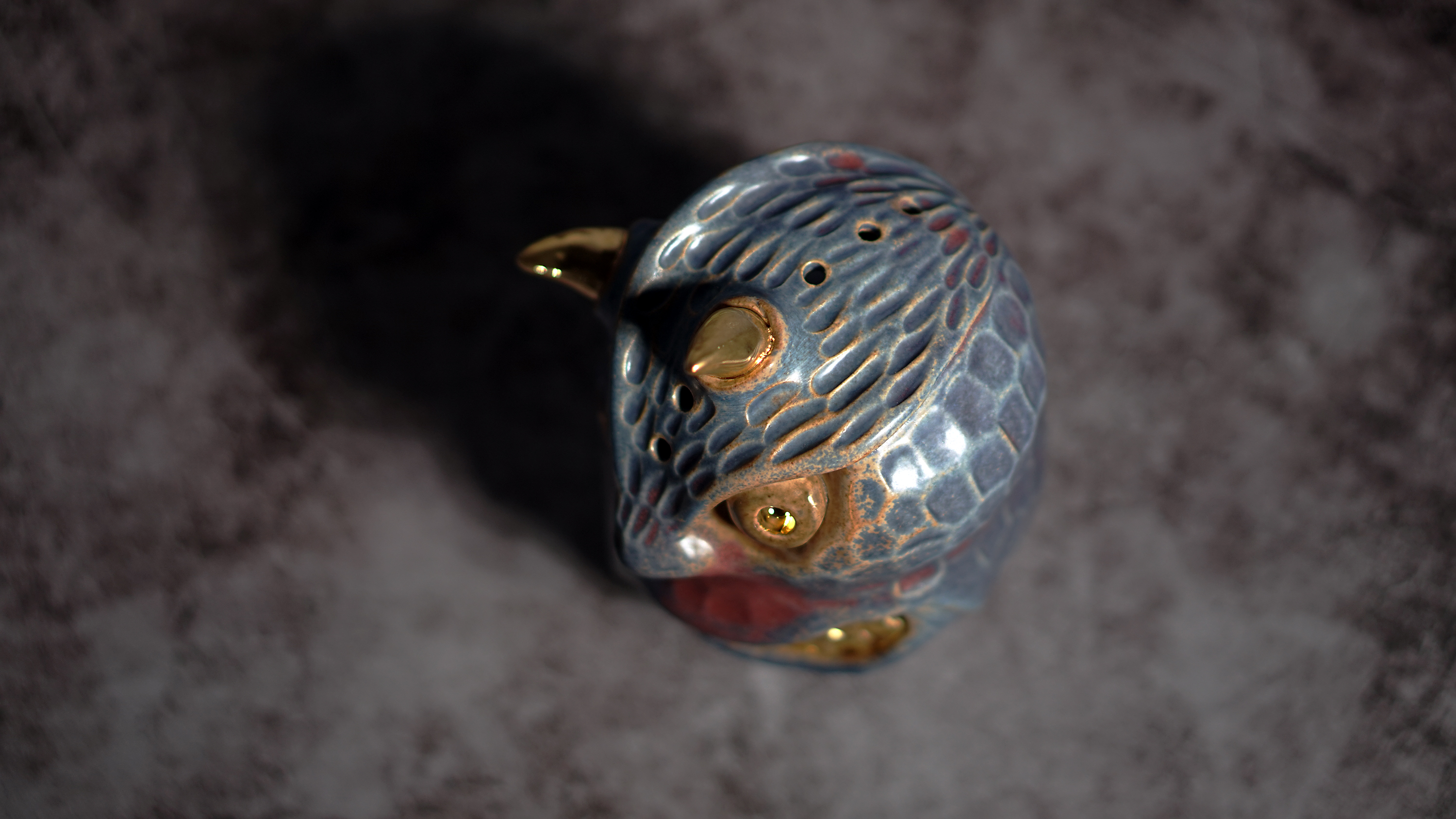Made by sculpting and wheel throwing, the scent of incense burner spreads subtly through the hollow parts of the lid.