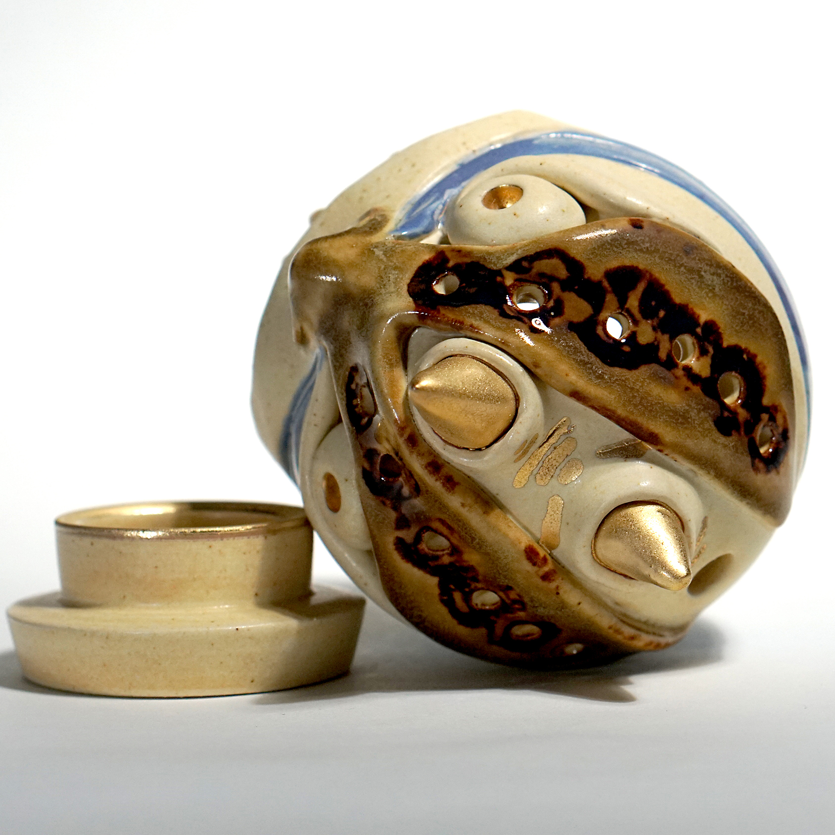 Made by sculpting and wheel throwing, the scent of incense burner spreads subtly through the hollow parts of the lid.