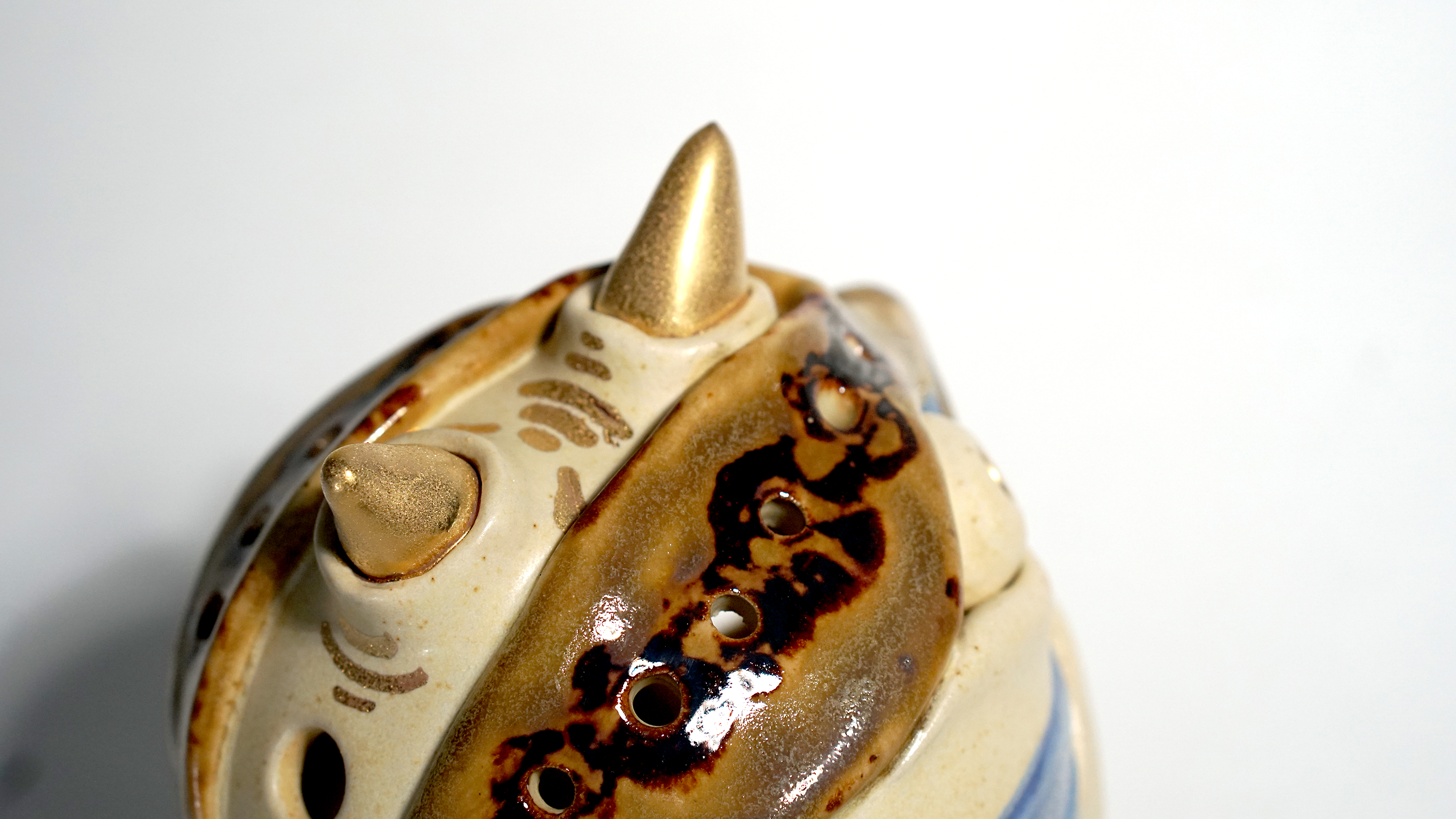 Made by sculpting and wheel throwing, the scent of incense burner spreads subtly through the hollow parts of the lid.