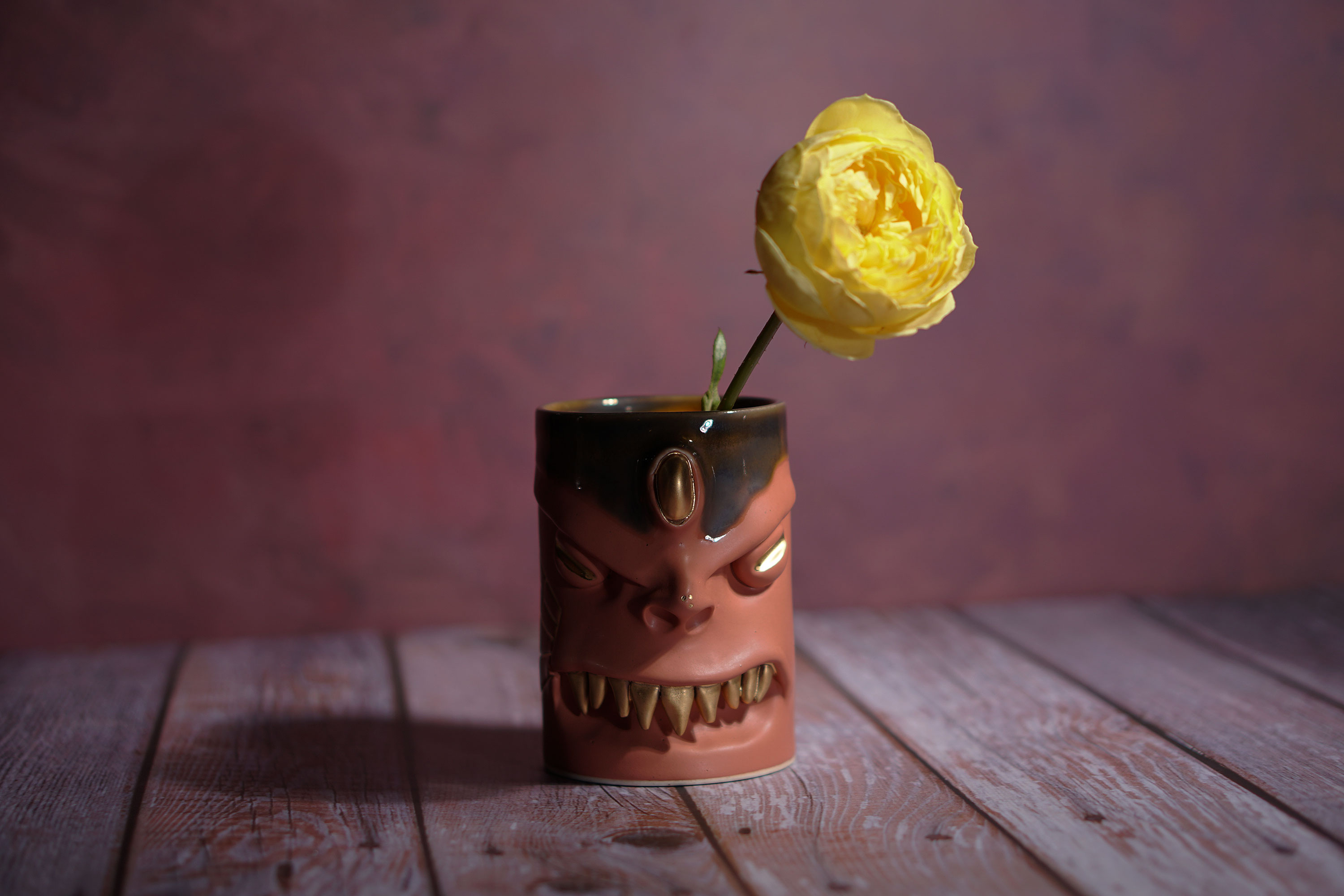 They make gold for good people, protect their homes, and help them succeed. Their figures exist in people's imaginations, and sometimes they are seen as men with magical powers, or they are portrayed as terrifying monsters. You can meet Korean goblin faces imagined by ceramic artist Hyung Jun Kim in our brand.