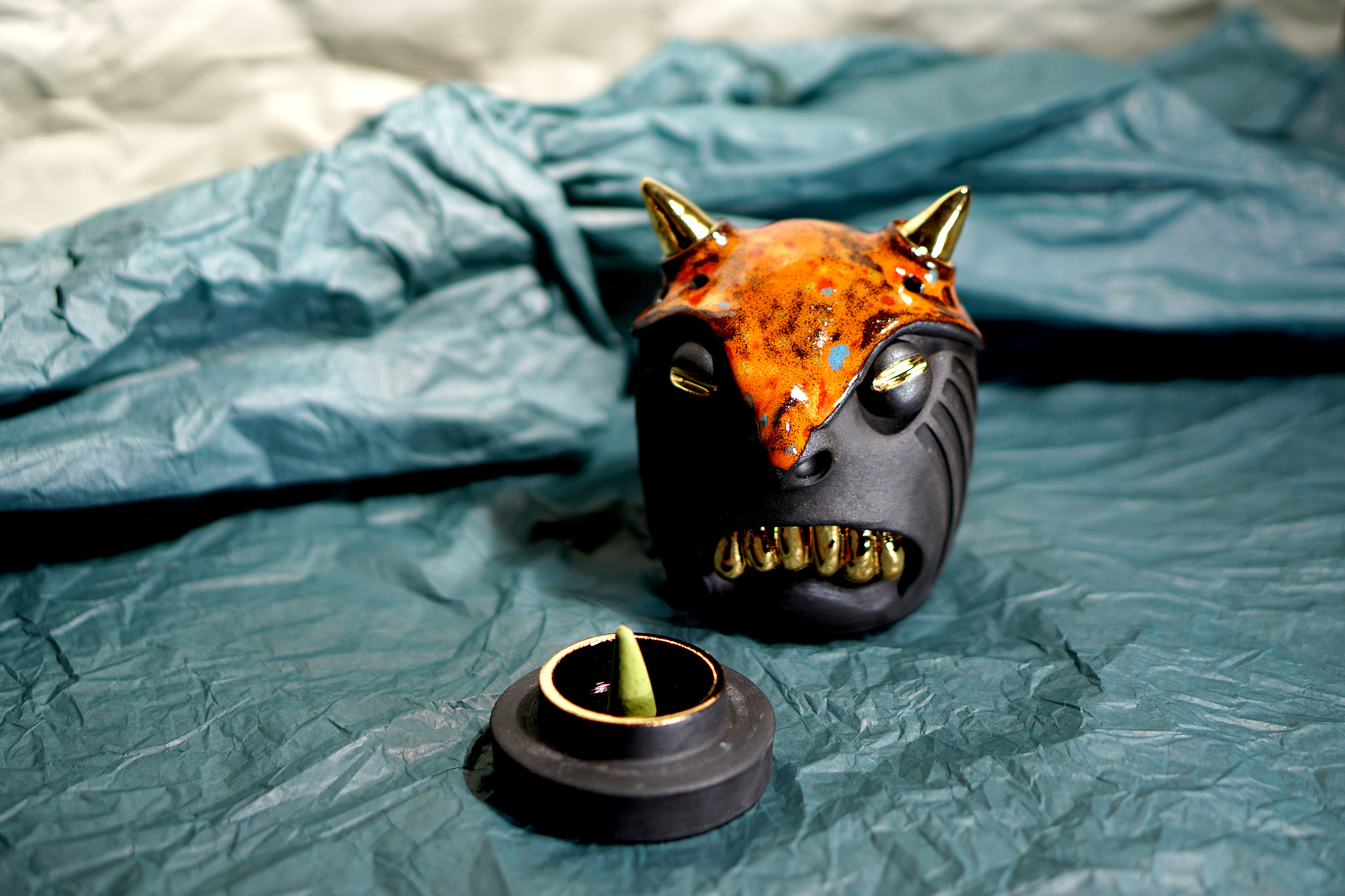 Made by sculpting and wheel throwing, the scent of incense burner spreads subtly through the hollow parts of the lid.