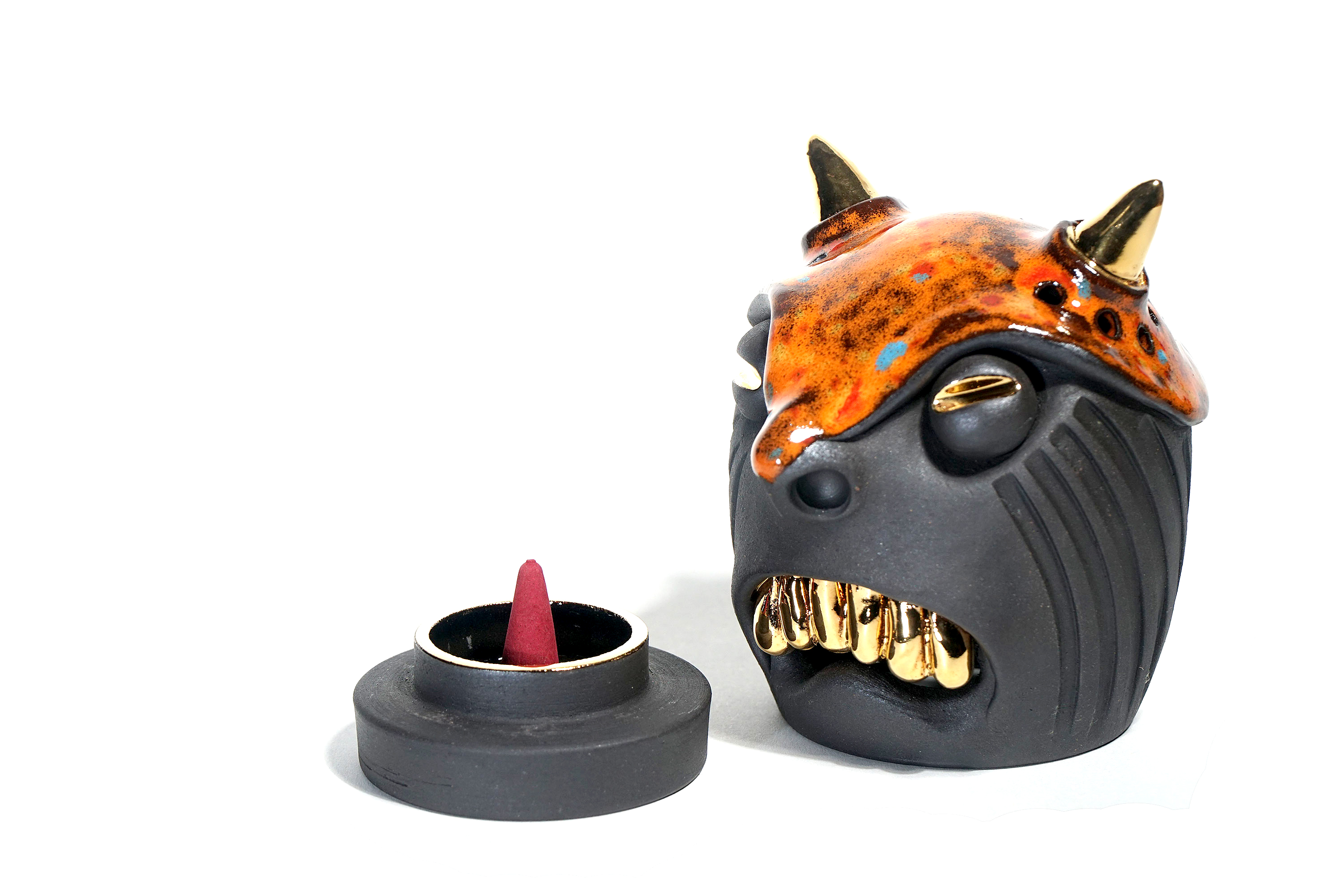 Made by sculpting and wheel throwing, the scent of incense burner spreads subtly through the hollow parts of the lid.