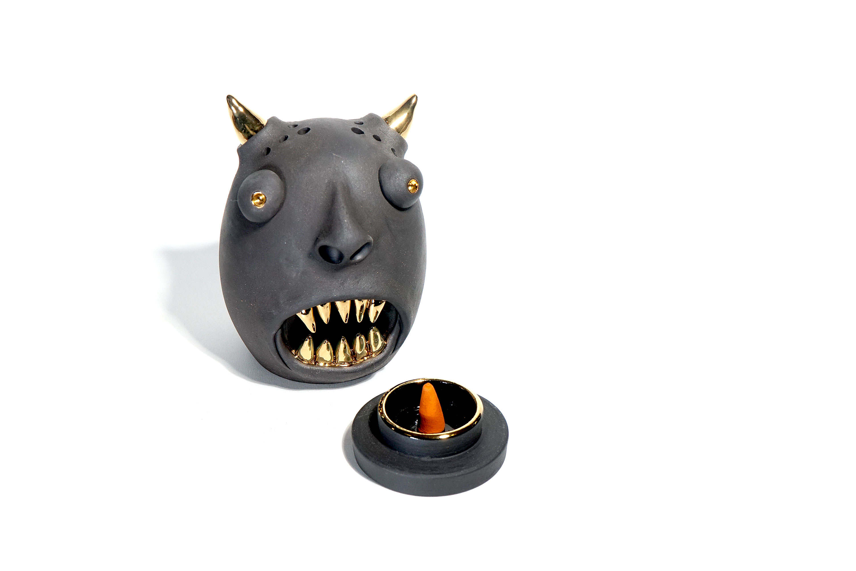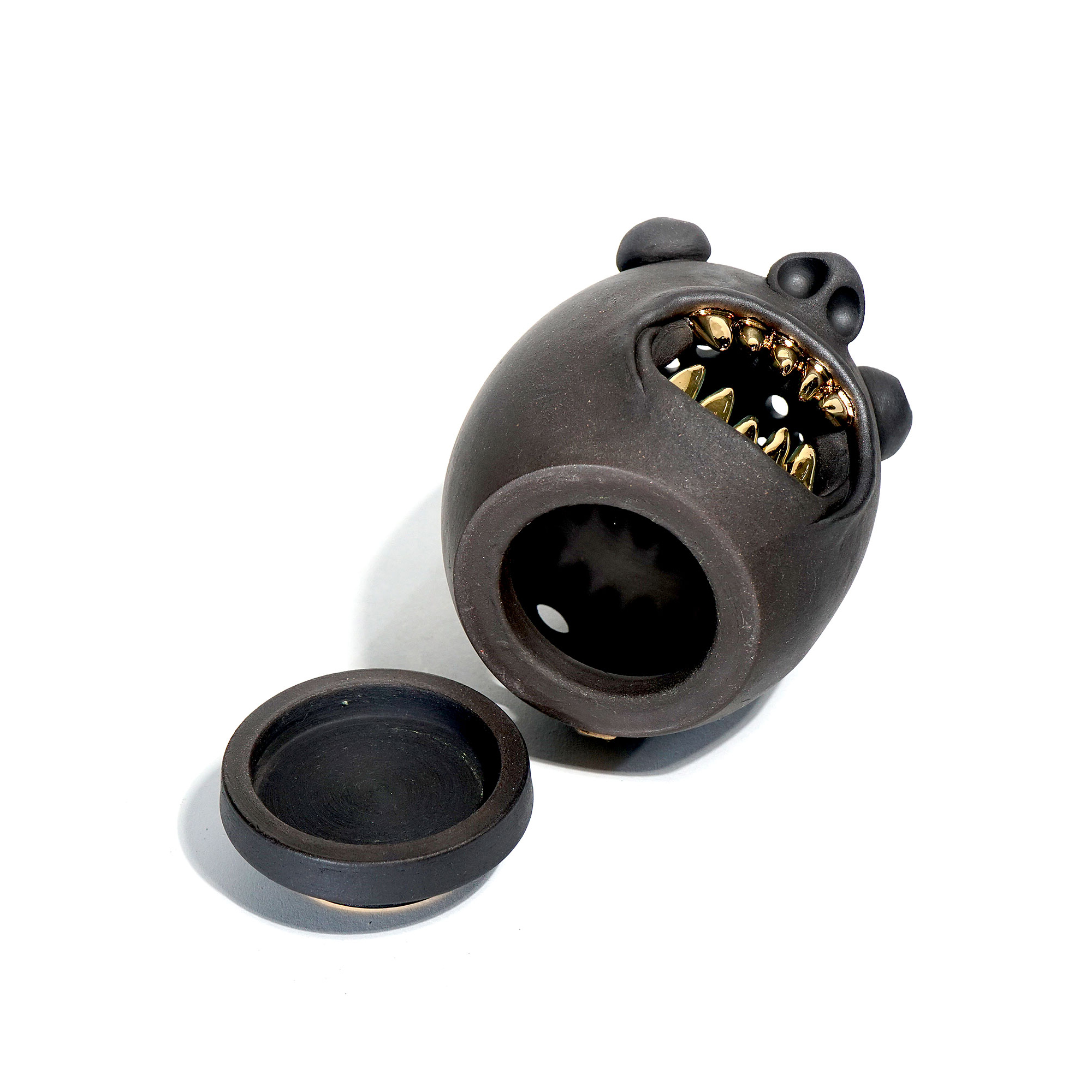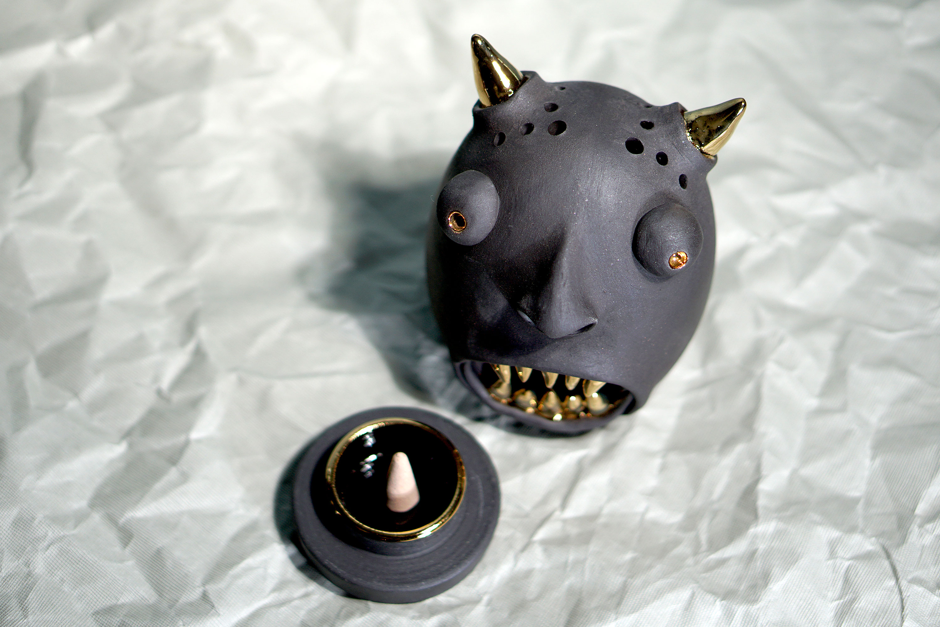 Made by sculpting and wheel throwing, the scent of incense burner spreads subtly through the hollow parts of the lid.