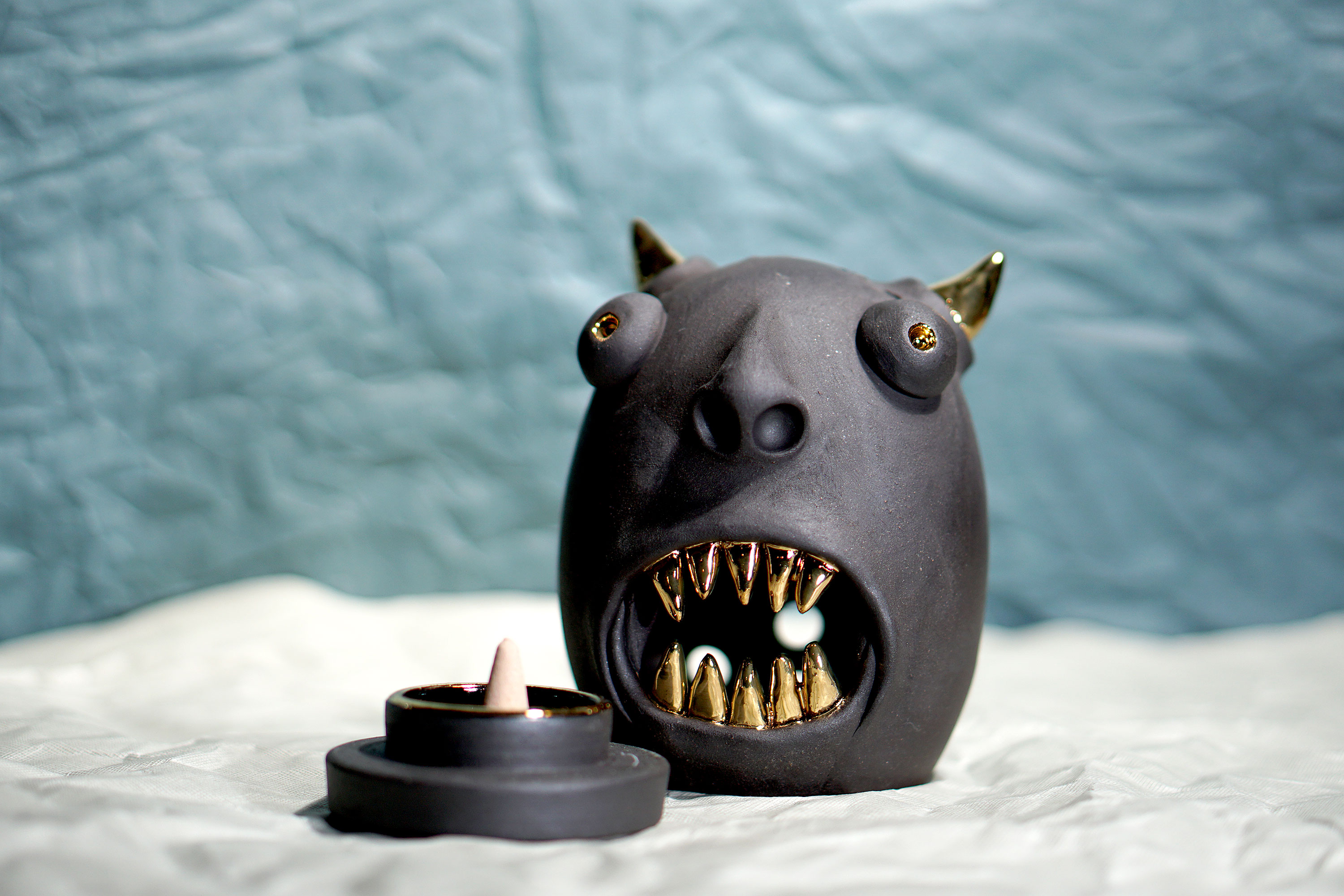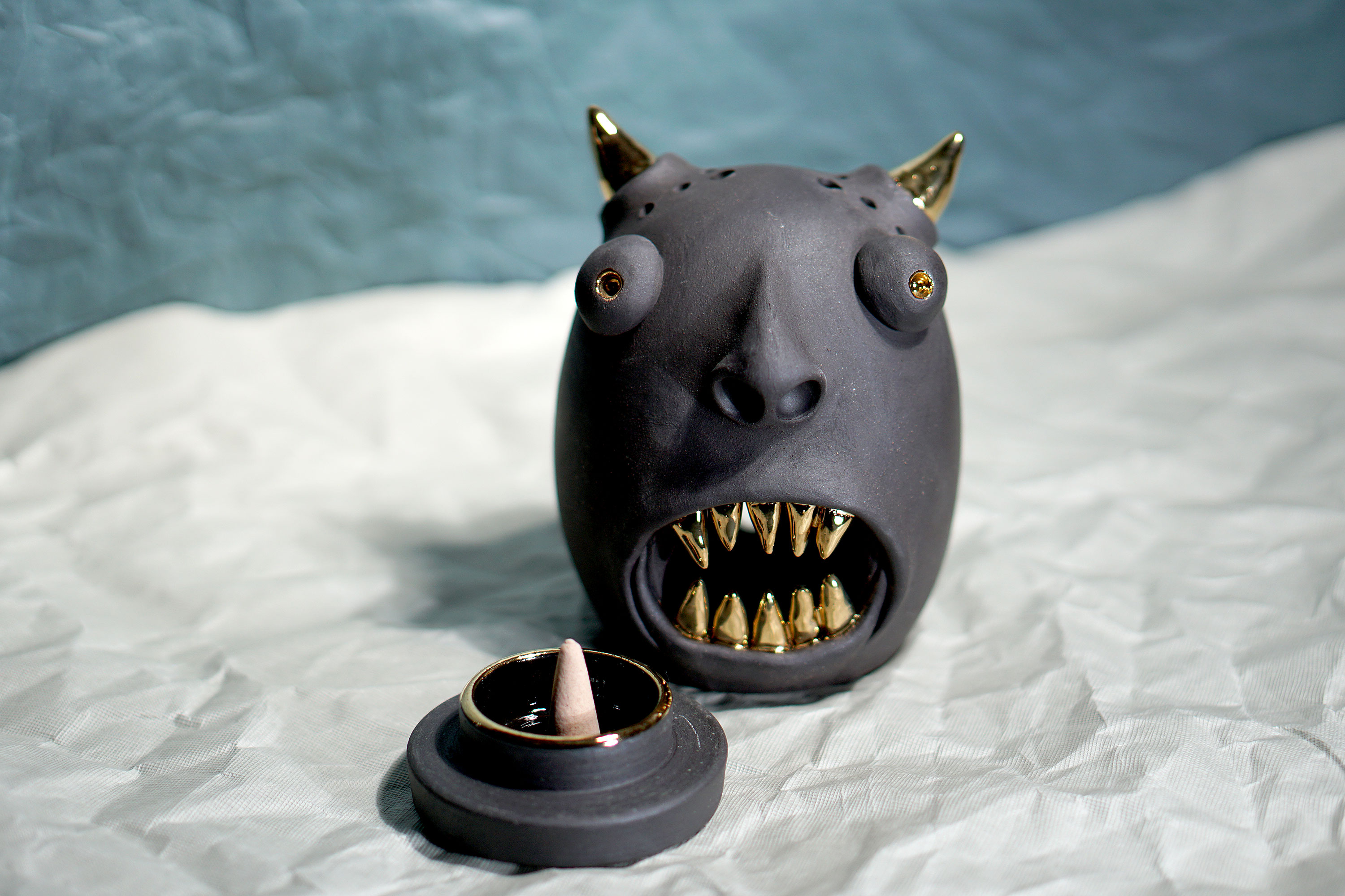 Made by sculpting and wheel throwing, the scent of incense burner spreads subtly through the hollow parts of the lid.