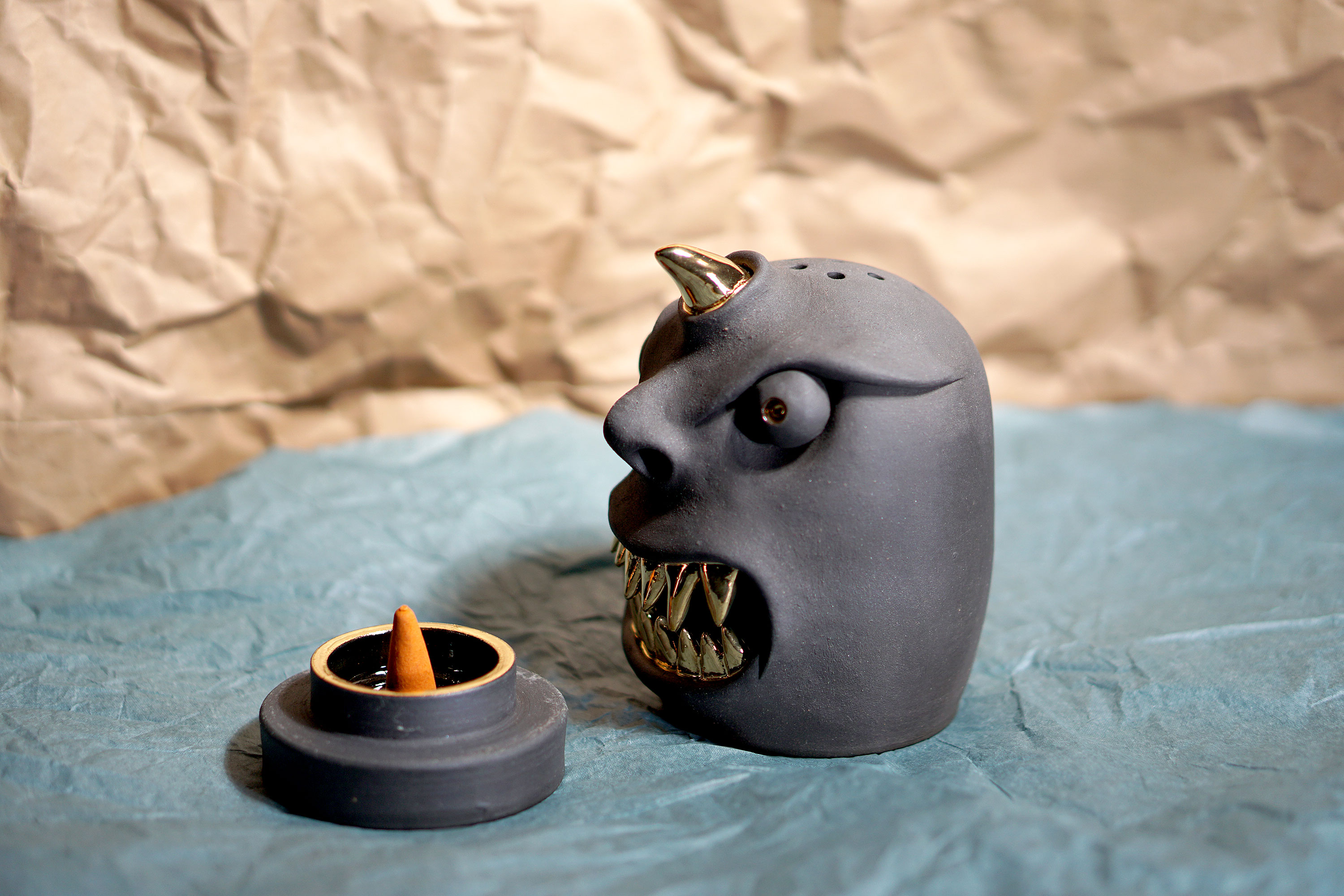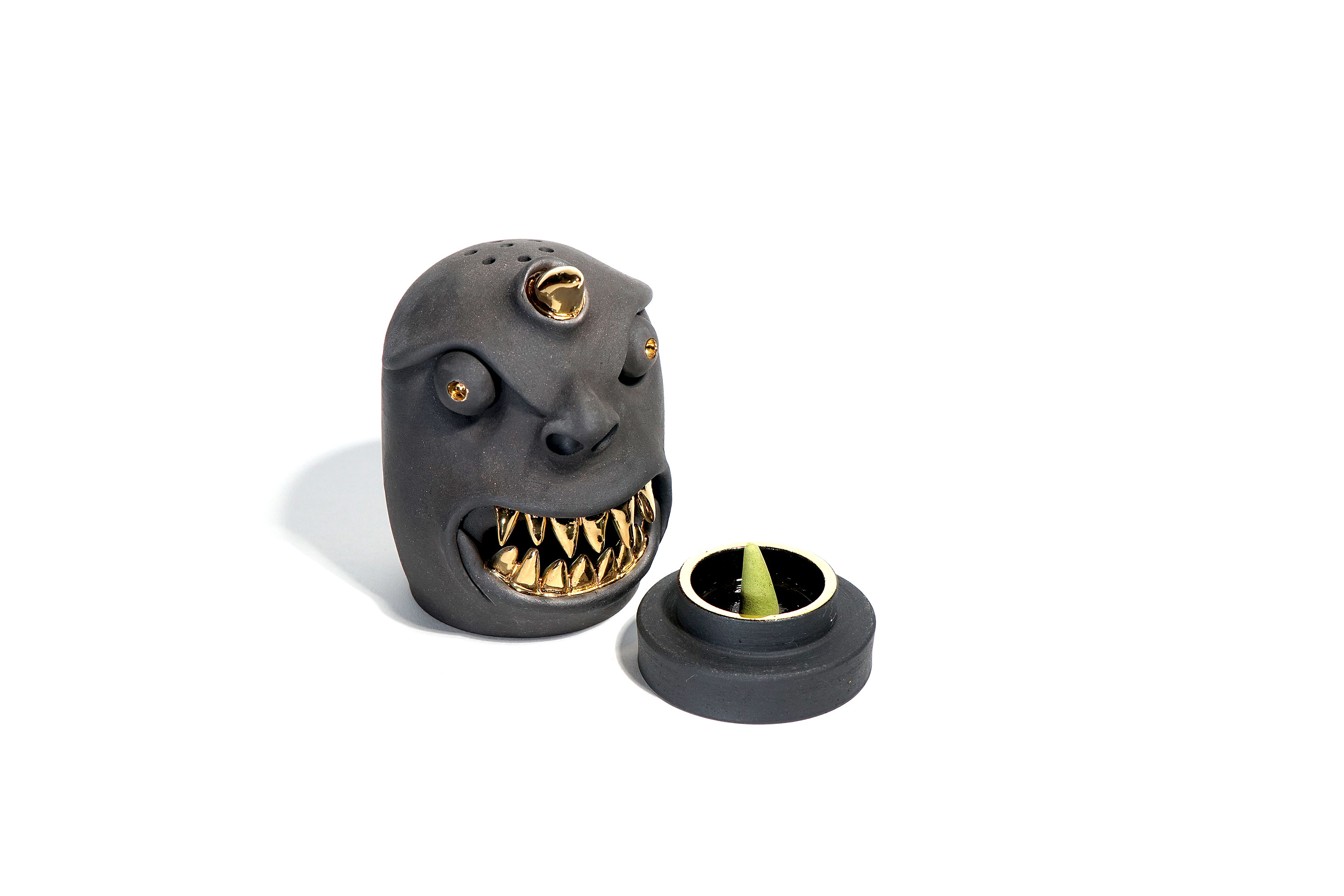 Made by sculpting and wheel throwing, the scent of incense burner spreads subtly through the hollow parts of the lid.