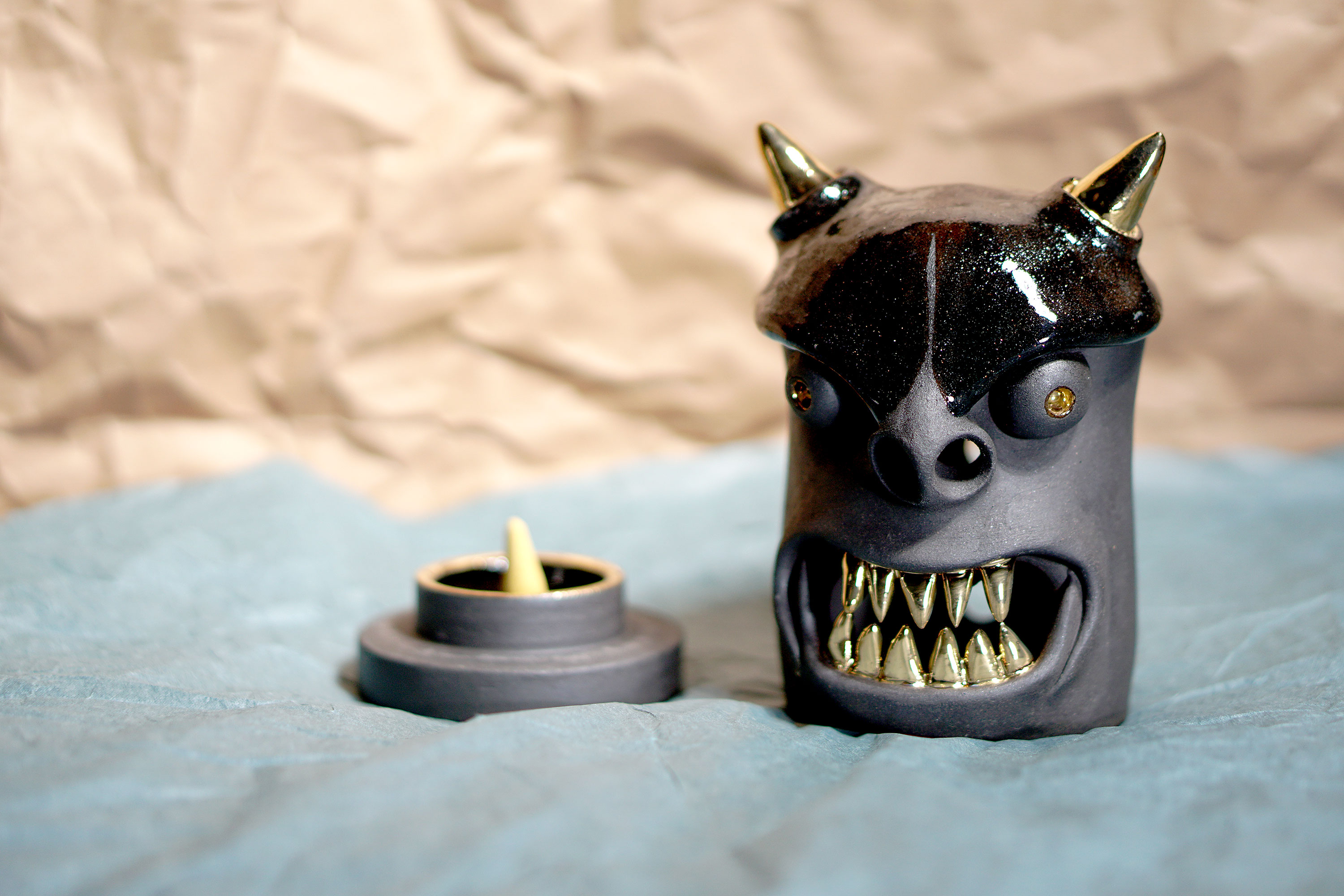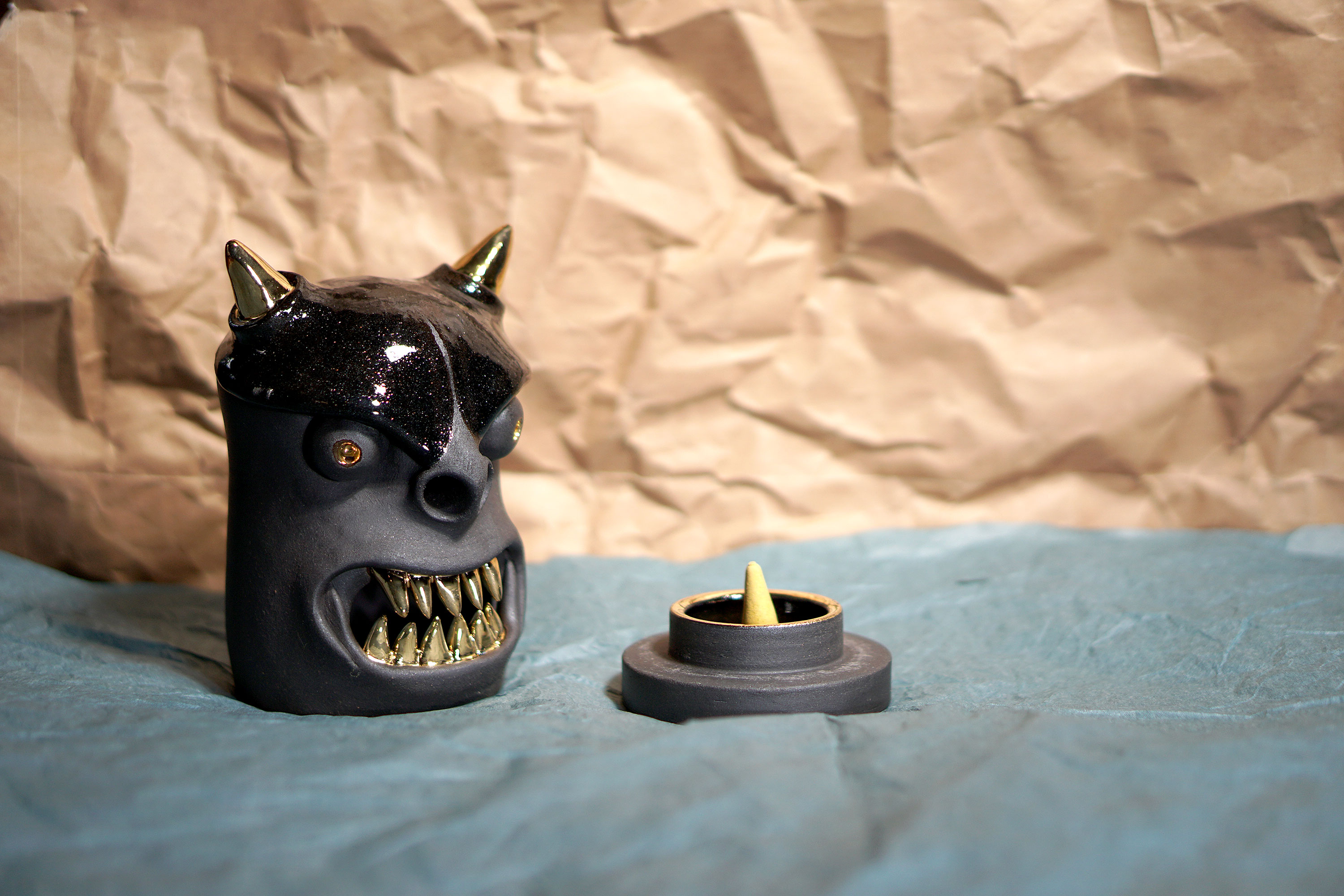 Made by sculpting and wheel throwing, the scent of incense burner spreads subtly through the hollow parts of the lid.