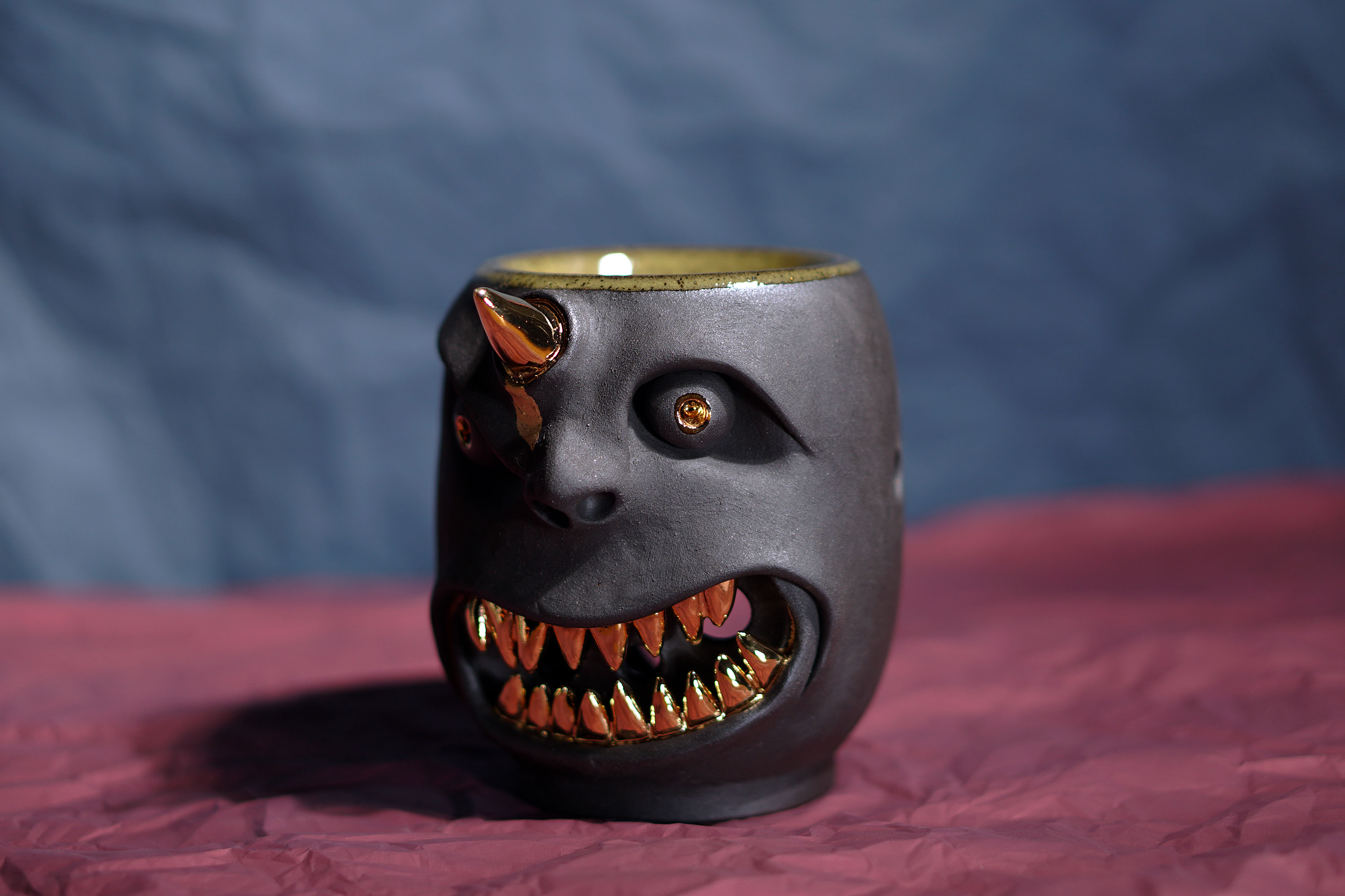 They make gold for good people, protect their homes, and help them succeed. Their figures exist in people's imaginations, and sometimes they are seen as men with magical powers, or they are portrayed as terrifying monsters. You can meet Korean goblin faces imagined by ceramic artist Hyung Jun Kim in our brand.