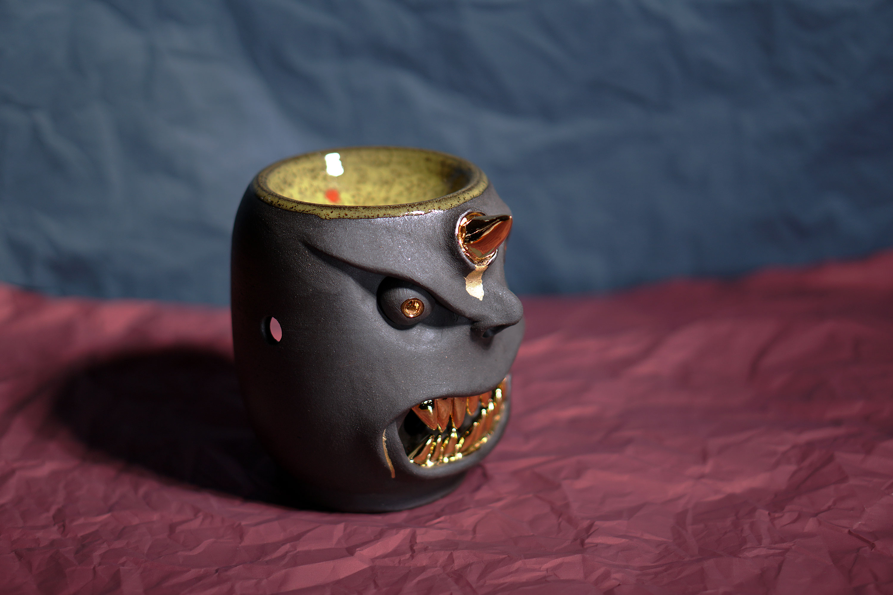 They make gold for good people, protect their homes, and help them succeed. Their figures exist in people's imaginations, and sometimes they are seen as men with magical powers, or they are portrayed as terrifying monsters. You can meet Korean goblin faces imagined by ceramic artist Hyung Jun Kim in our brand.
