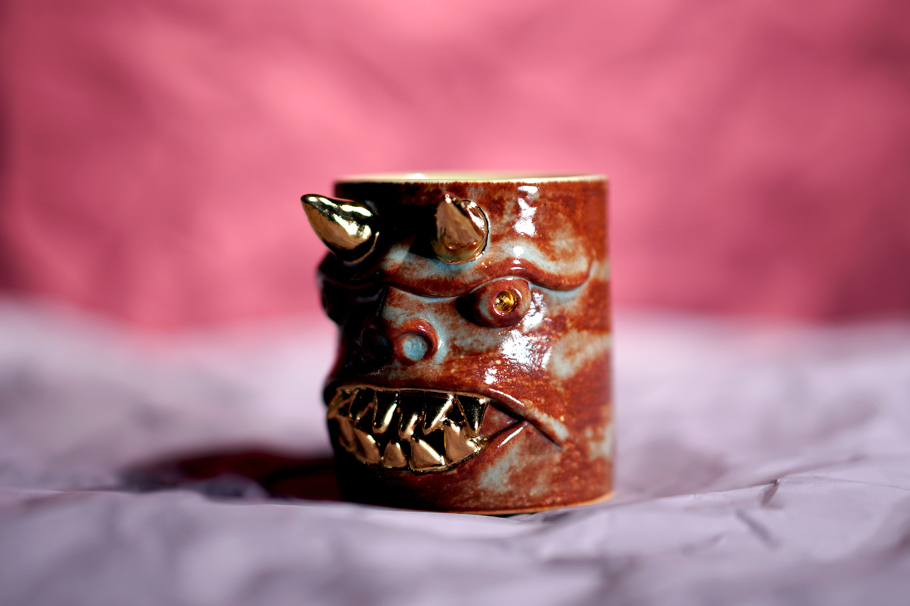 They make gold for good people, protect their homes, and help them succeed. Their figures exist in people's imaginations, and sometimes they are seen as men with magical powers, or they are portrayed as terrifying monsters. You can meet Korean goblin faces imagined by ceramic artist Hyung Jun Kim in our brand.