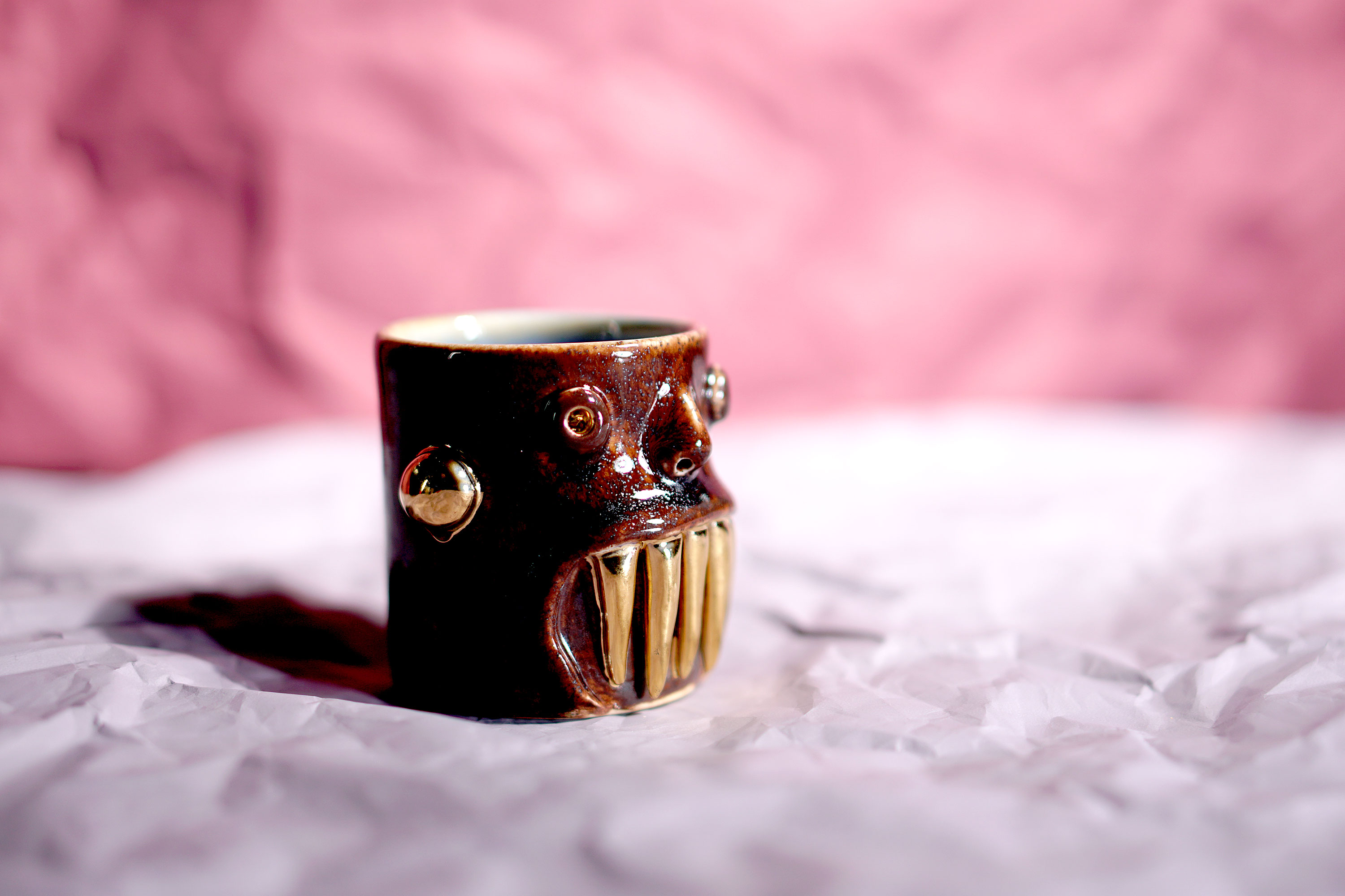 They make gold for good people, protect their homes, and help them succeed. Their figures exist in people's imaginations, and sometimes they are seen as men with magical powers, or they are portrayed as terrifying monsters. You can meet Korean goblin faces imagined by ceramic artist Hyung Jun Kim in our brand.