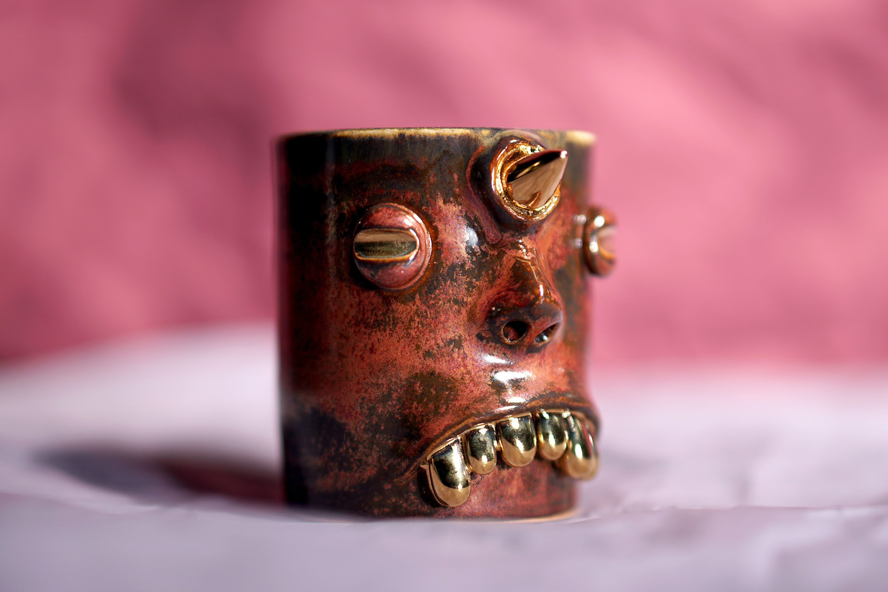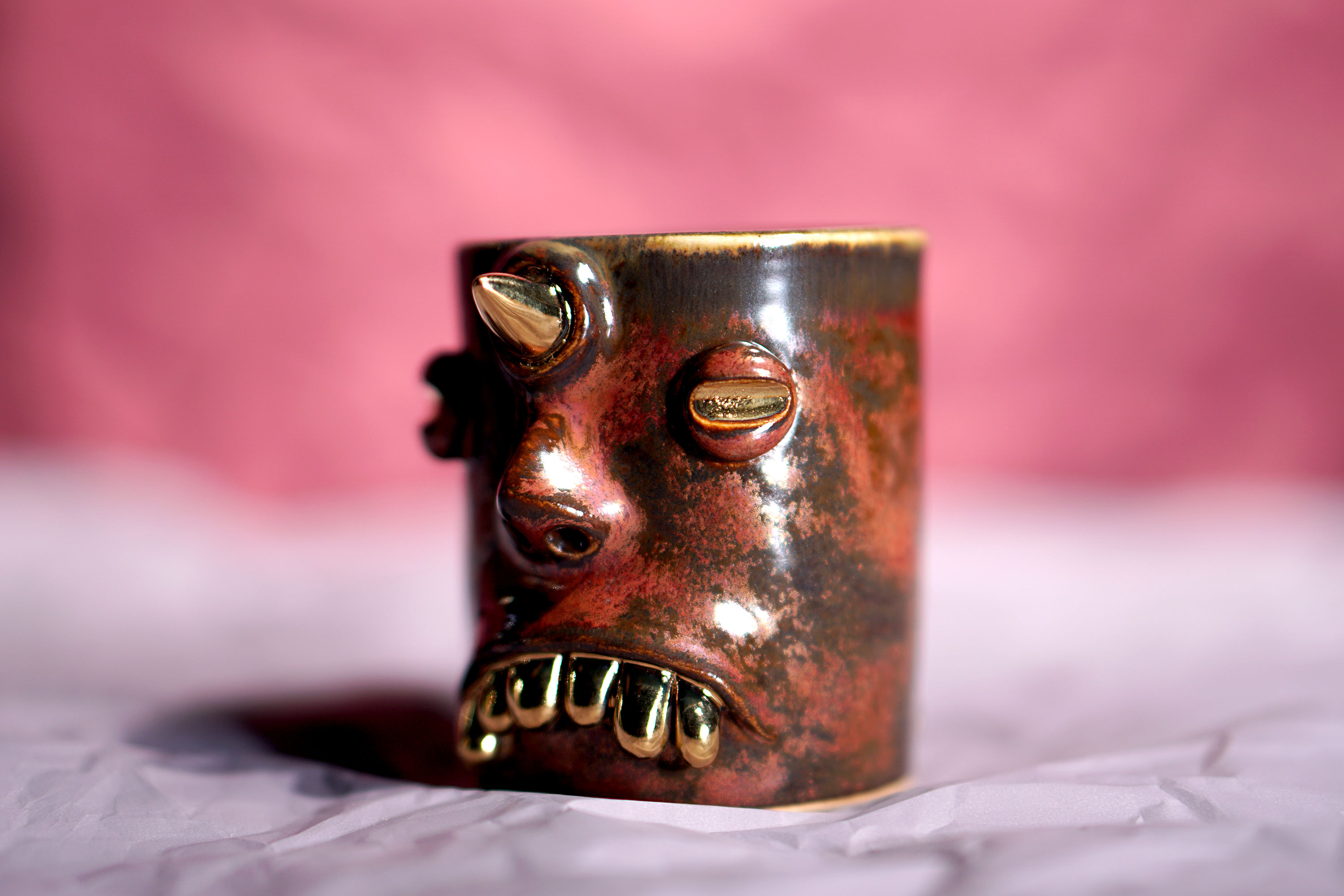 They make gold for good people, protect their homes, and help them succeed. Their figures exist in people's imaginations, and sometimes they are seen as men with magical powers, or they are portrayed as terrifying monsters. You can meet Korean goblin faces imagined by ceramic artist Hyung Jun Kim in our brand.