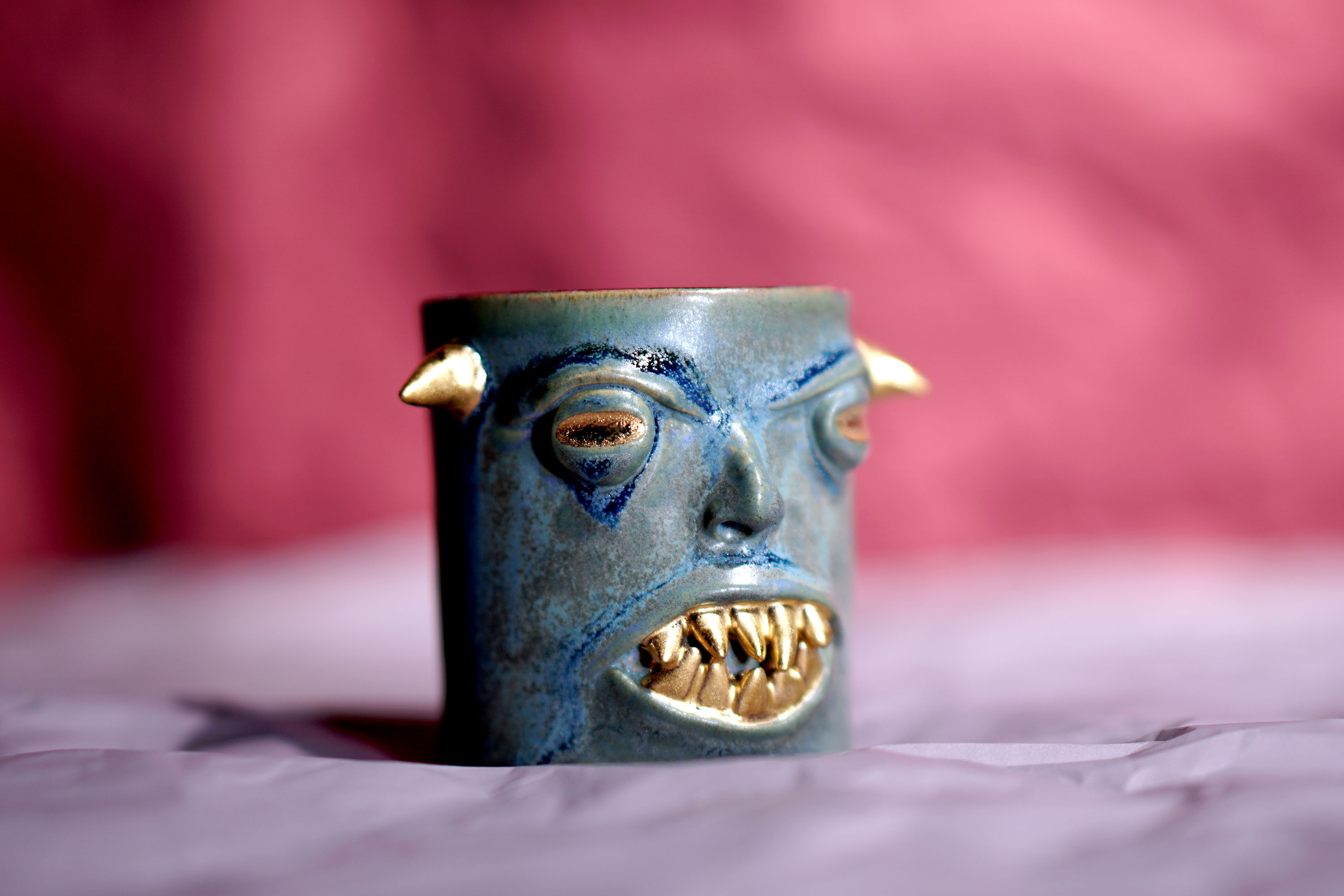 They make gold for good people, protect their homes, and help them succeed. Their figures exist in people's imaginations, and sometimes they are seen as men with magical powers, or they are portrayed as terrifying monsters. You can meet Korean goblin faces imagined by ceramic artist Hyung Jun Kim in our brand.