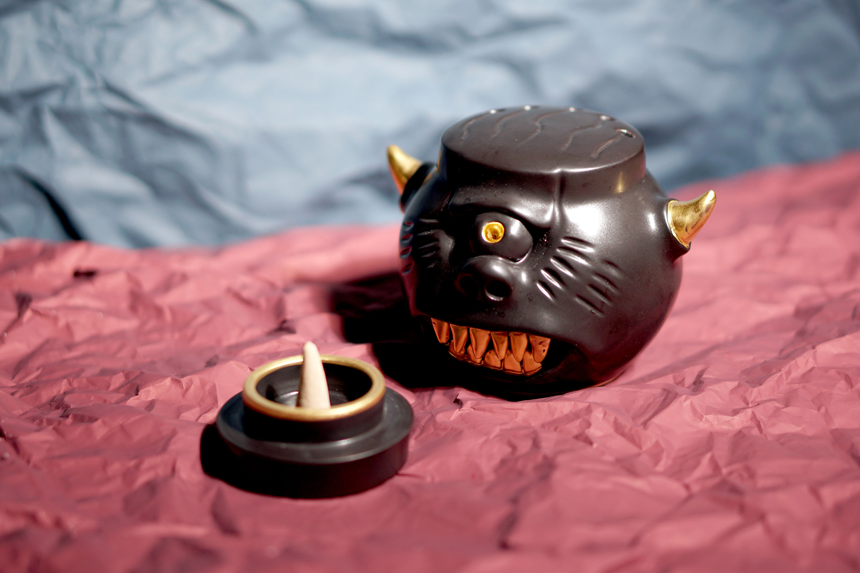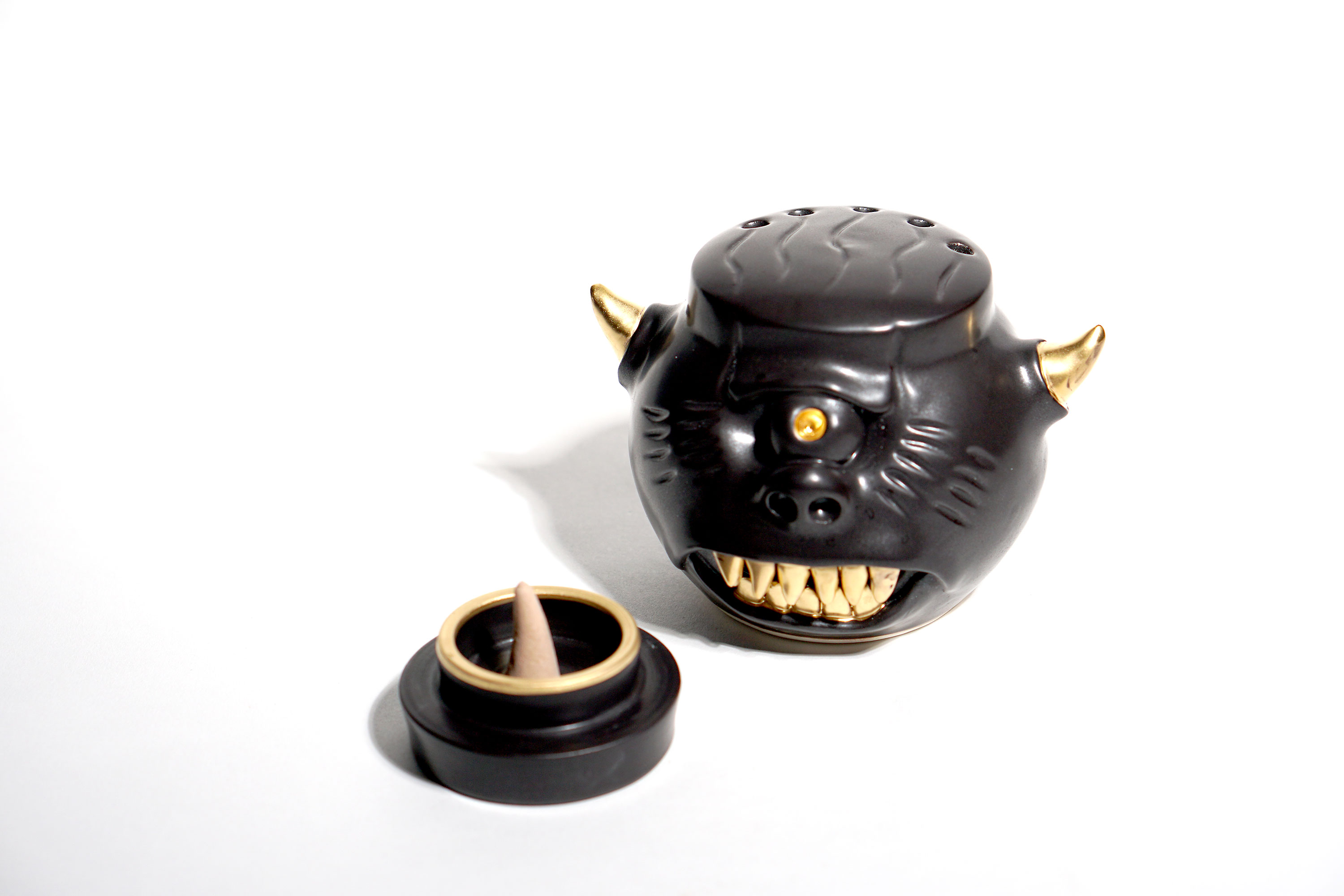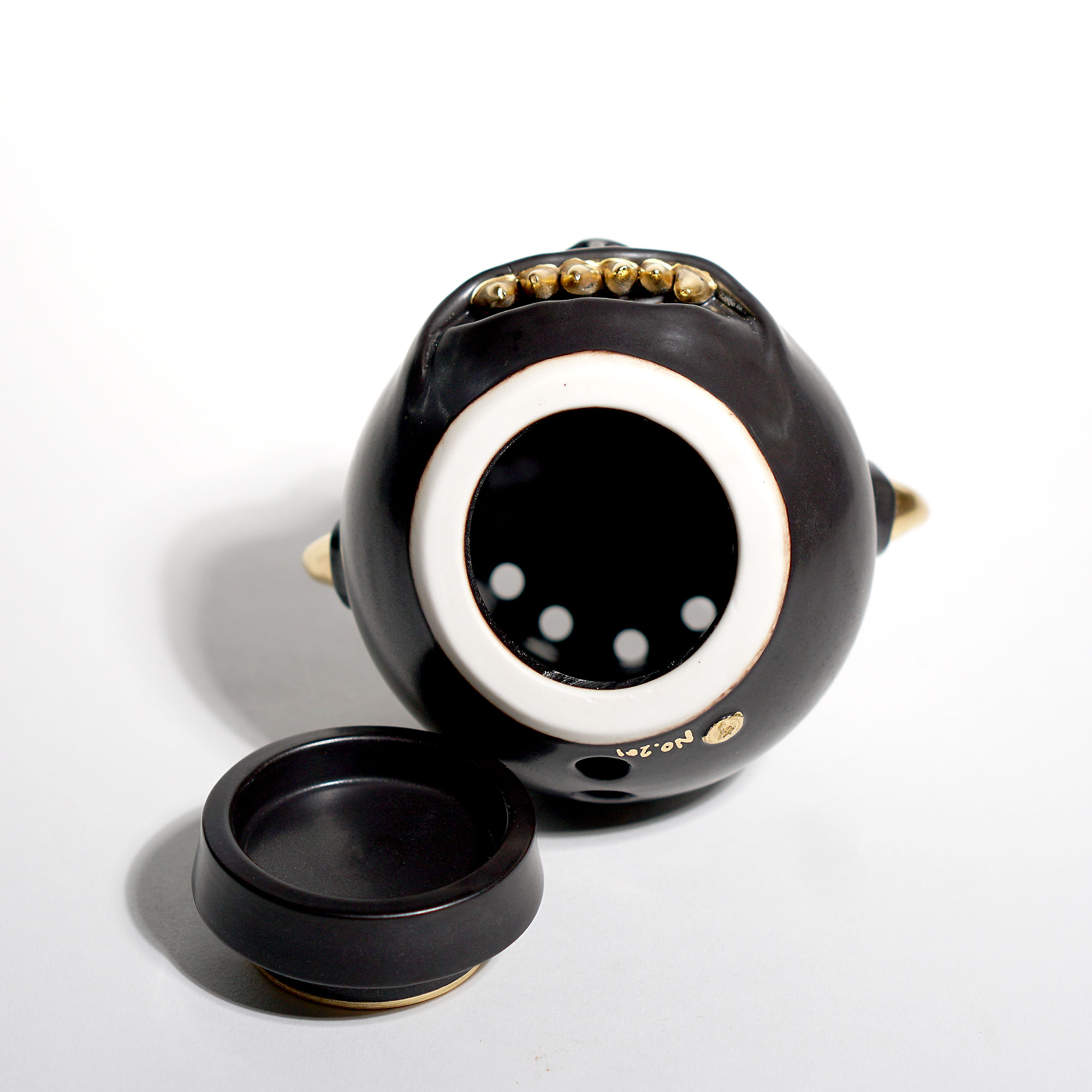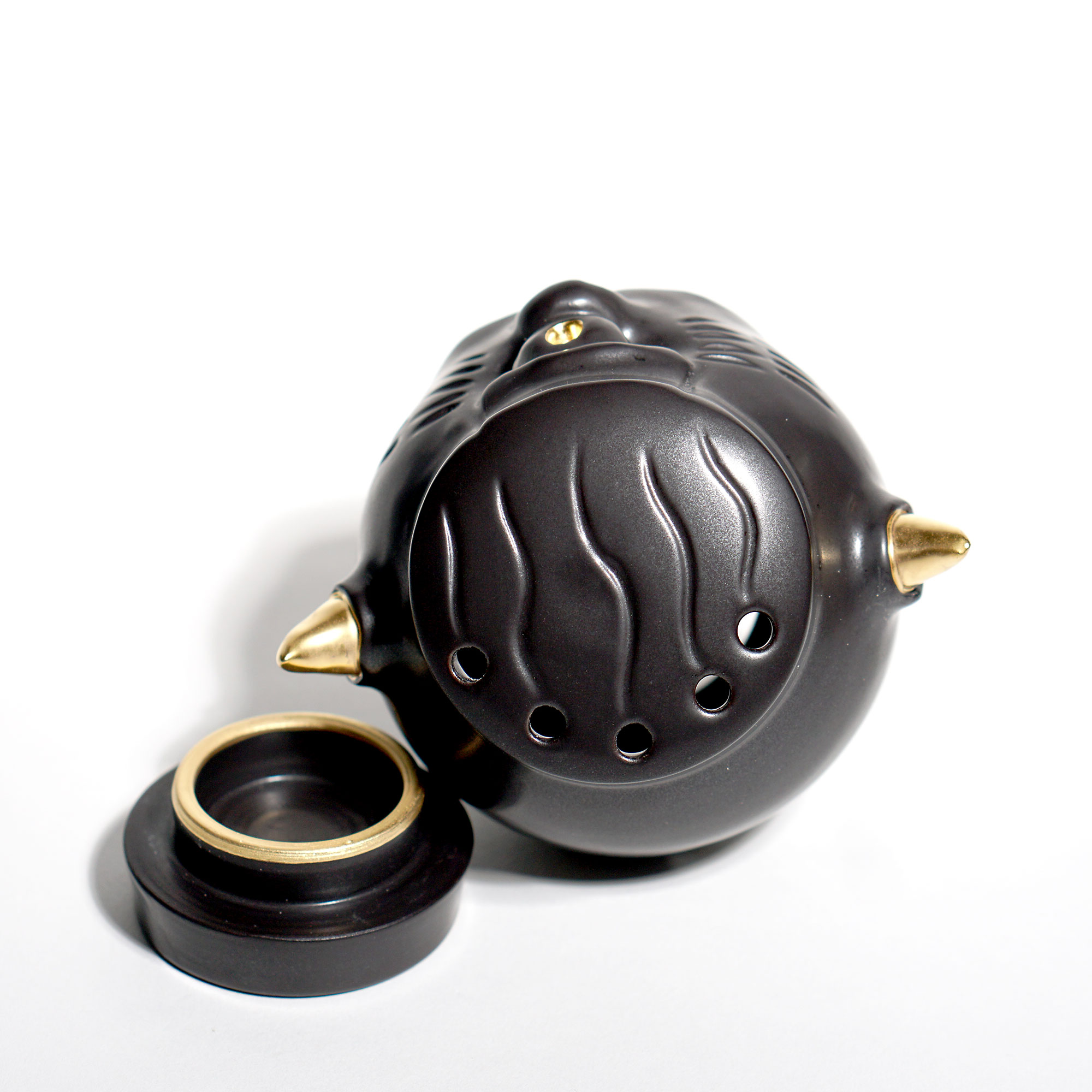 Made by sculpting and wheel throwing, the scent of incense burner spreads subtly through the hollow parts of the lid.