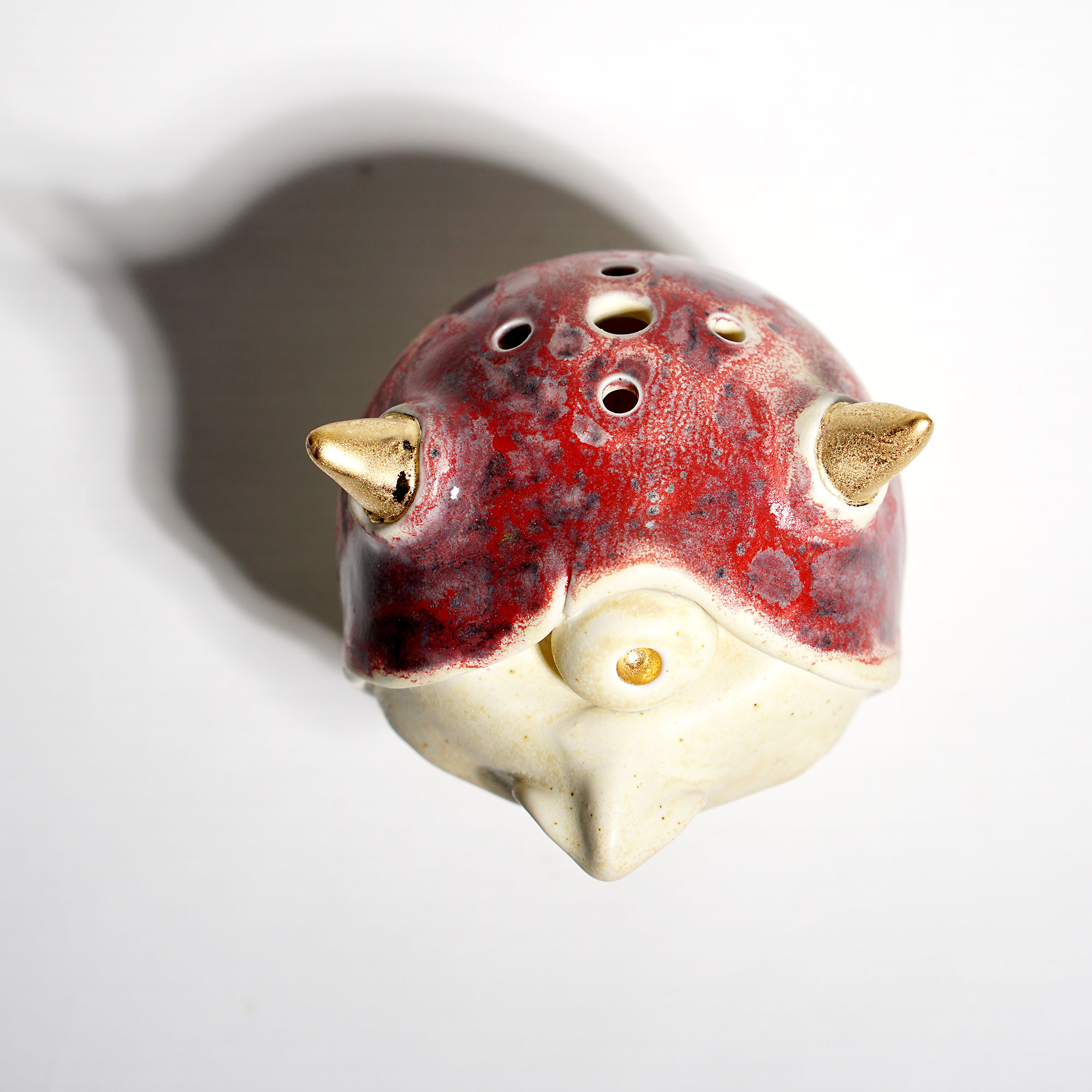 Made by sculpting and wheel throwing, the scent of incense burner spreads subtly through the hollow parts of the lid.