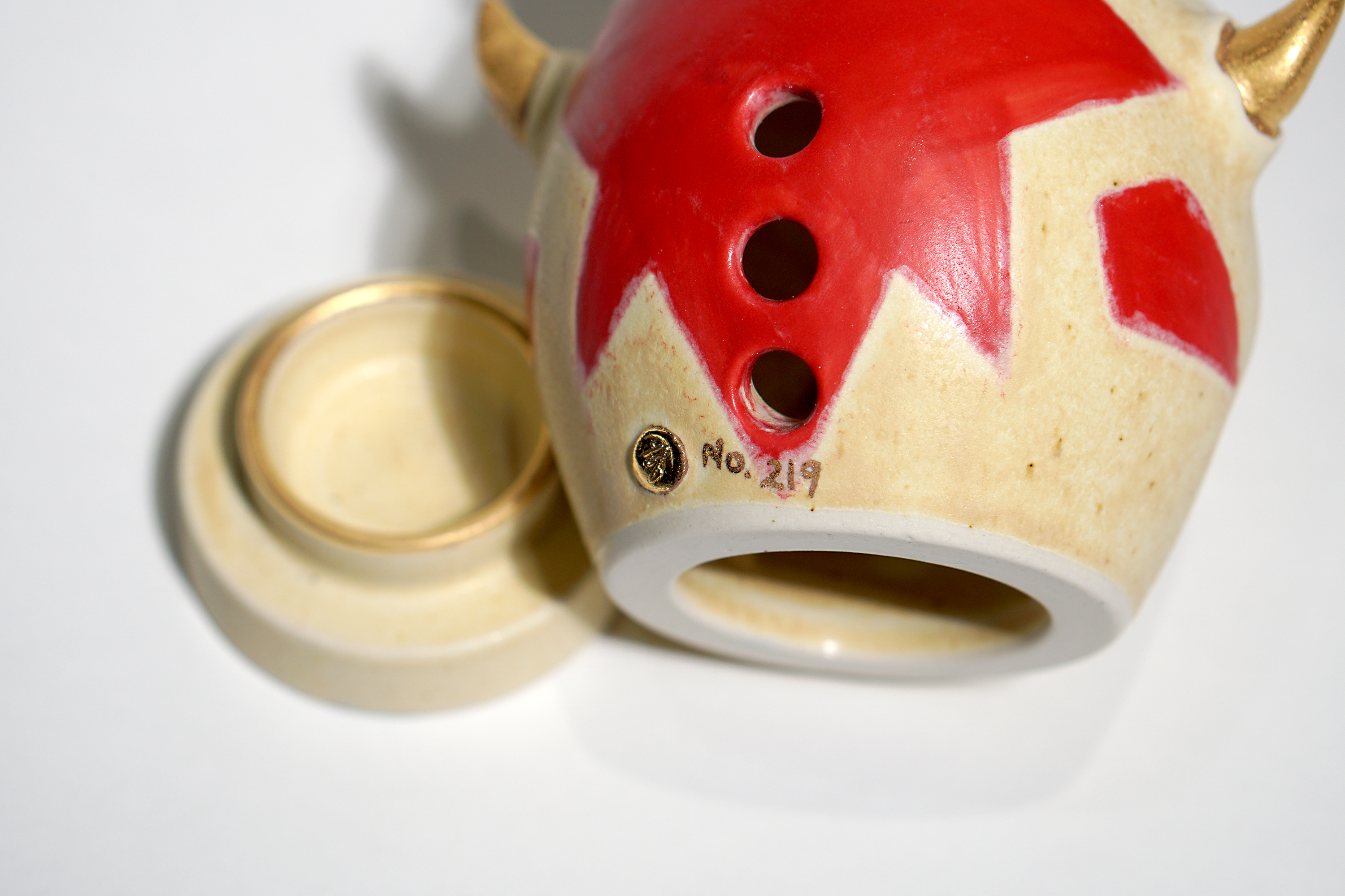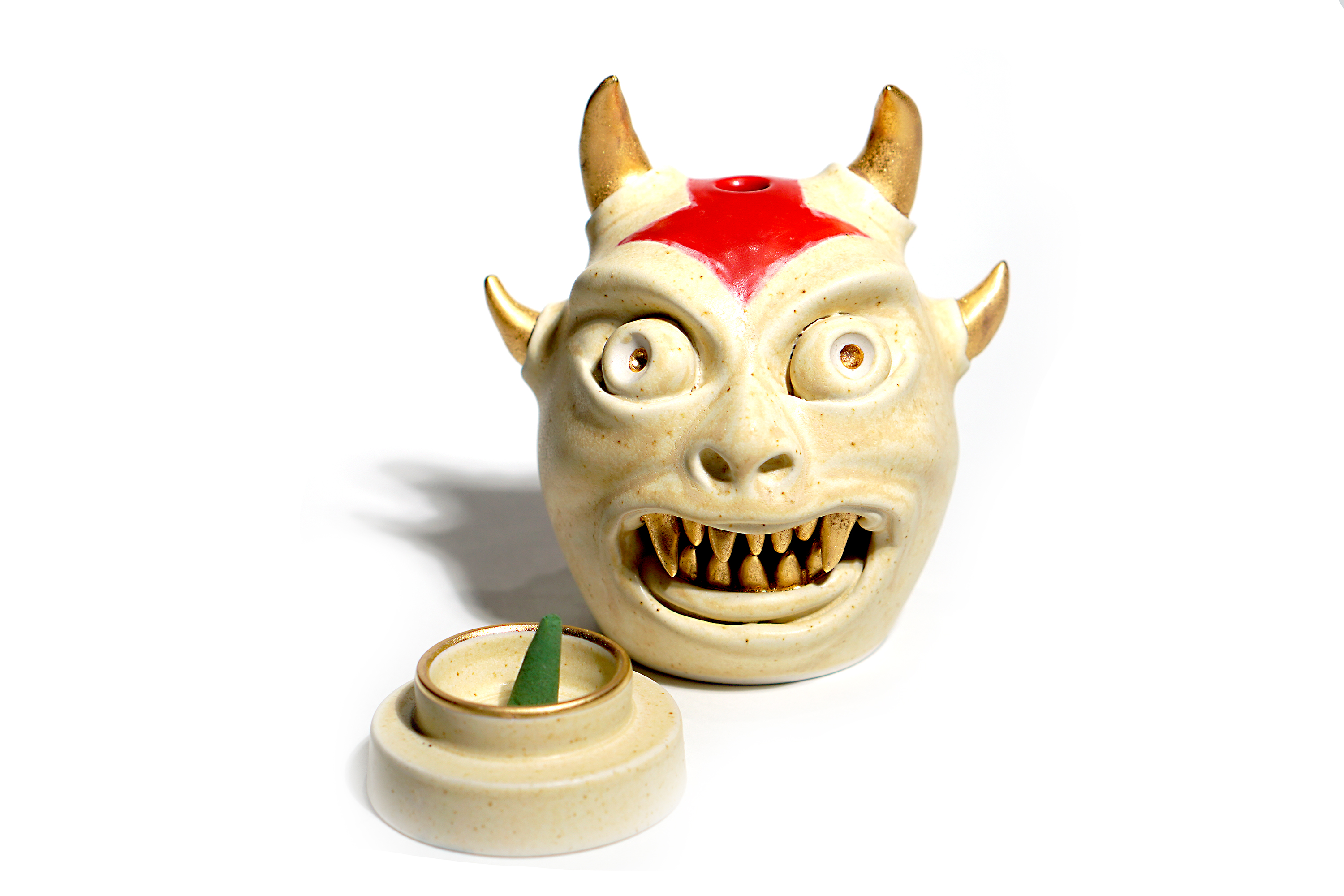 Made by sculpting and wheel throwing, the scent of incense burner spreads subtly through the hollow parts of the lid.