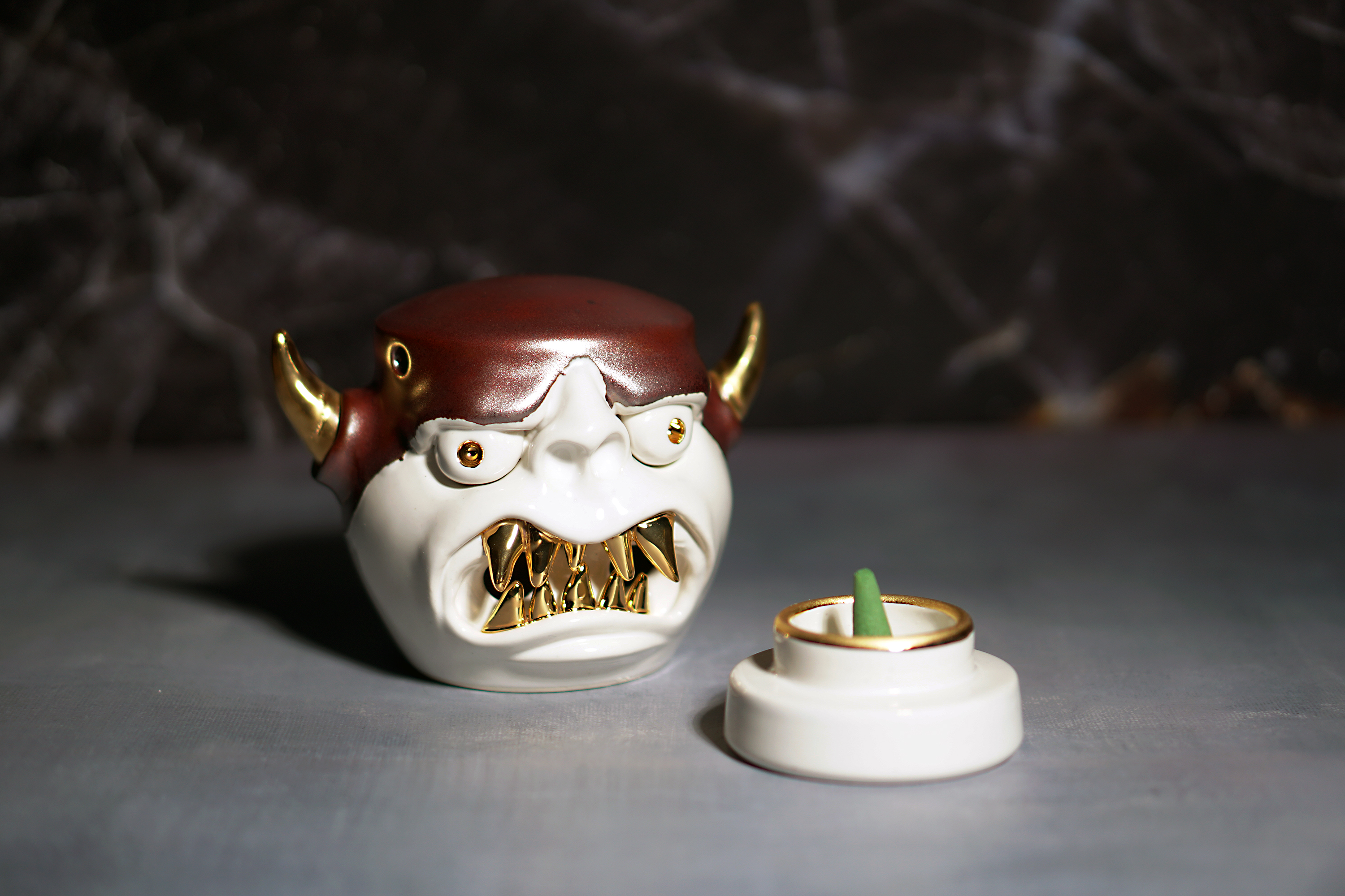 Made by sculpting and wheel throwing, the scent of incense burner spreads subtly through the hollow parts of the lid.