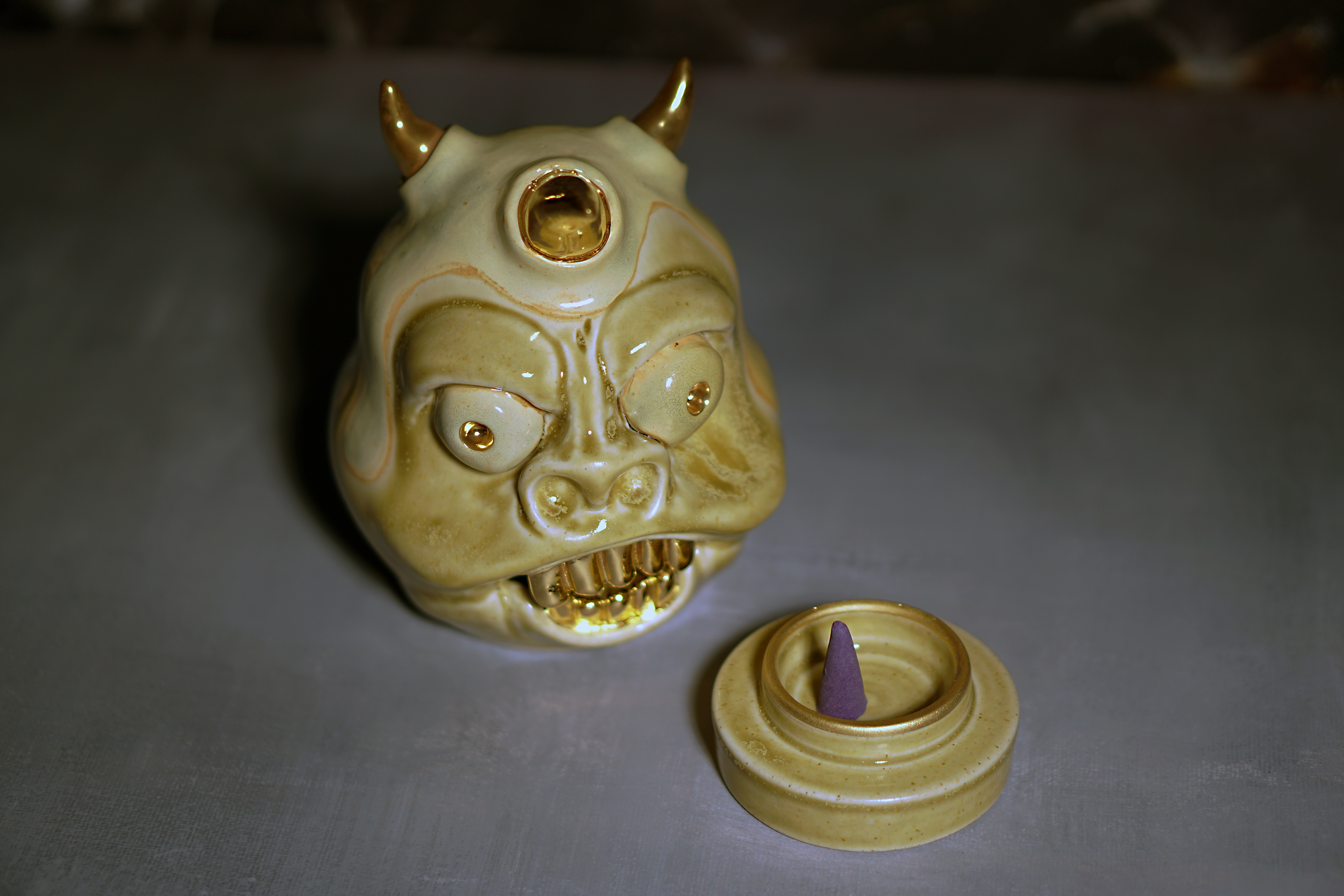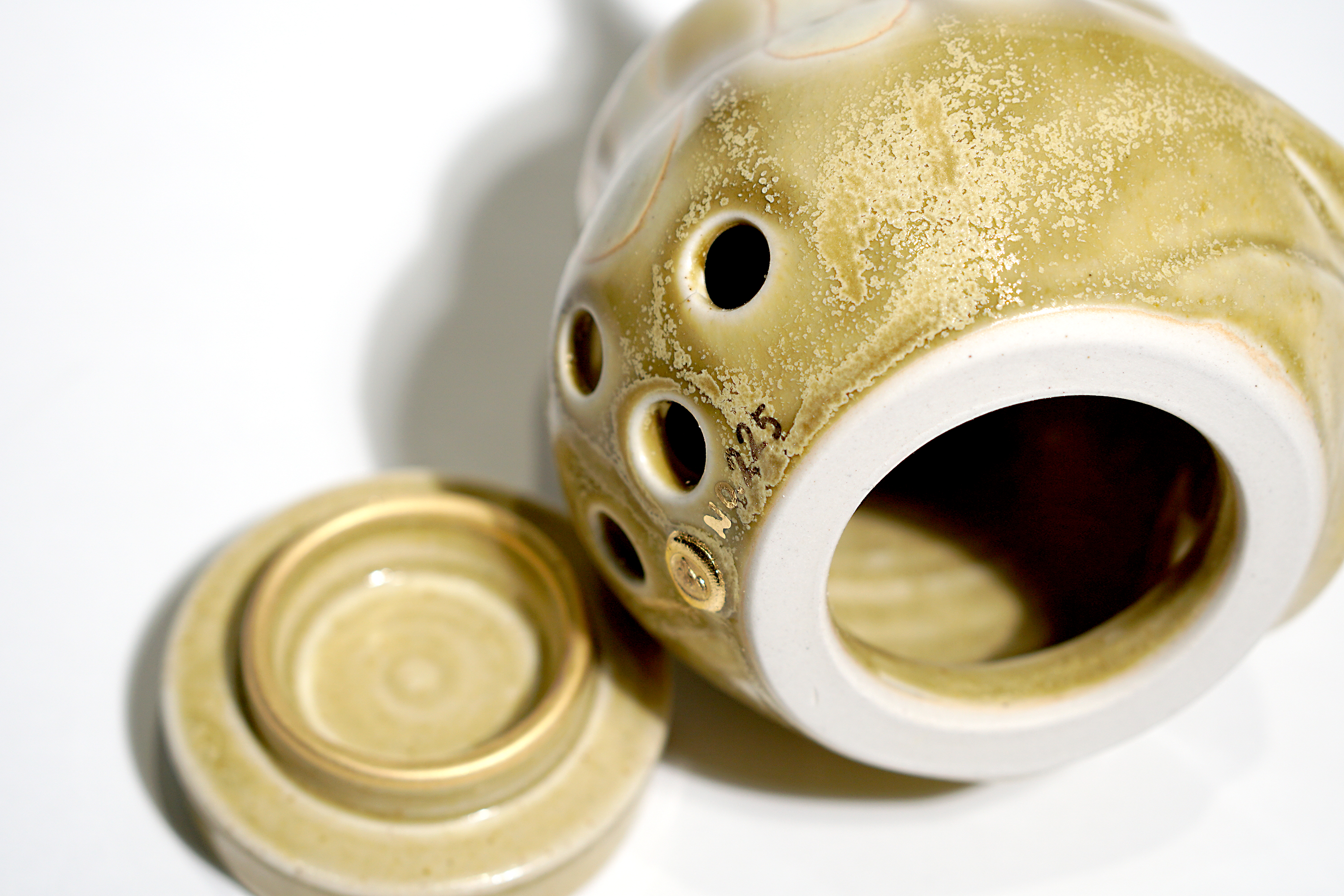 Made by sculpting and wheel throwing, the scent of incense burner spreads subtly through the hollow parts of the lid.
