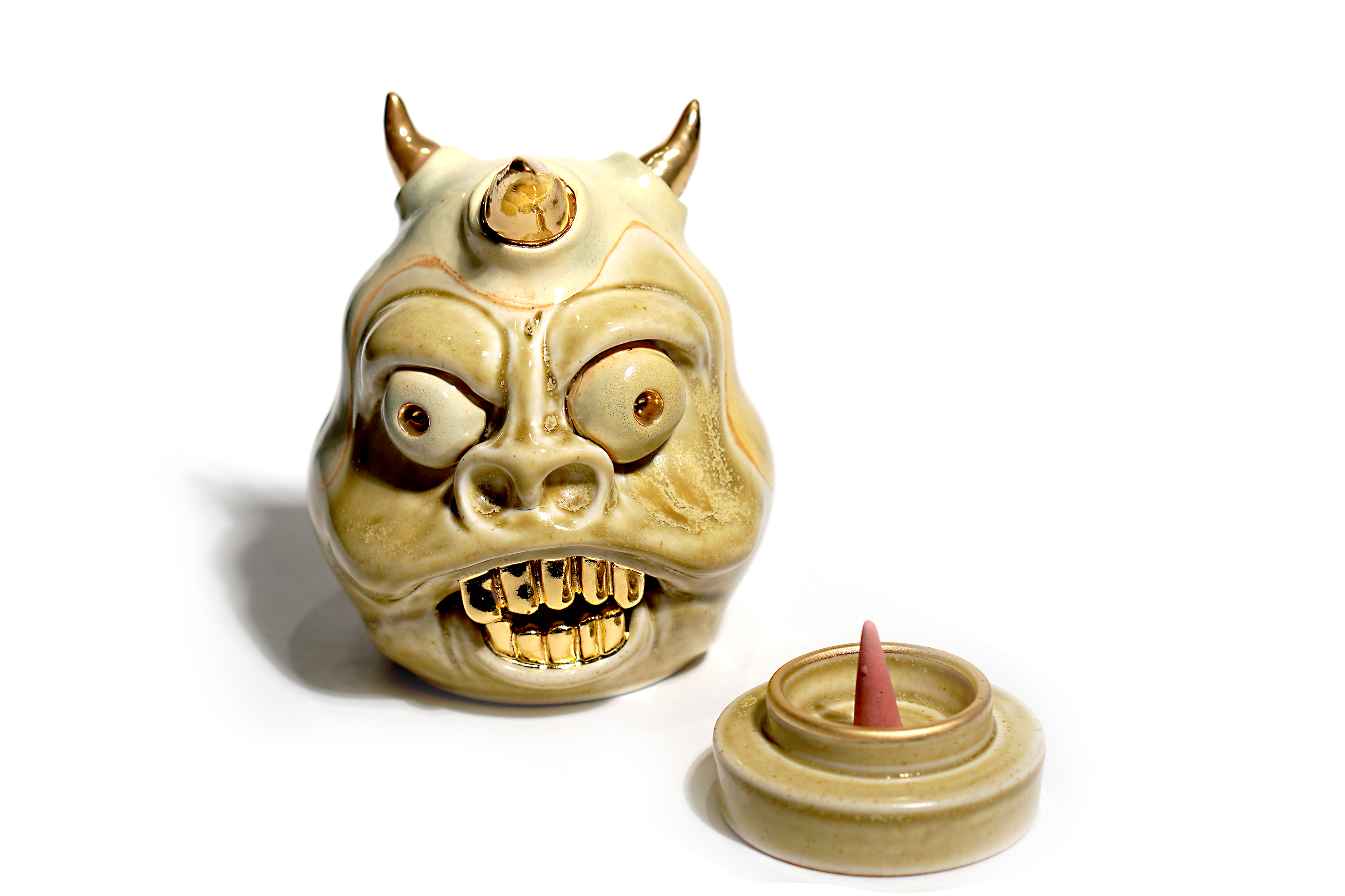 Made by sculpting and wheel throwing, the scent of incense burner spreads subtly through the hollow parts of the lid.