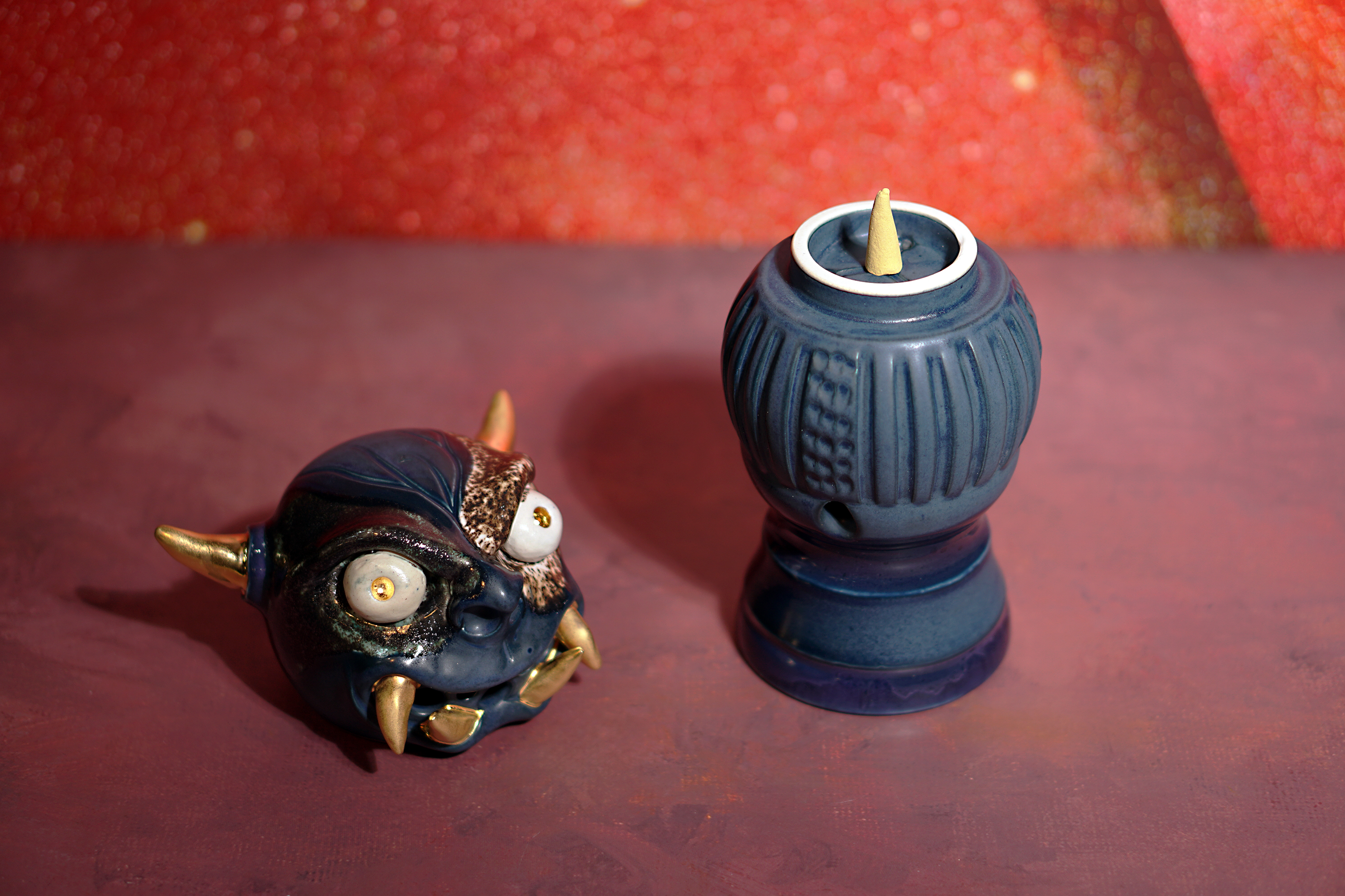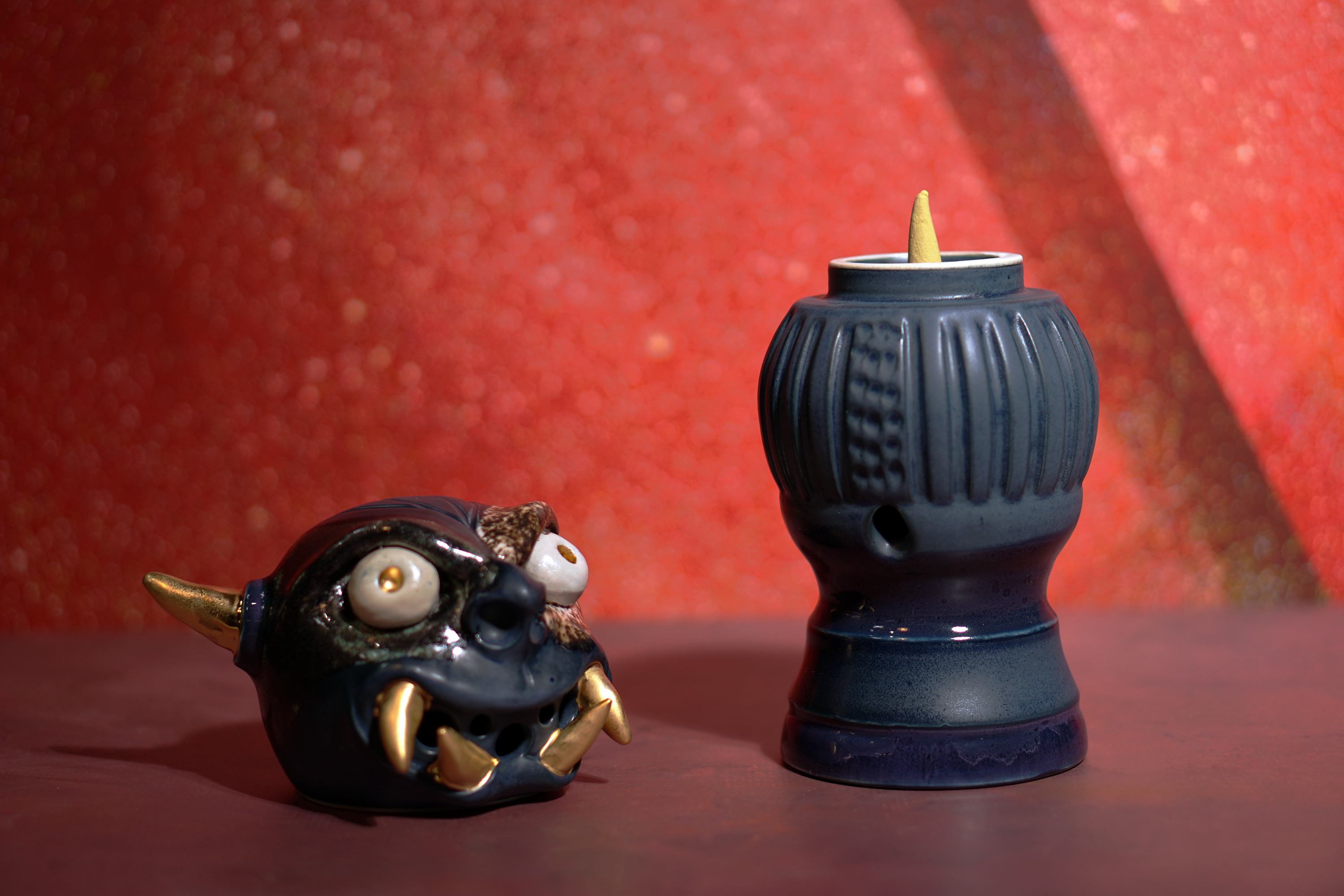 Made by sculpting and wheel throwing, the scent of incense burner spreads subtly through the hollow parts of the lid.