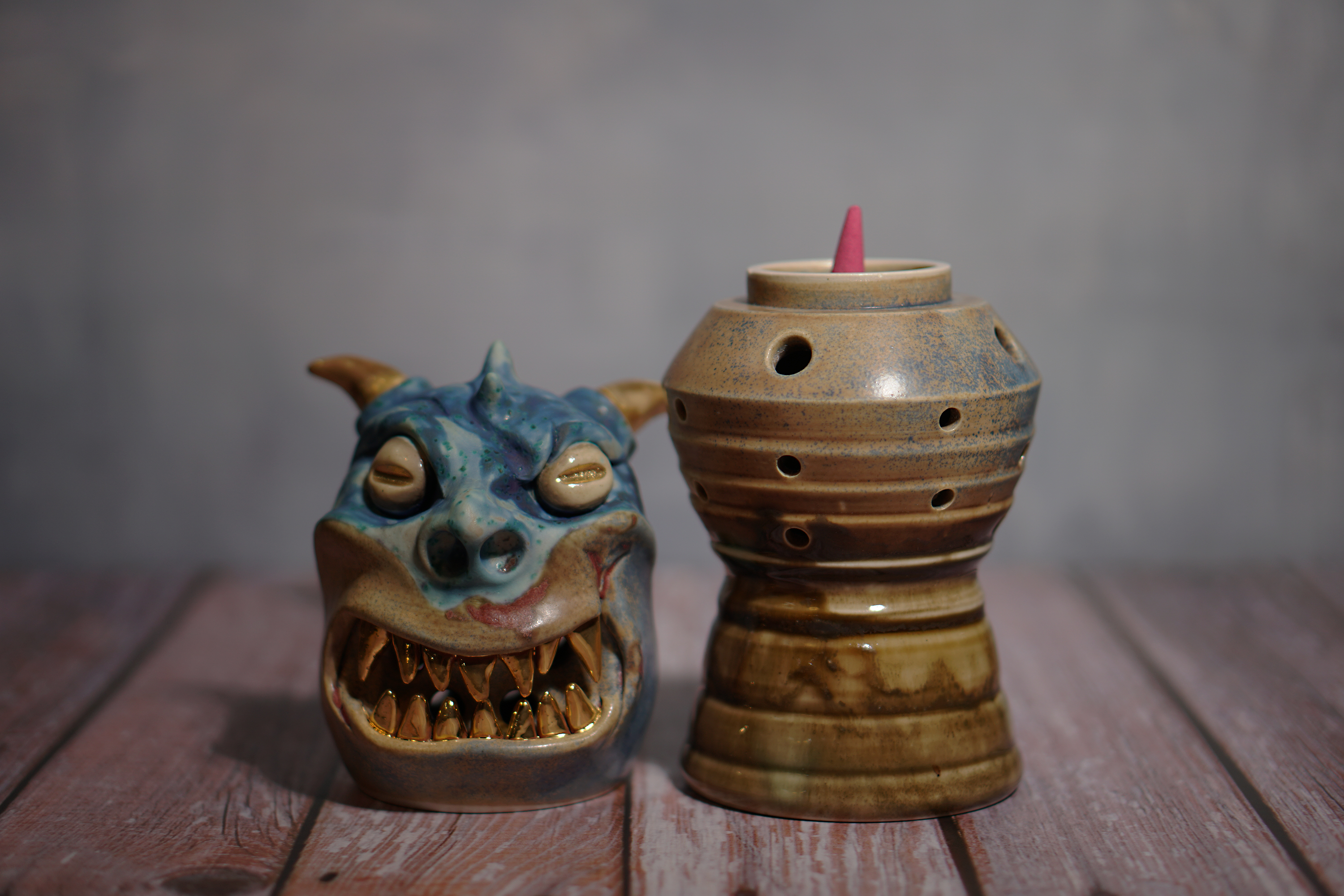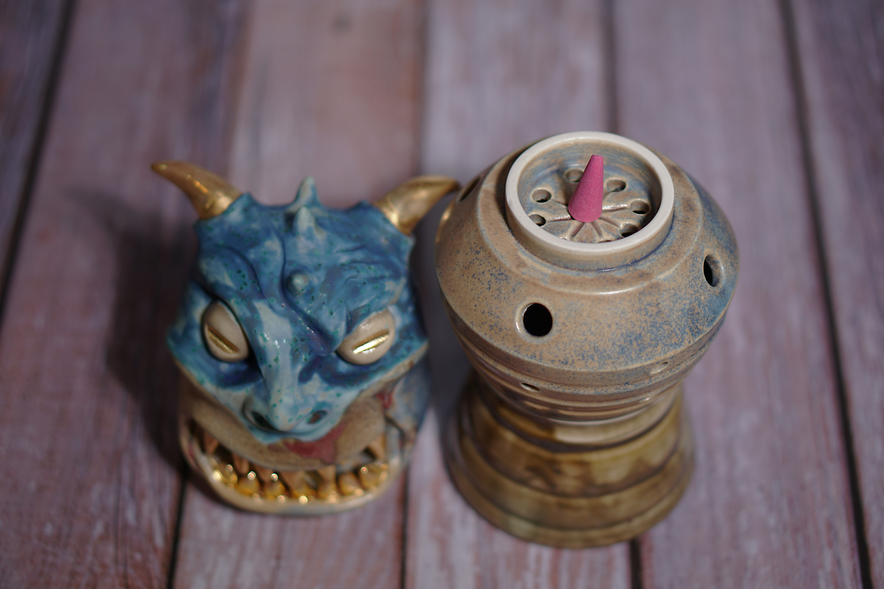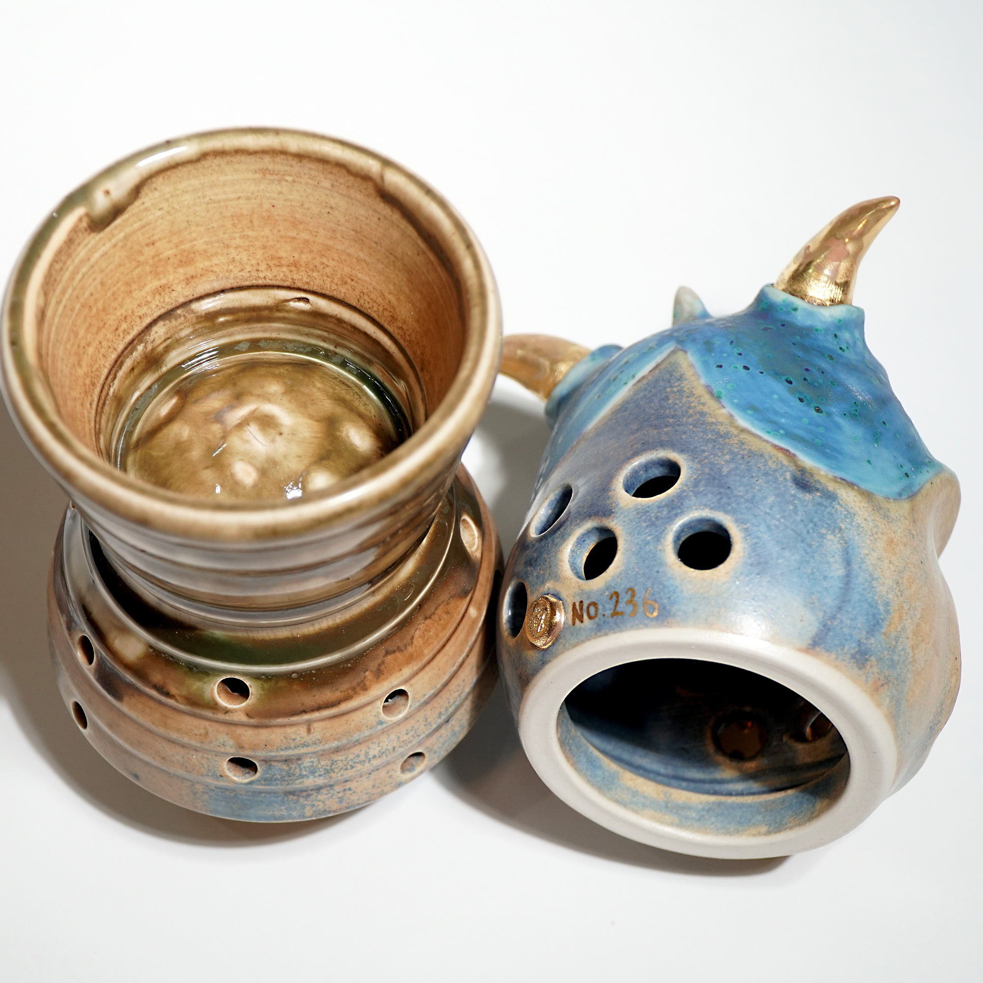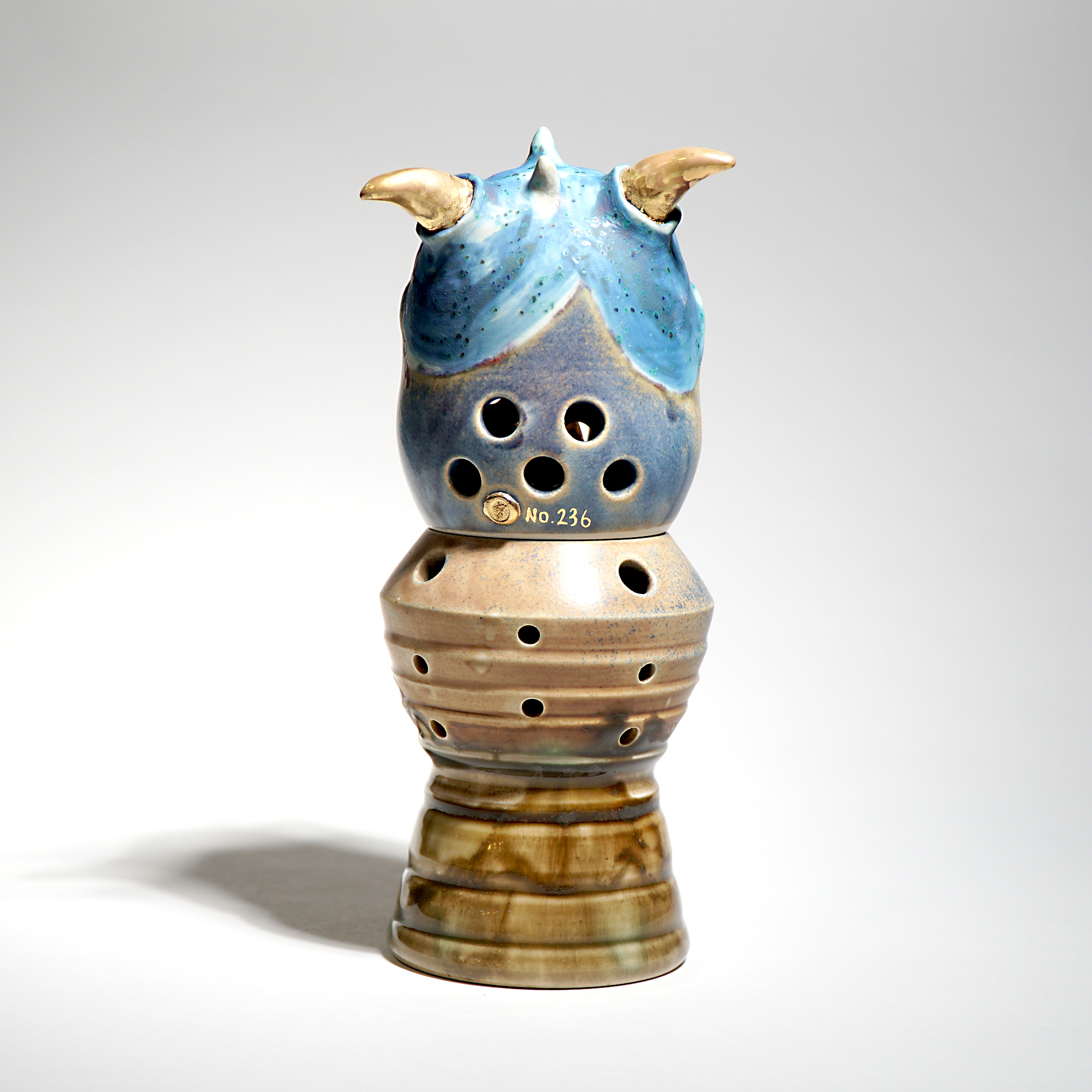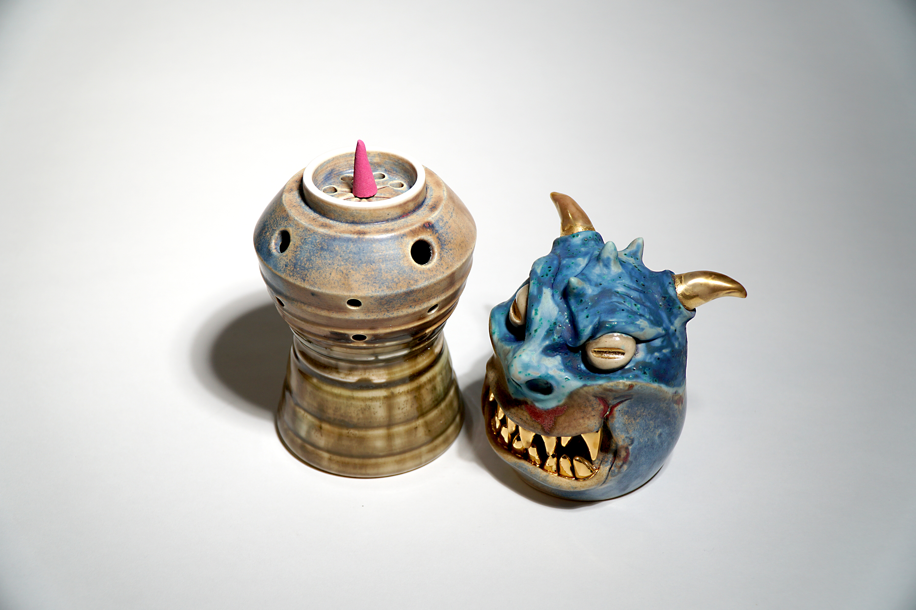 Made by sculpting and wheel throwing, the scent of incense burner spreads subtly through the hollow parts of the lid.
