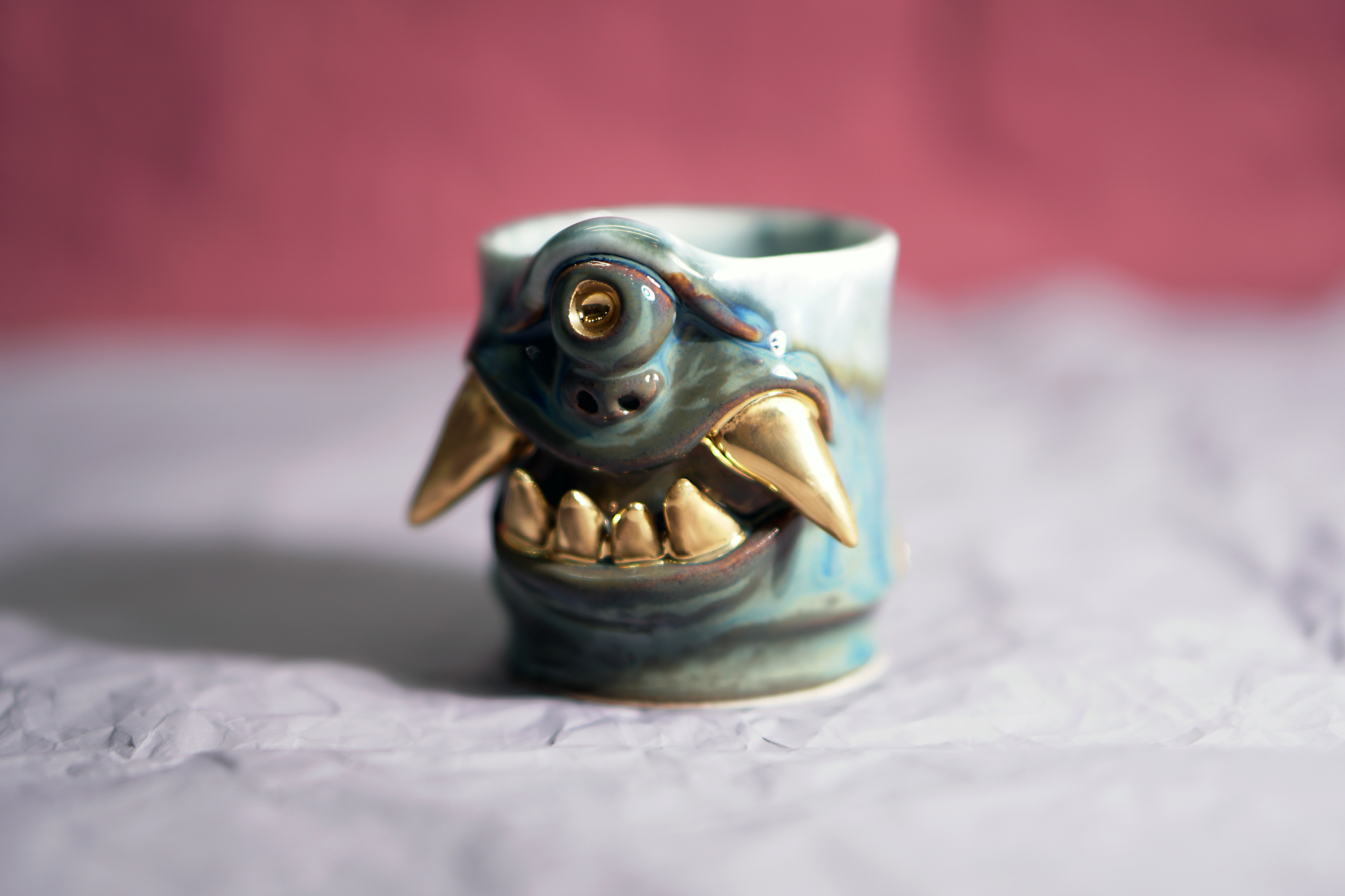 They make gold for good people, protect their homes, and help them succeed. Their figures exist in people's imaginations, and sometimes they are seen as men with magical powers, or they are portrayed as terrifying monsters. You can meet Korean goblin faces imagined by ceramic artist Hyung Jun Kim in our brand.