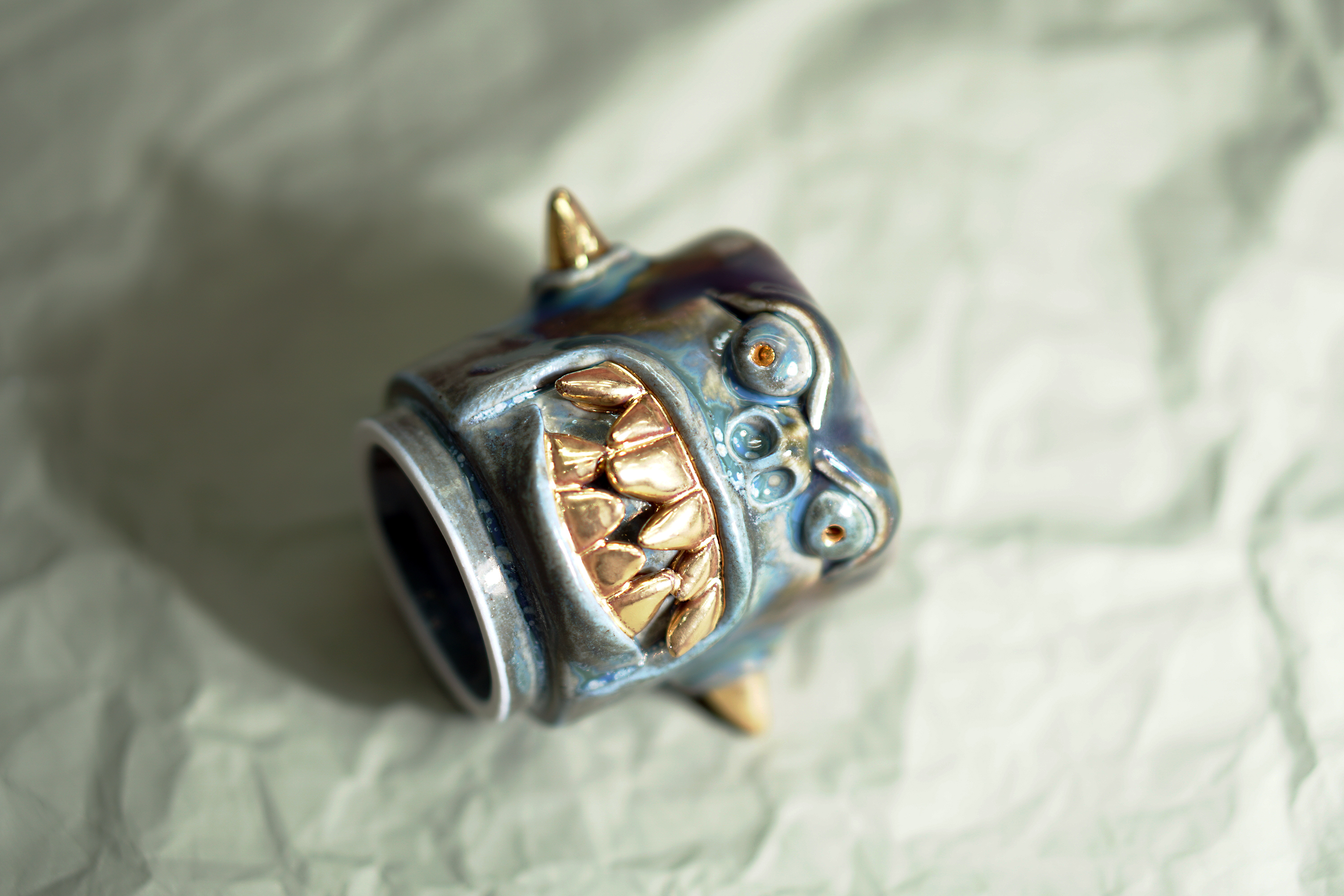 They make gold for good people, protect their homes, and help them succeed. Their figures exist in people's imaginations, and sometimes they are seen as men with magical powers, or they are portrayed as terrifying monsters. You can meet Korean goblin faces imagined by ceramic artist Hyung Jun Kim in our brand.
