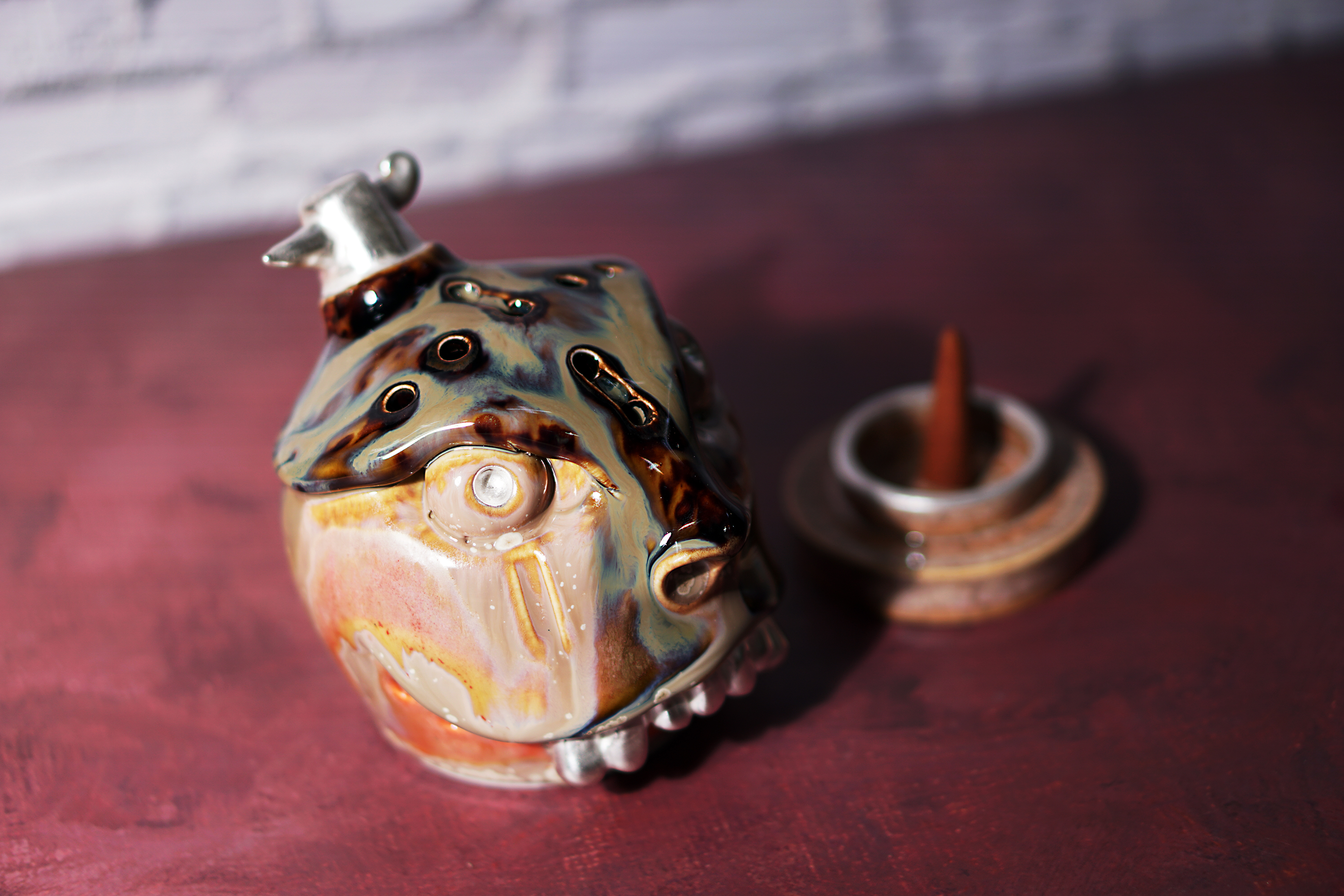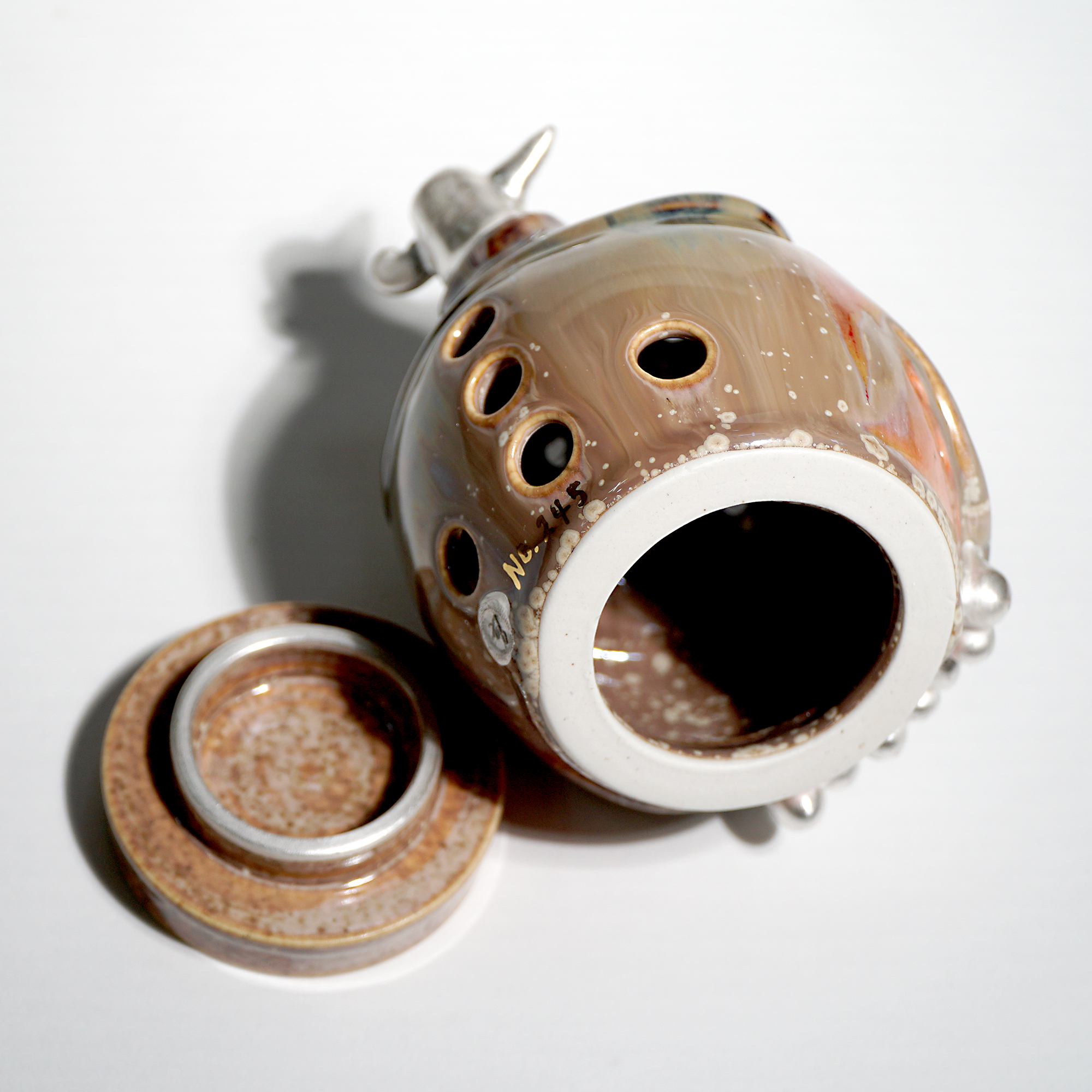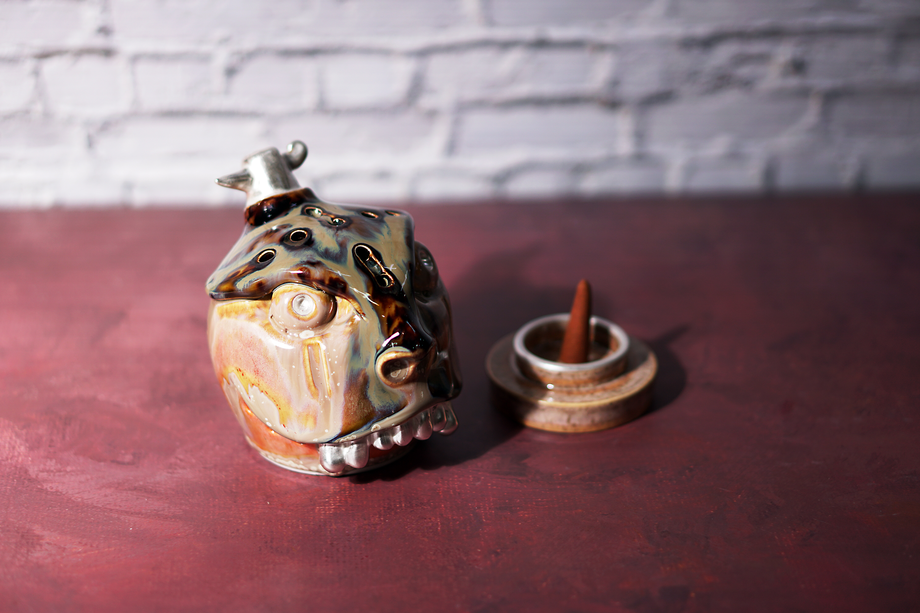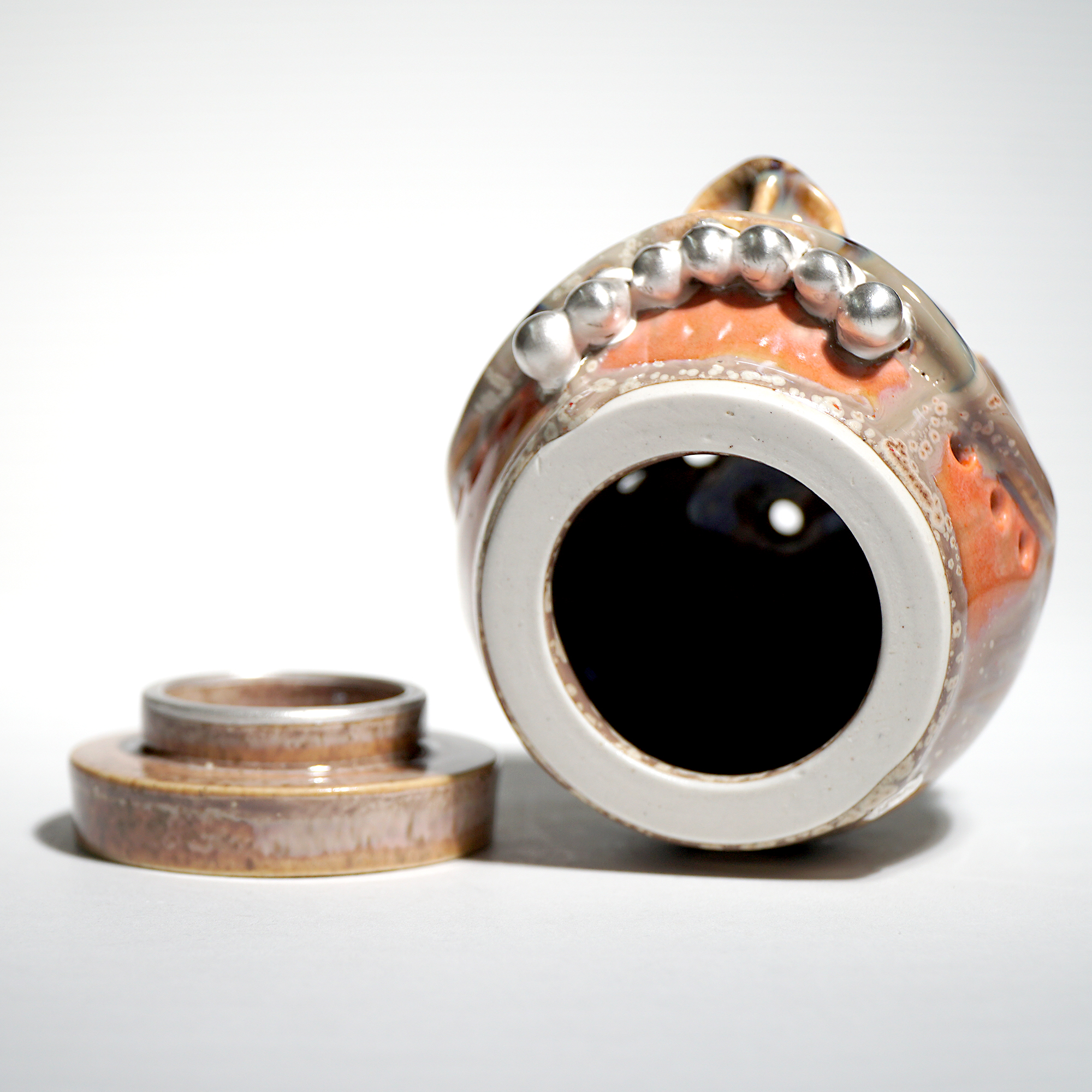 Made by sculpting and wheel throwing, the scent of incense burner spreads subtly through the hollow parts of the lid.