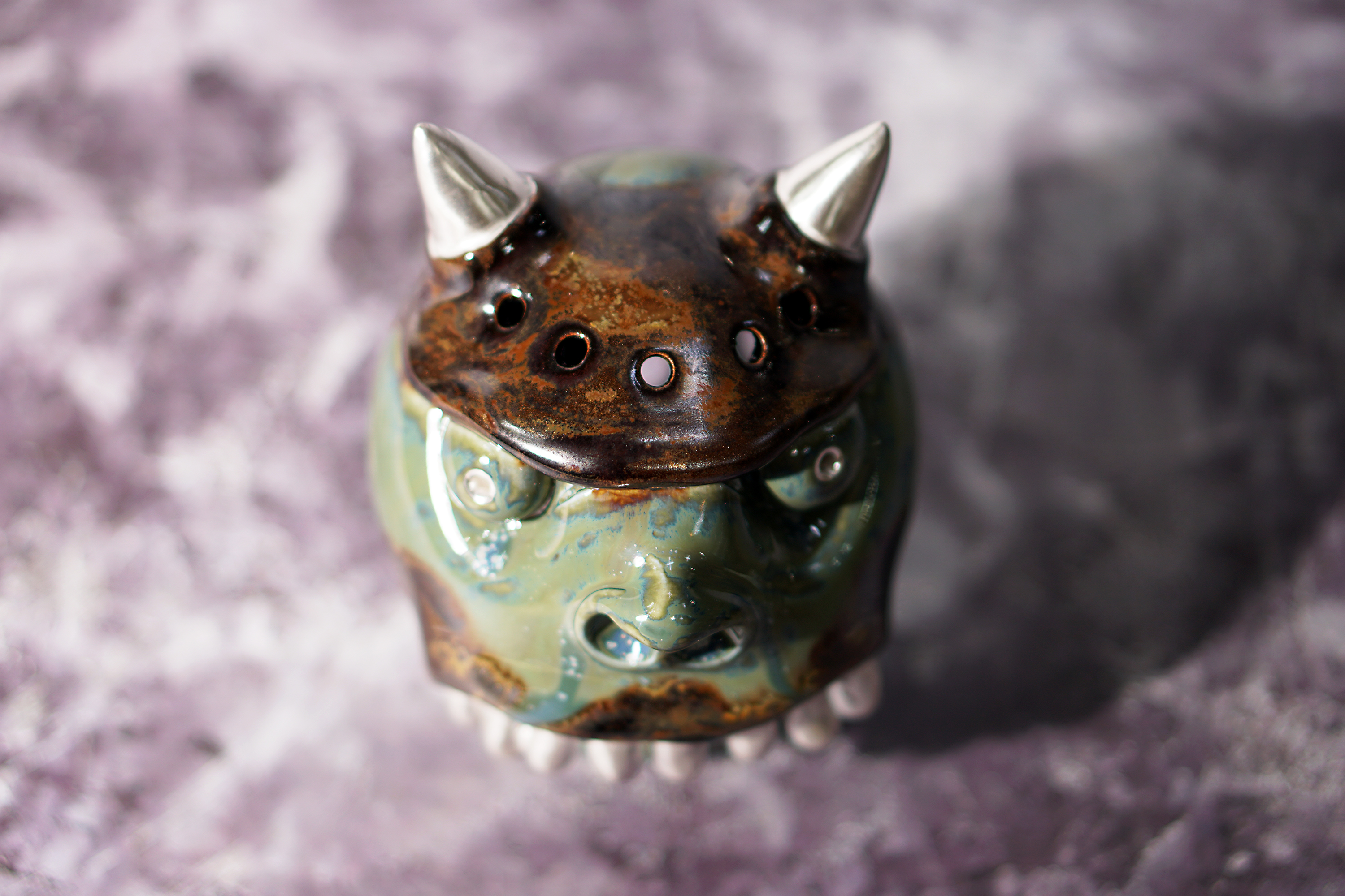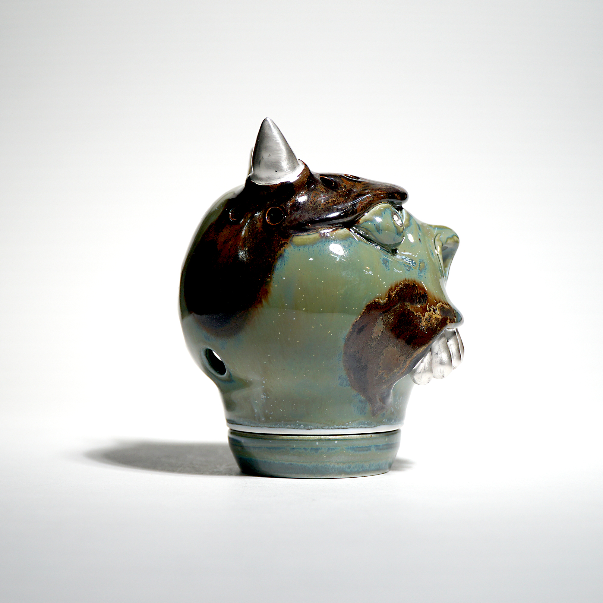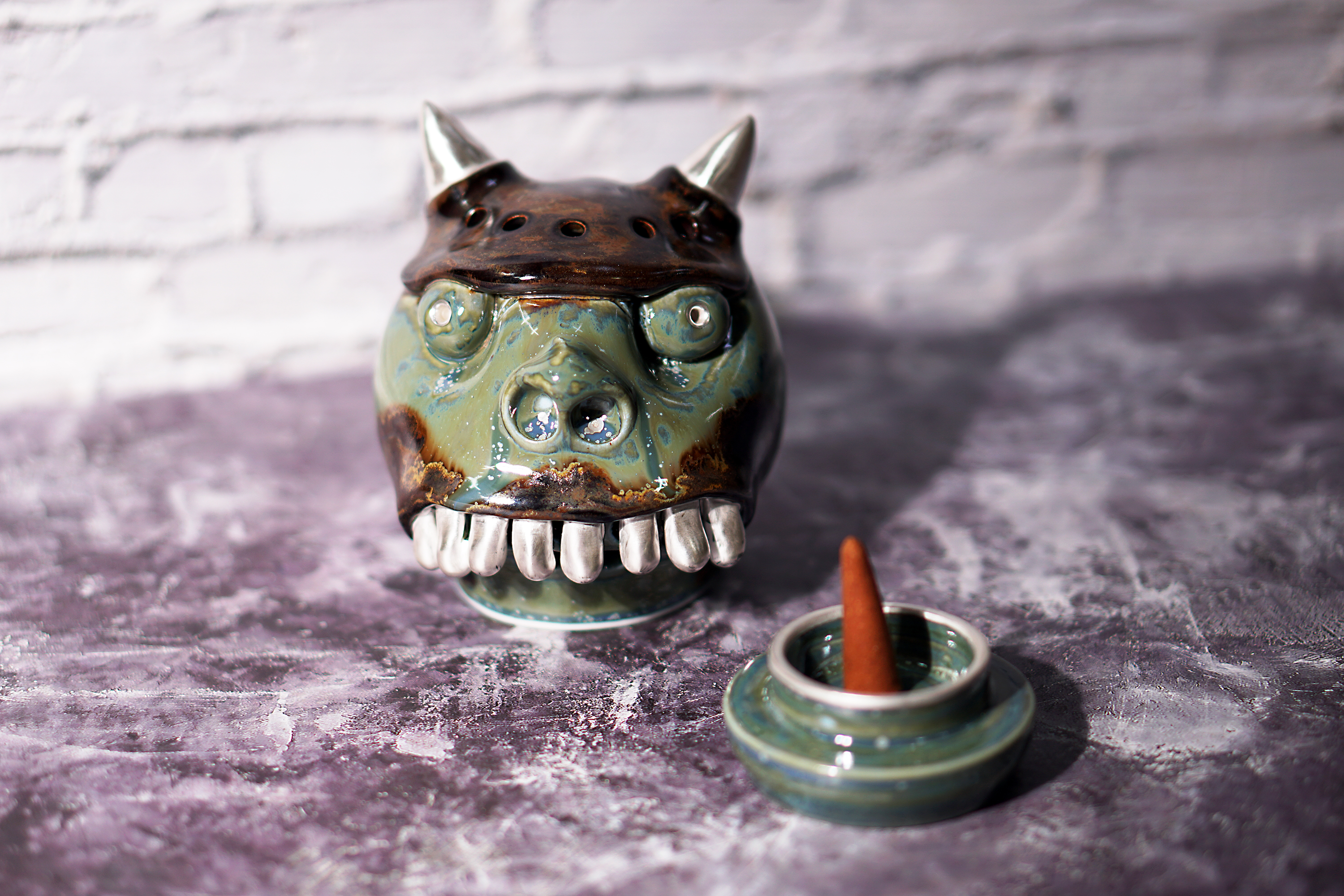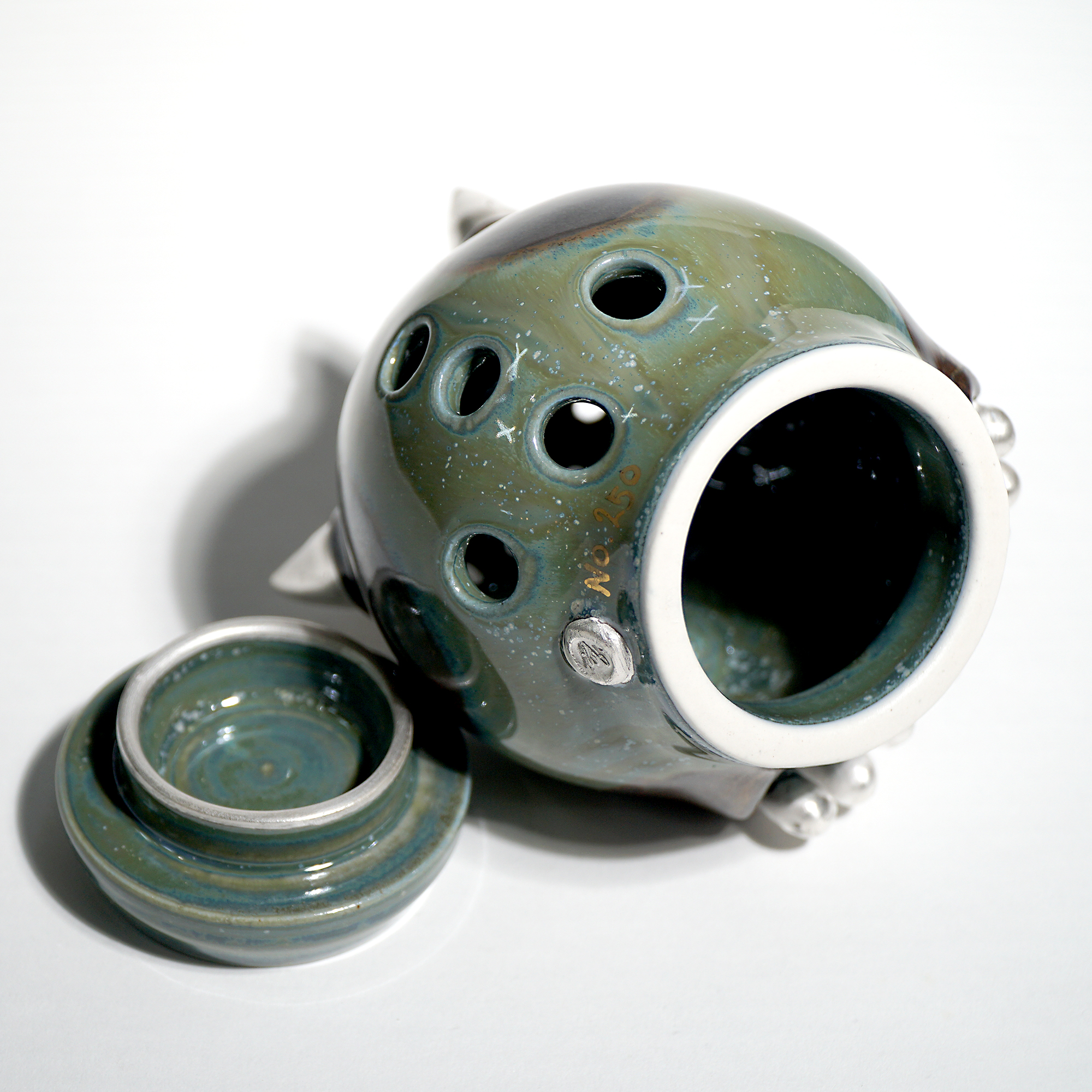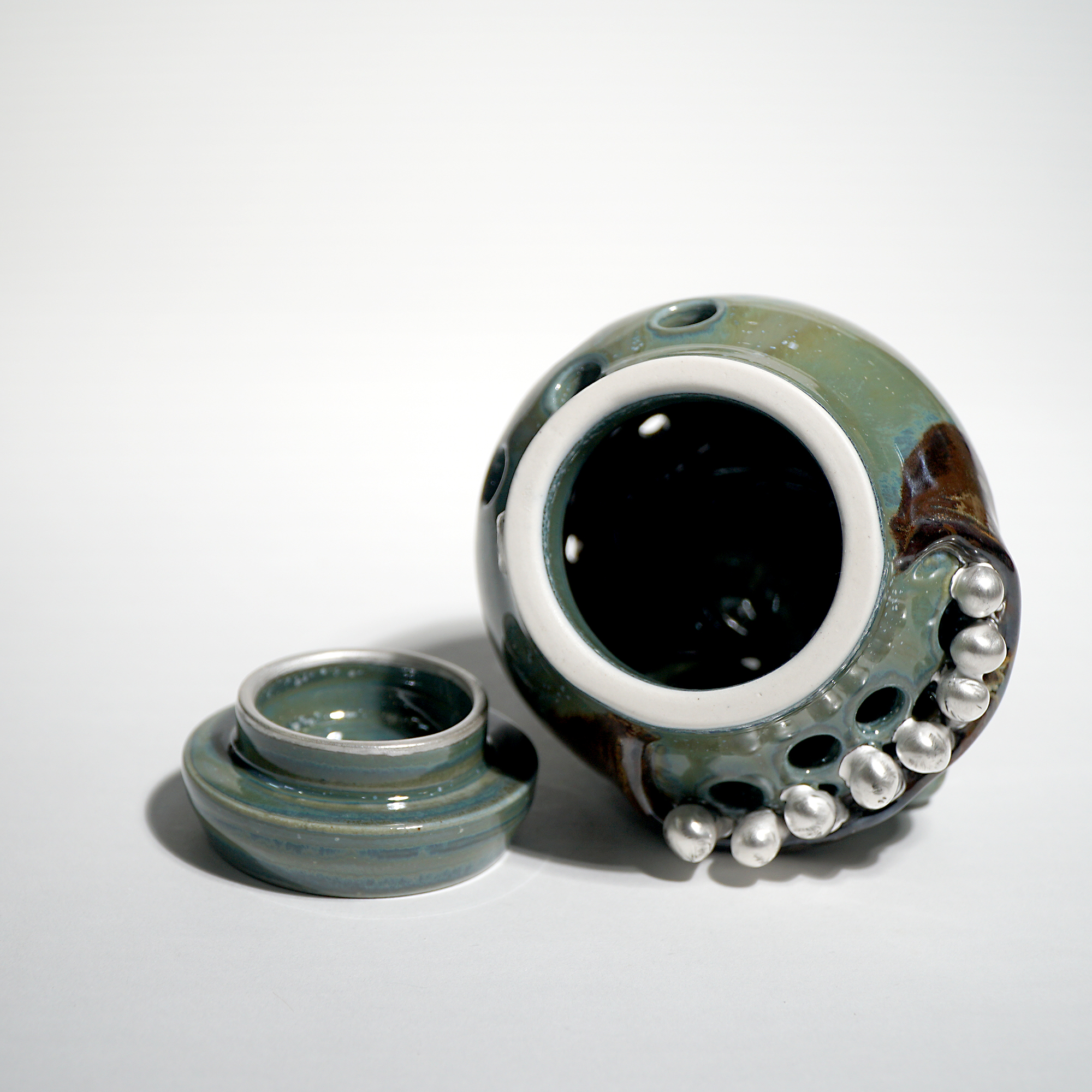 Made by sculpting and wheel throwing, the scent of incense burner spreads subtly through the hollow parts of the lid.