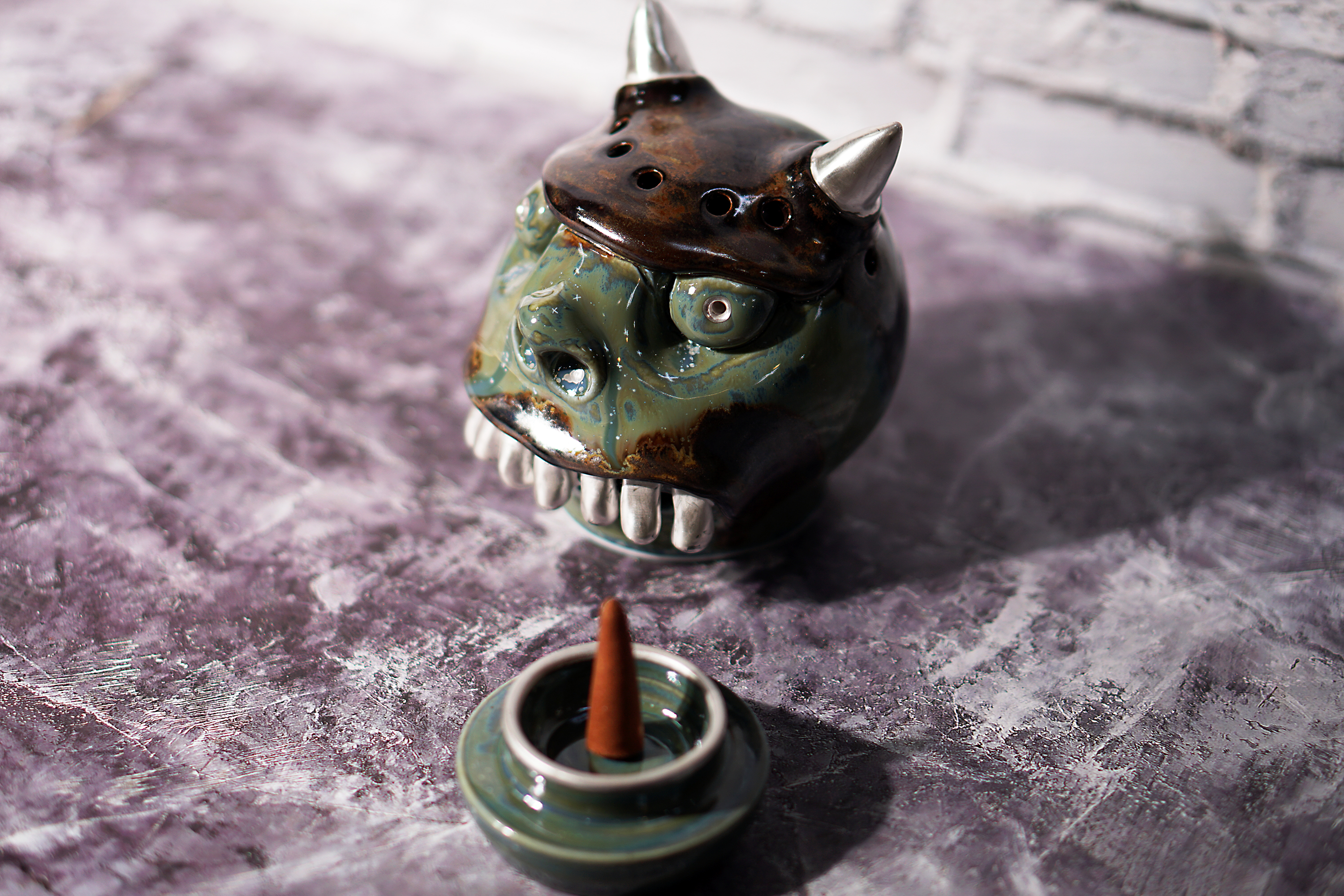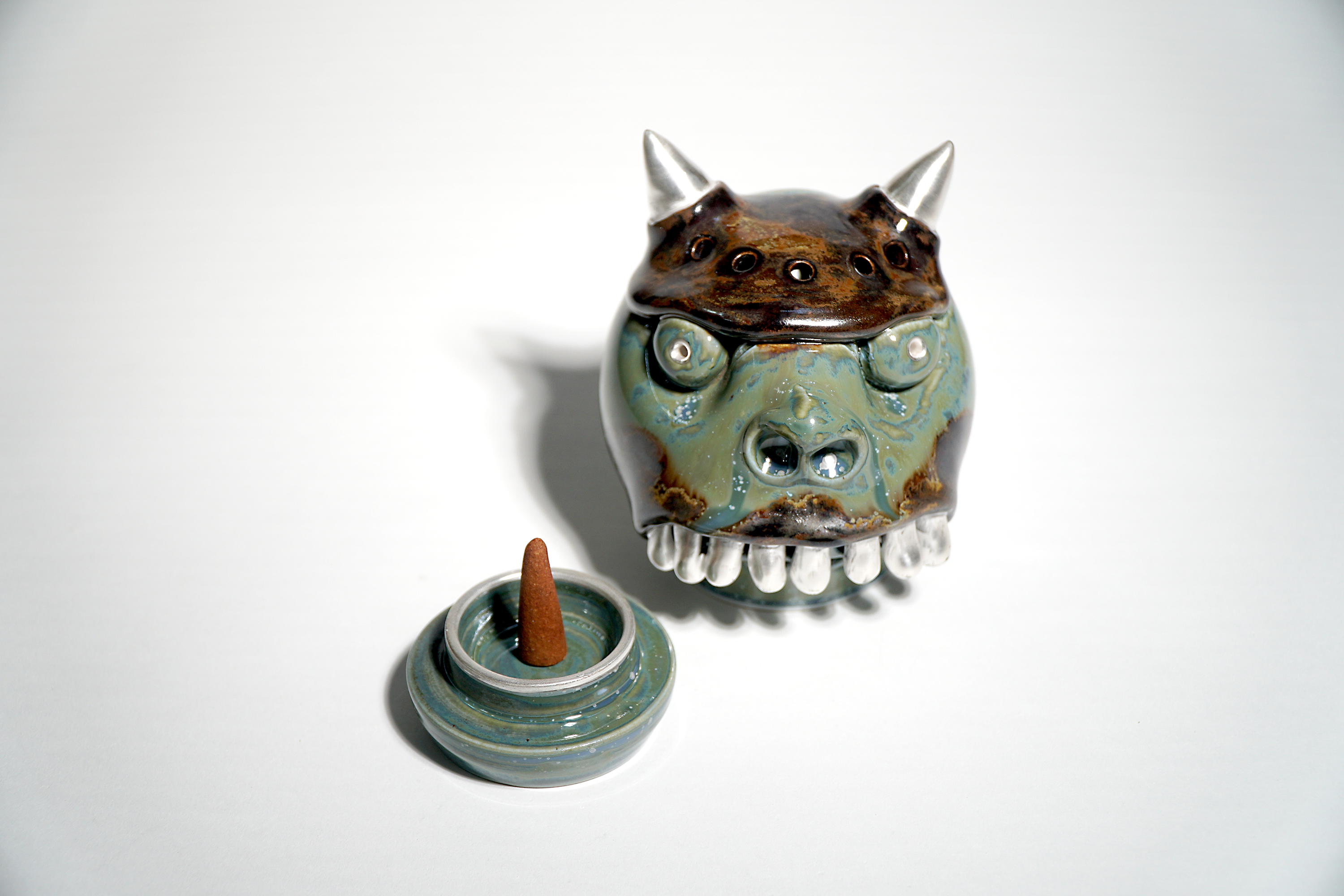 Made by sculpting and wheel throwing, the scent of incense burner spreads subtly through the hollow parts of the lid.