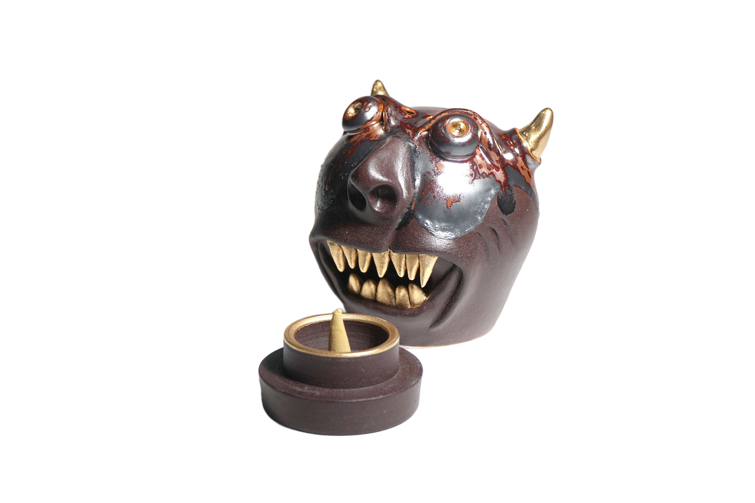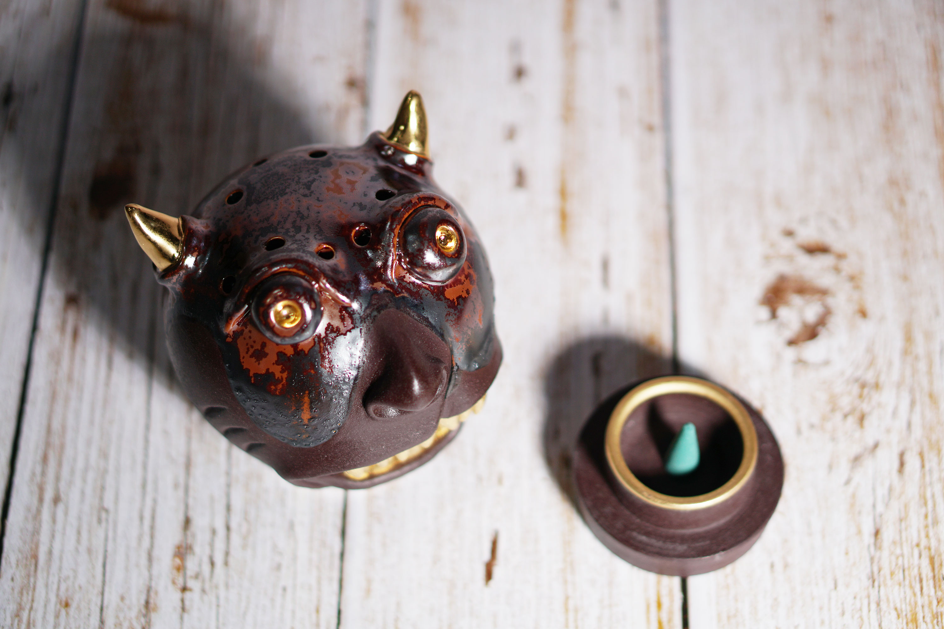 Made by sculpting and wheel throwing, the scent of incense burner spreads subtly through the hollow parts of the lid.