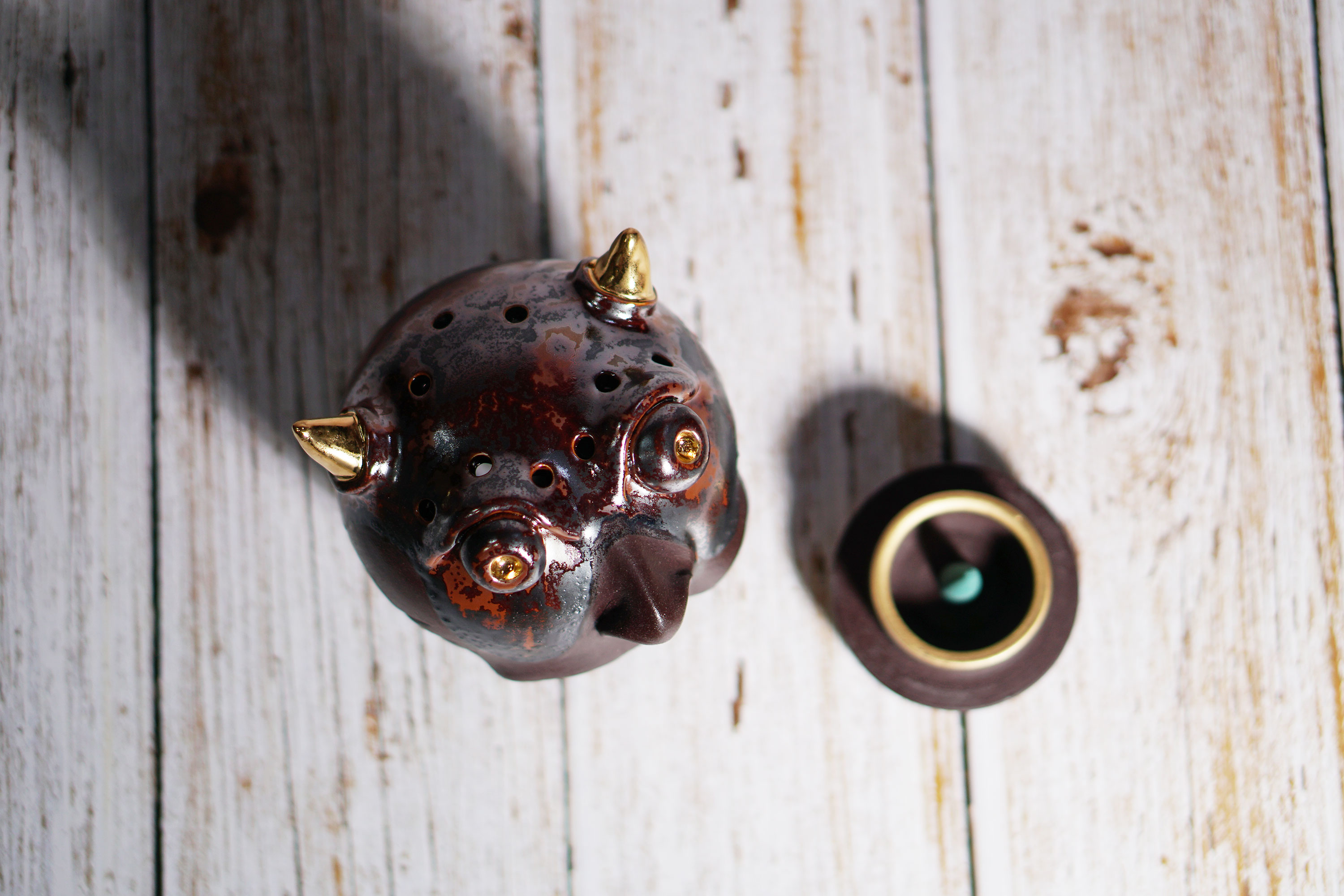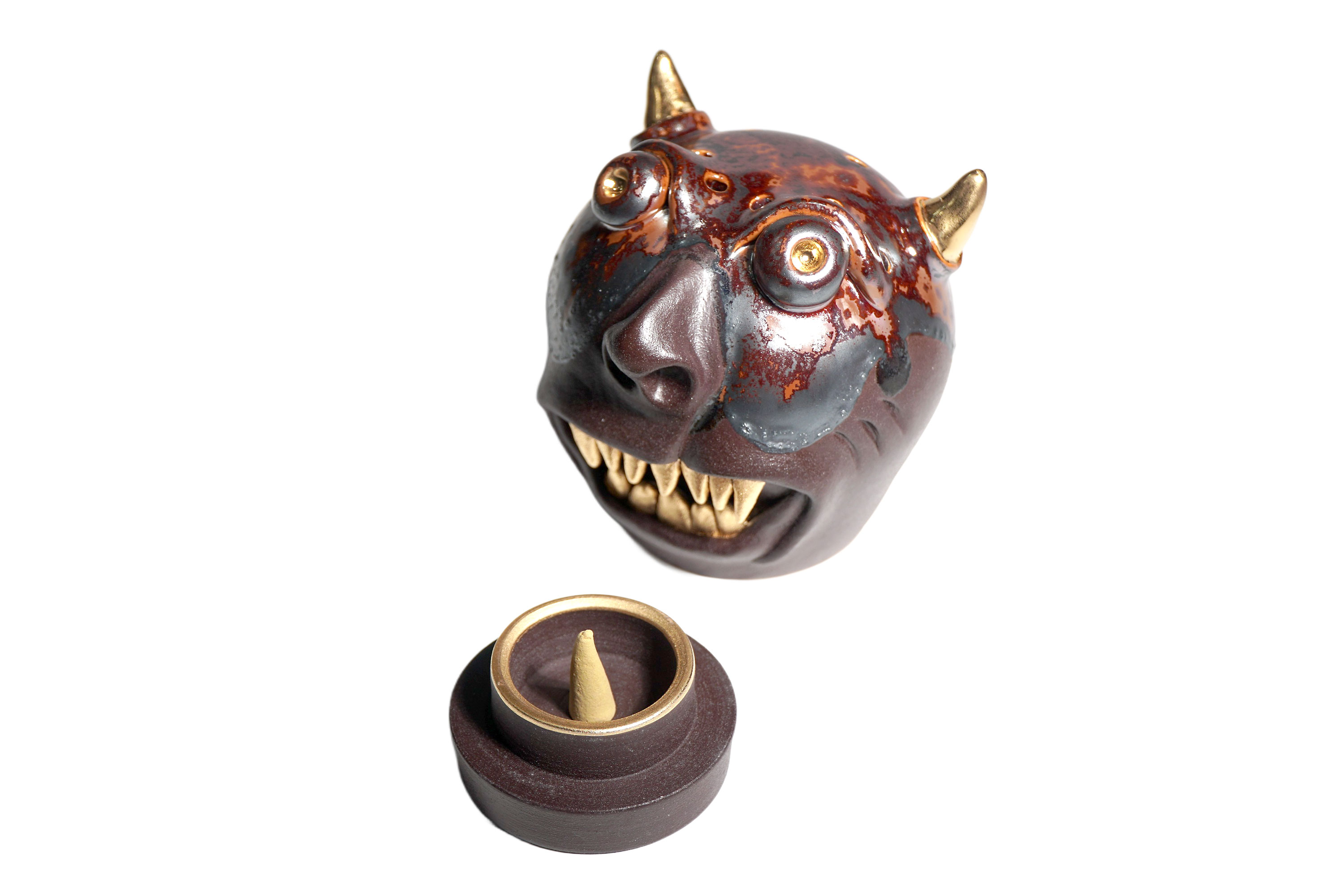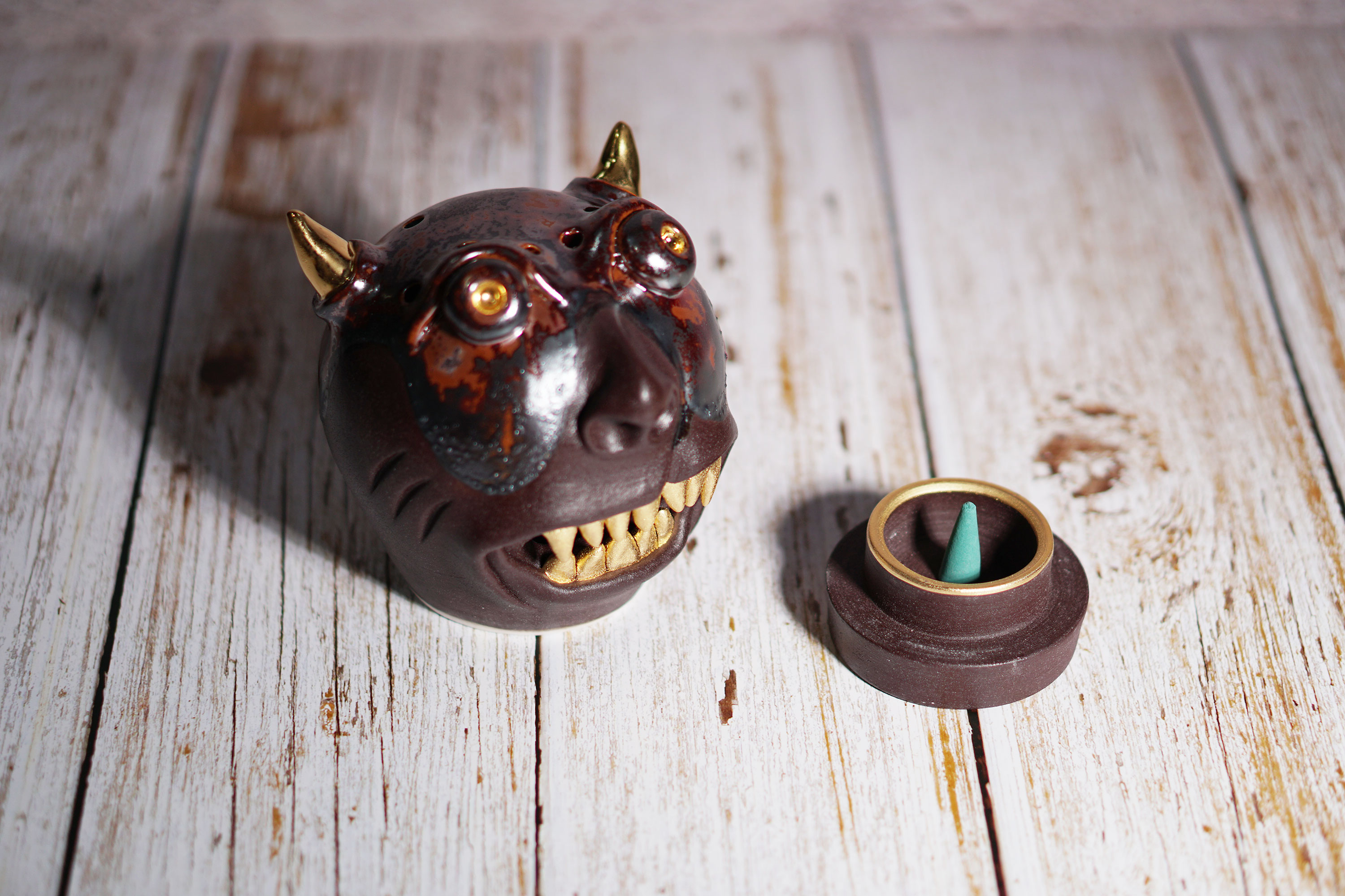 Made by sculpting and wheel throwing, the scent of incense burner spreads subtly through the hollow parts of the lid.