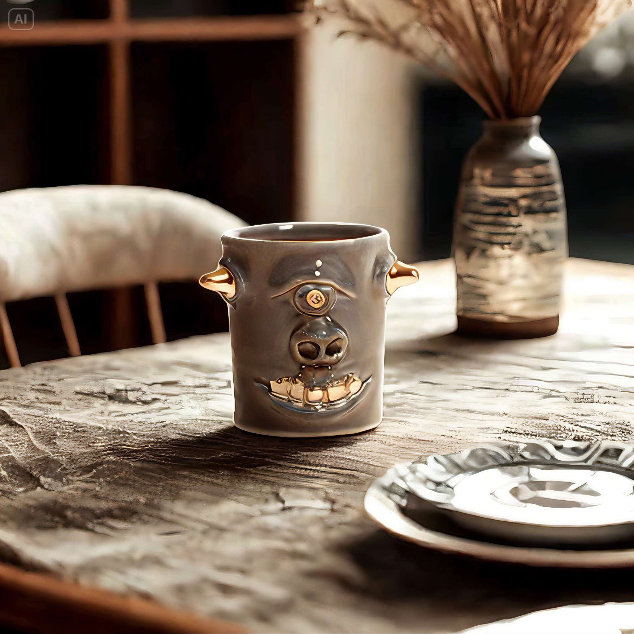 They make gold for good people, protect their homes, and help them succeed. Their figures exist in people's imaginations, and sometimes they are seen as men with magical powers, or they are portrayed as terrifying monsters. You can meet Korean goblin faces imagined by ceramic artist Hyung Jun Kim in our brand.