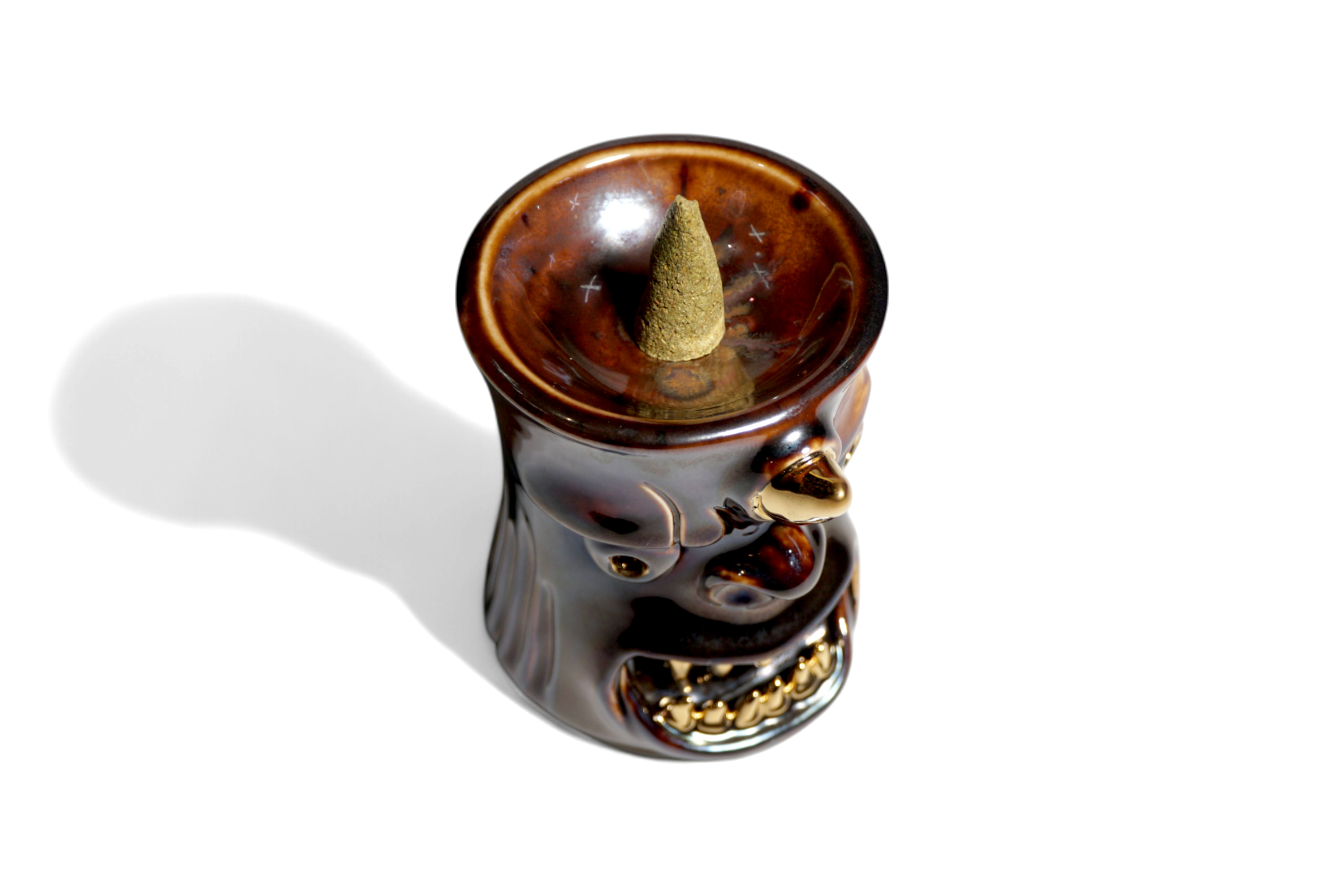 This versatile holder is designed to accommodate both stick and cone-shaped incense.