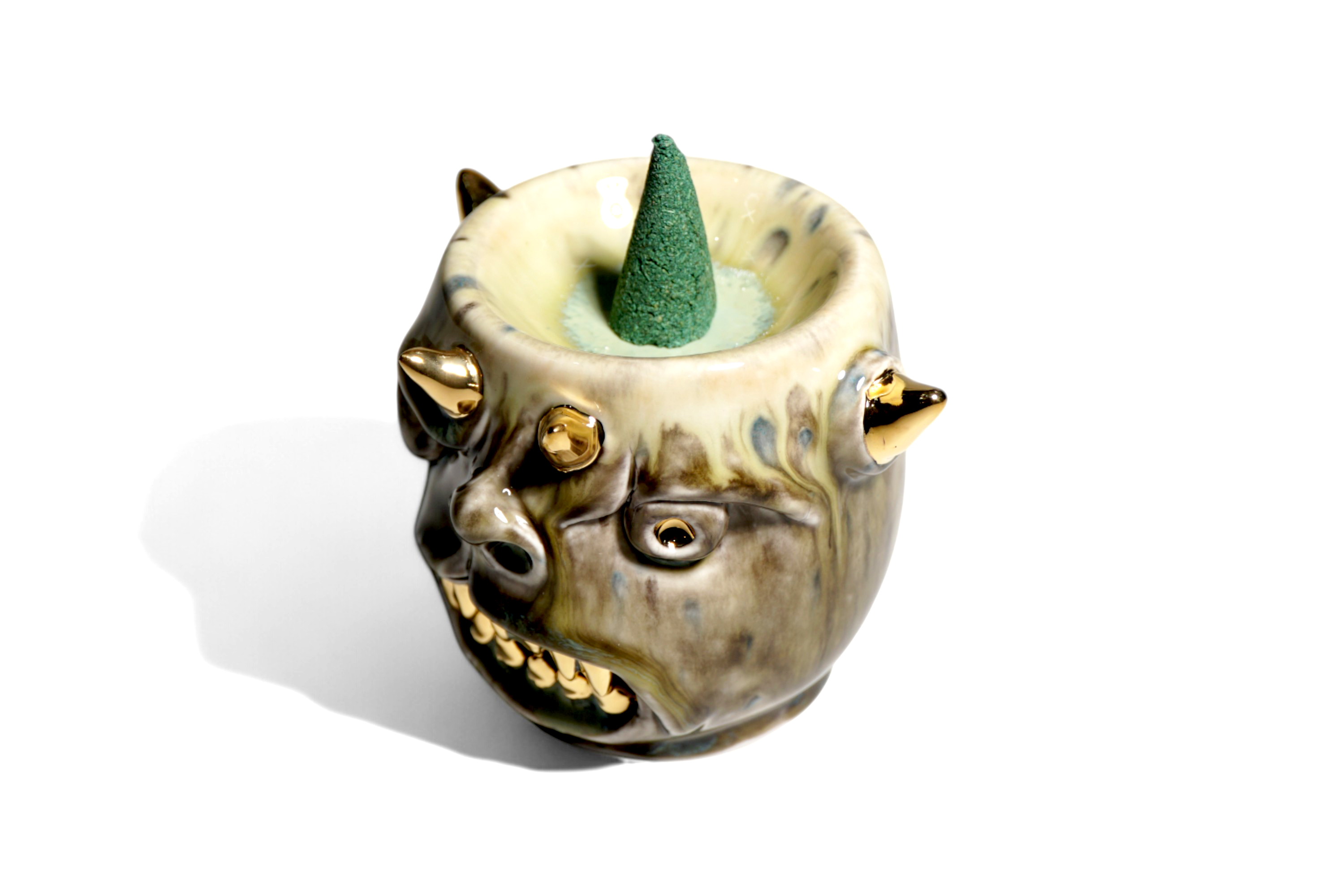 This versatile holder is designed to accommodate both stick and cone-shaped incense.