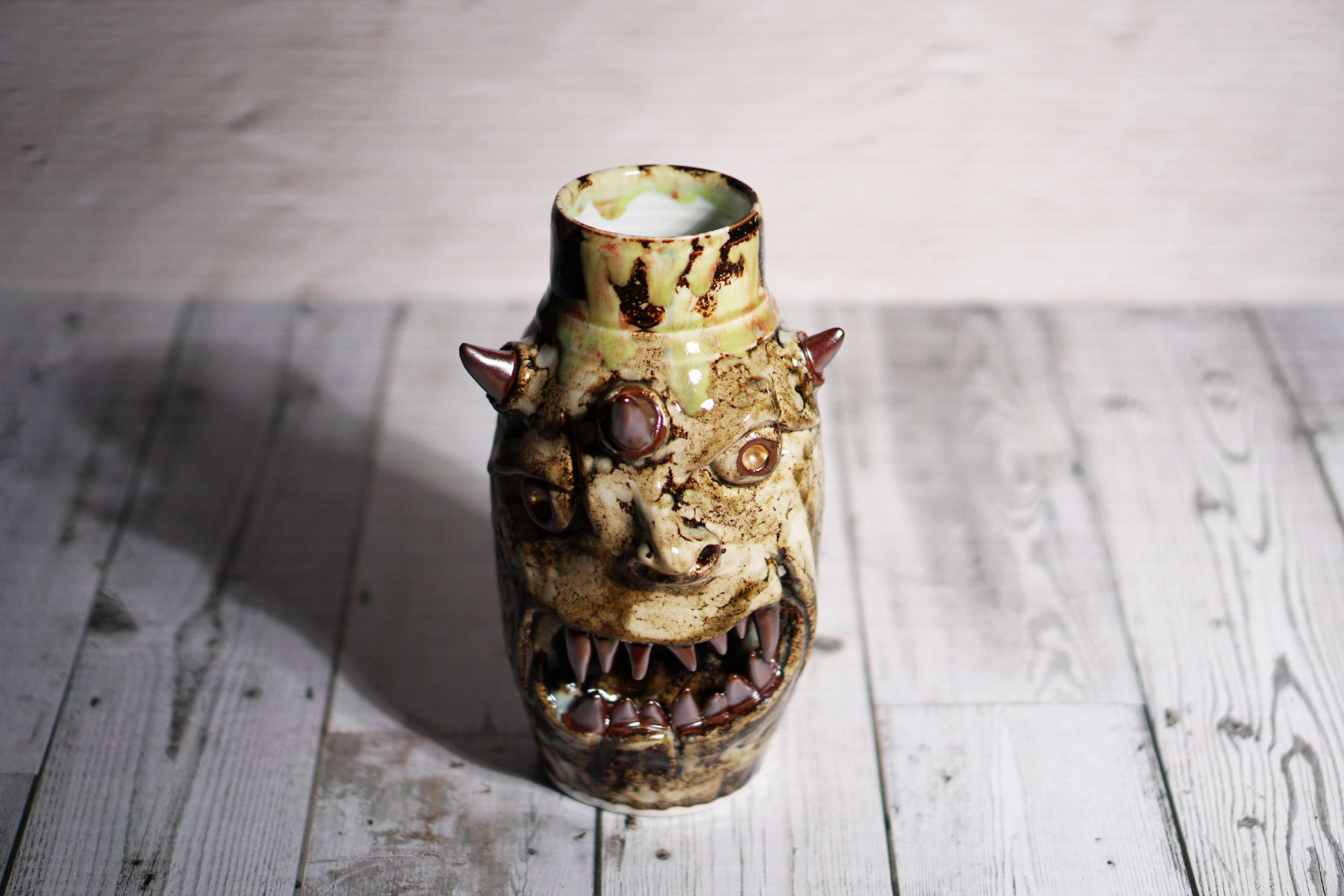 They make gold for good people, protect their homes, and help them succeed. Their figures exist in people's imaginations, and sometimes they are seen as men with magical powers, or they are portrayed as terrifying monsters. You can meet Korean goblin faces imagined by ceramic artist Hyung Jun Kim in our brand.
