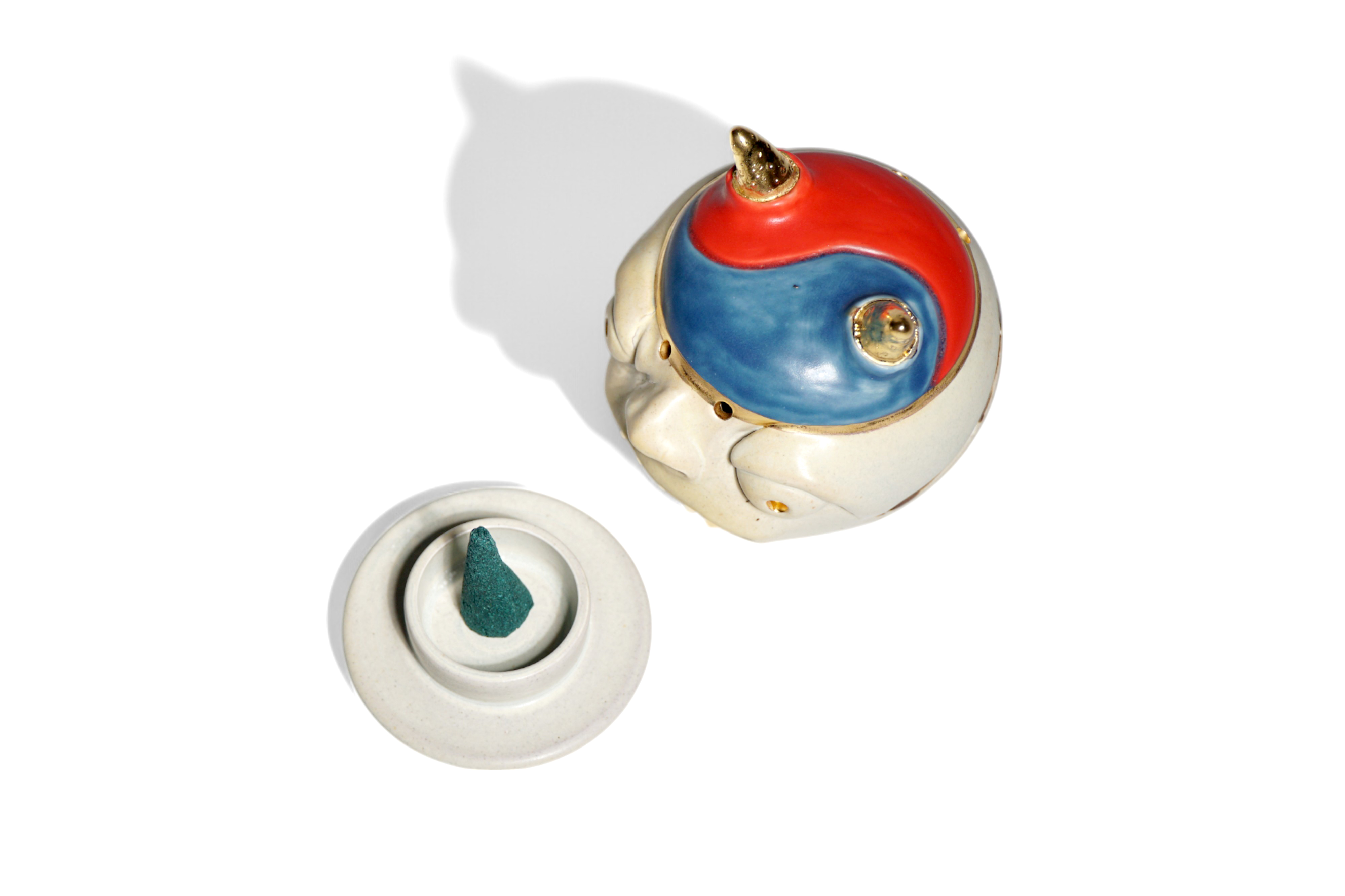 This versatile holder is designed to accommodate both stick and cone-shaped incense.