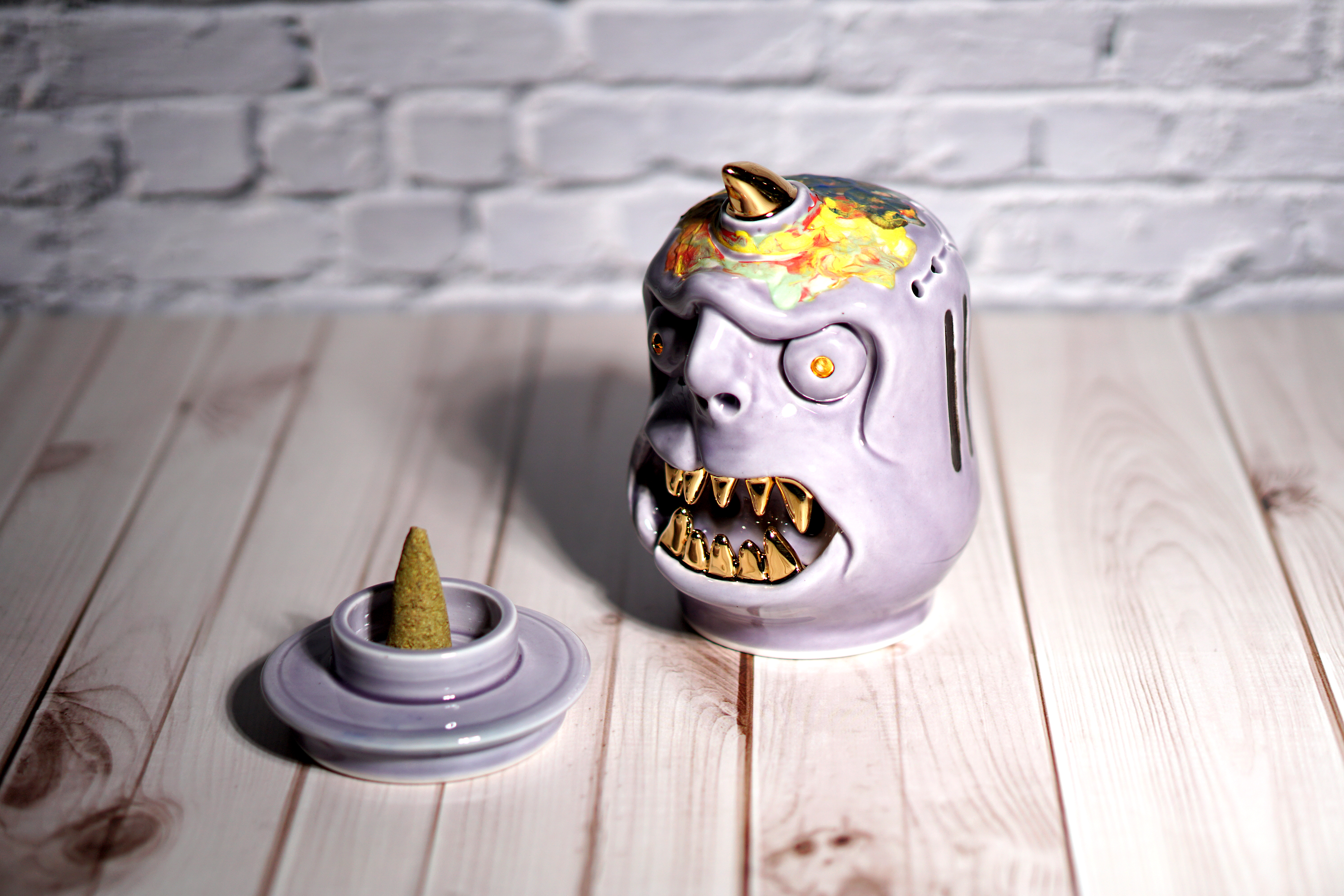 This versatile holder is designed to accommodate both stick and cone-shaped incense.