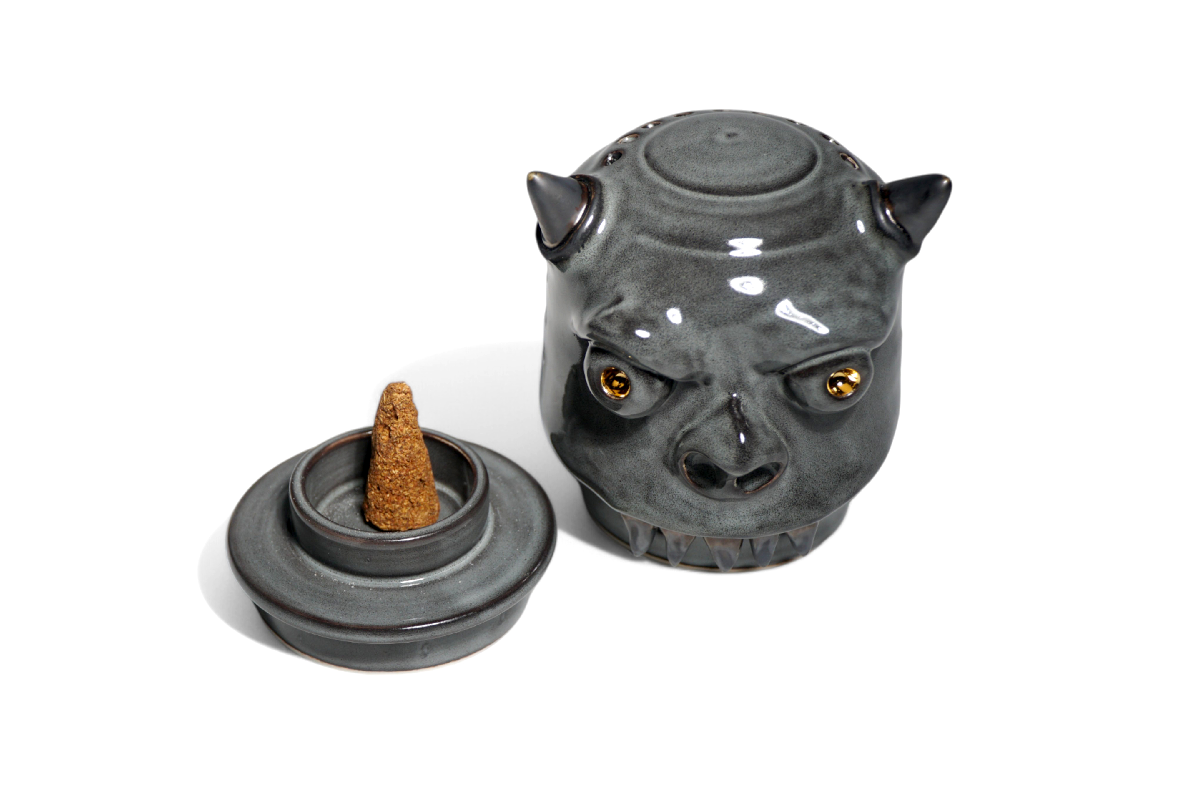 This versatile holder is designed to accommodate both stick and cone-shaped incense.