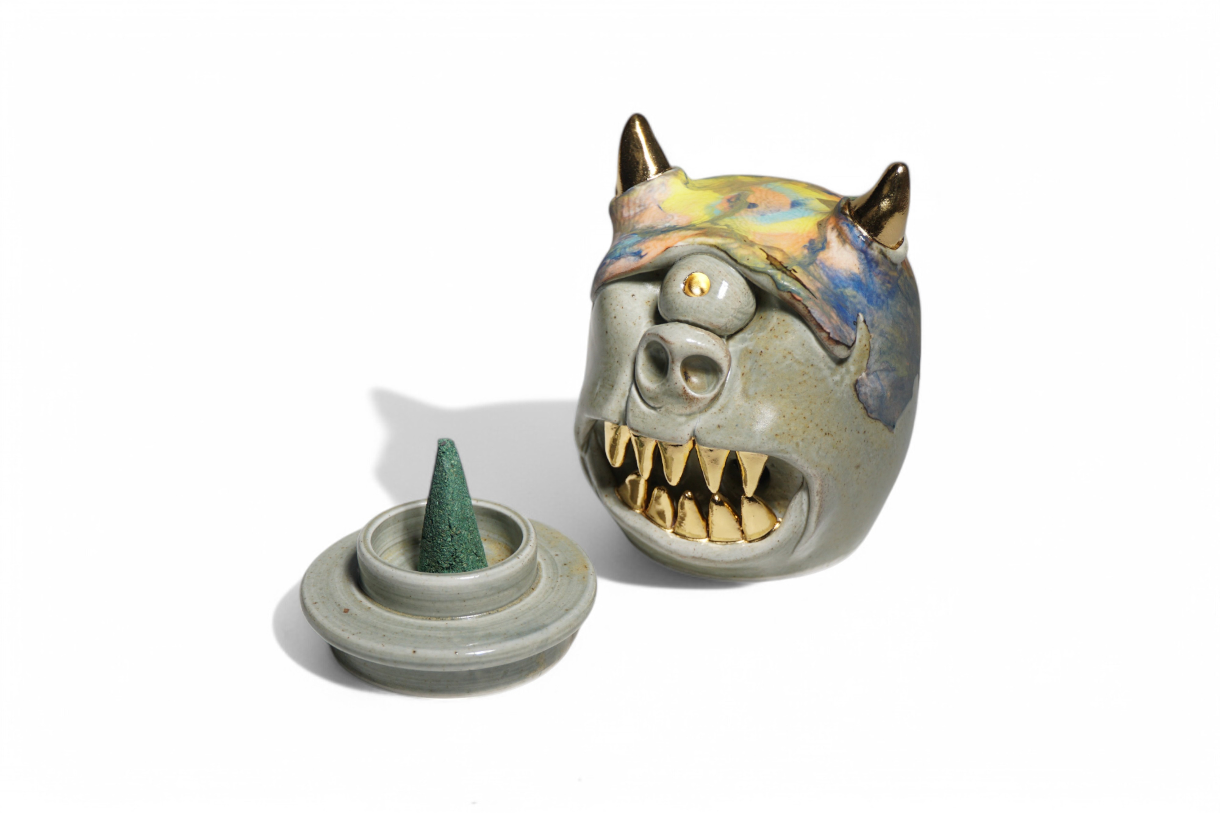 This versatile holder is designed to accommodate both stick and cone-shaped incense.