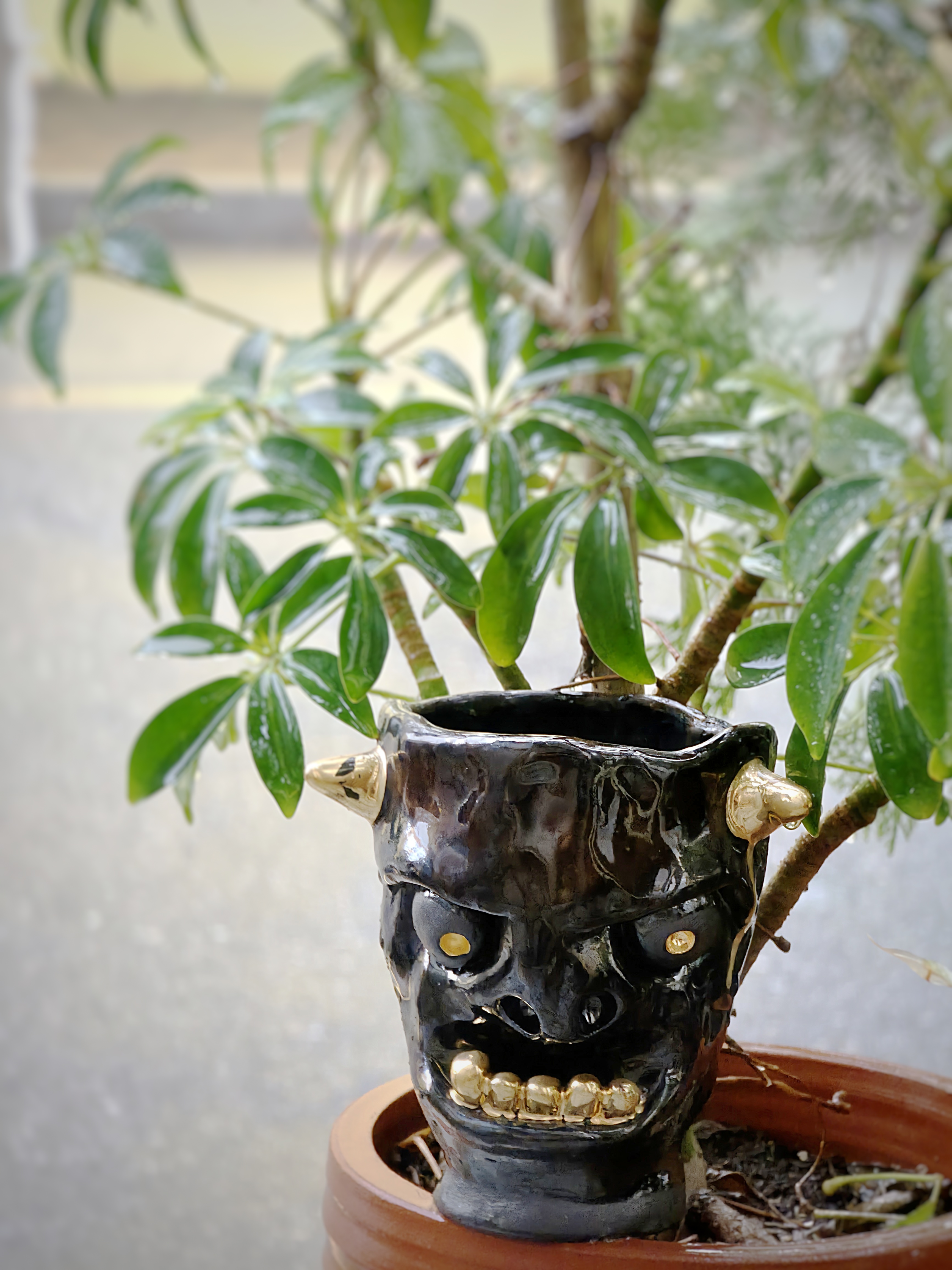 The DOGABI Plant Pot is a hand-pinched ceramic piece that creates a uniquely captivating atmosphere when planted with greenery.
