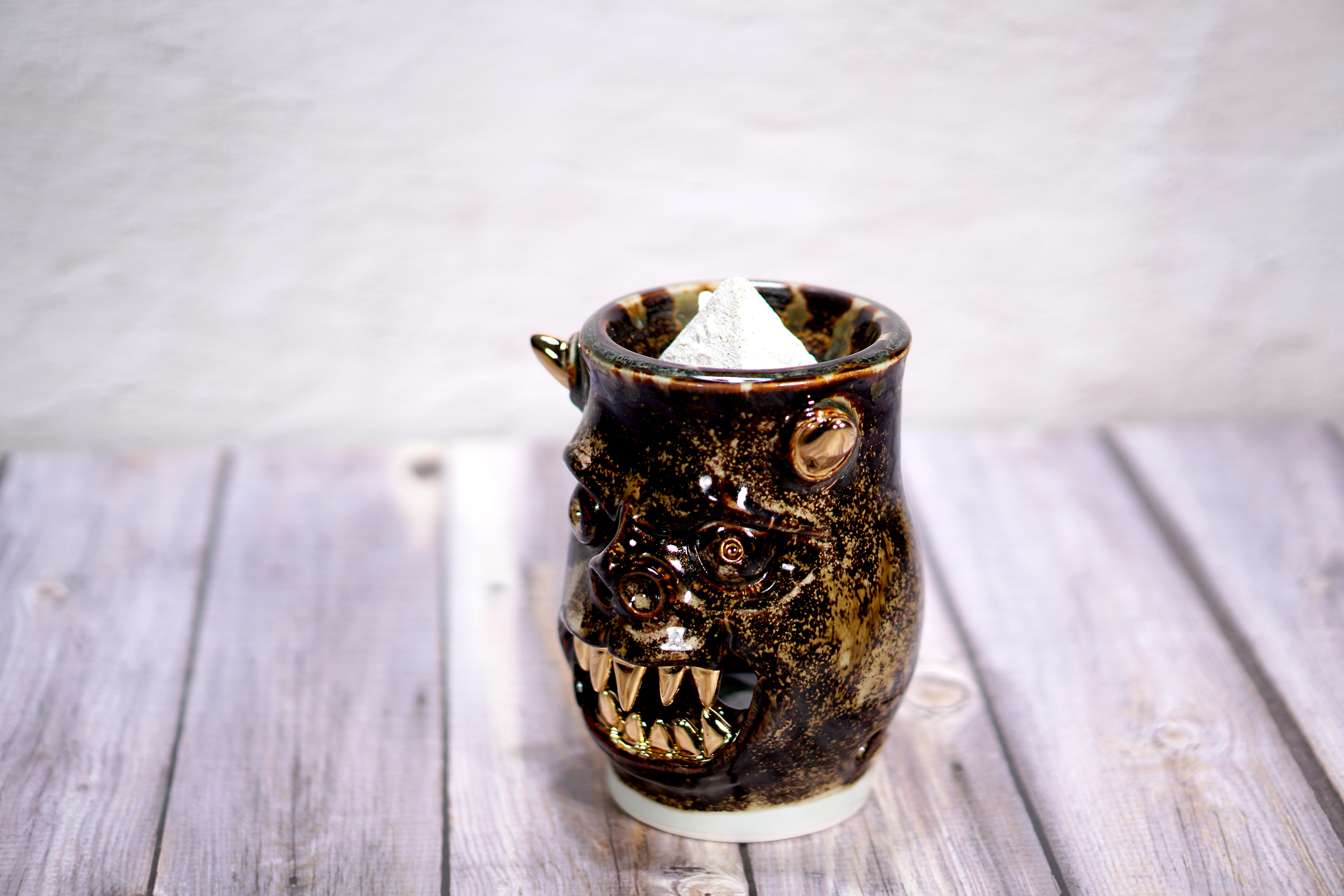 They make gold for good people, protect their homes, and help them succeed. Their figures exist in people's imaginations, and sometimes they are seen as men with magical powers, or they are portrayed as terrifying monsters. You can meet Korean goblin faces imagined by ceramic artist Hyung Jun Kim in our brand.