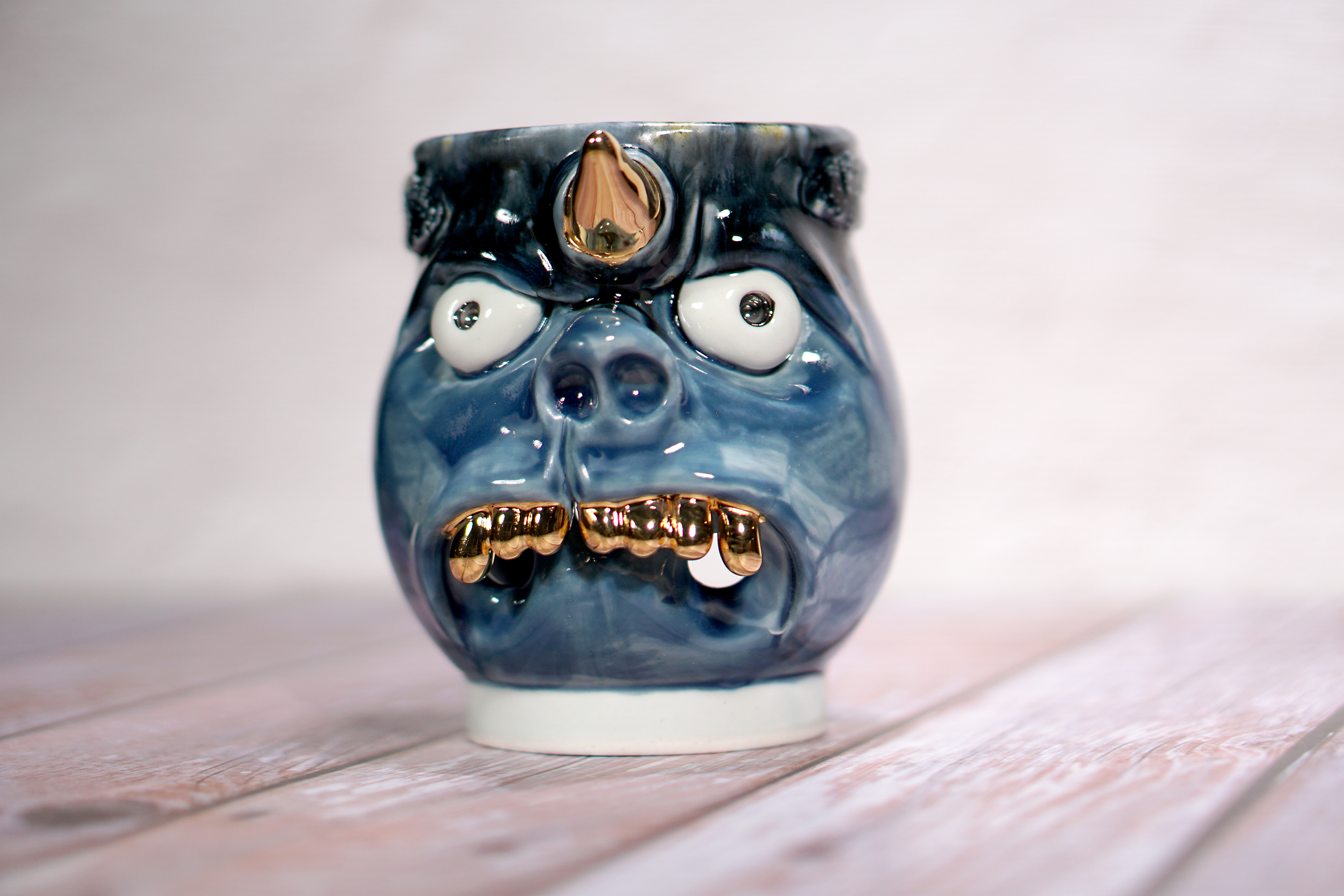 They make gold for good people, protect their homes, and help them succeed. Their figures exist in people's imaginations, and sometimes they are seen as men with magical powers, or they are portrayed as terrifying monsters. You can meet Korean goblin faces imagined by ceramic artist Hyung Jun Kim in our brand.