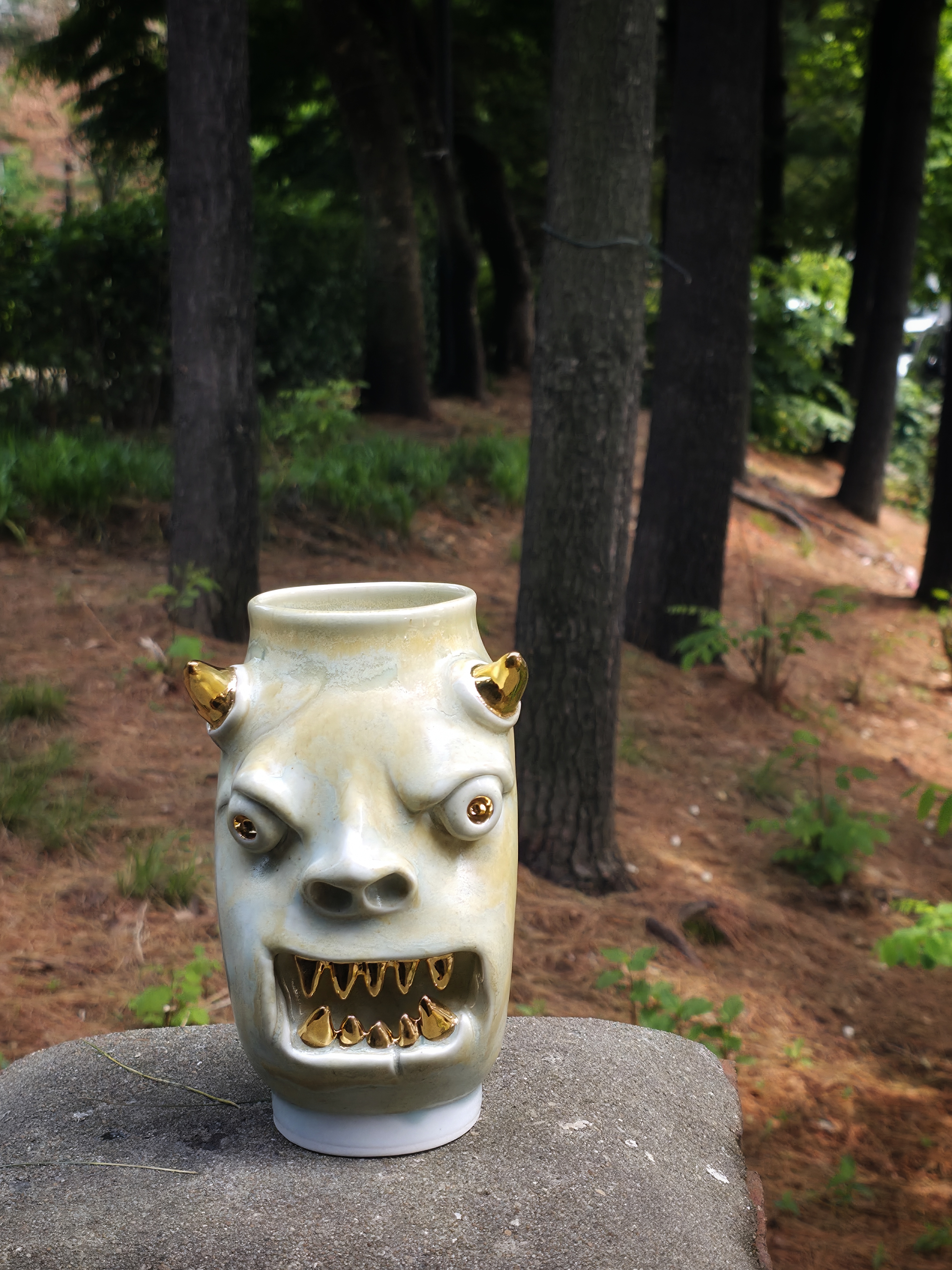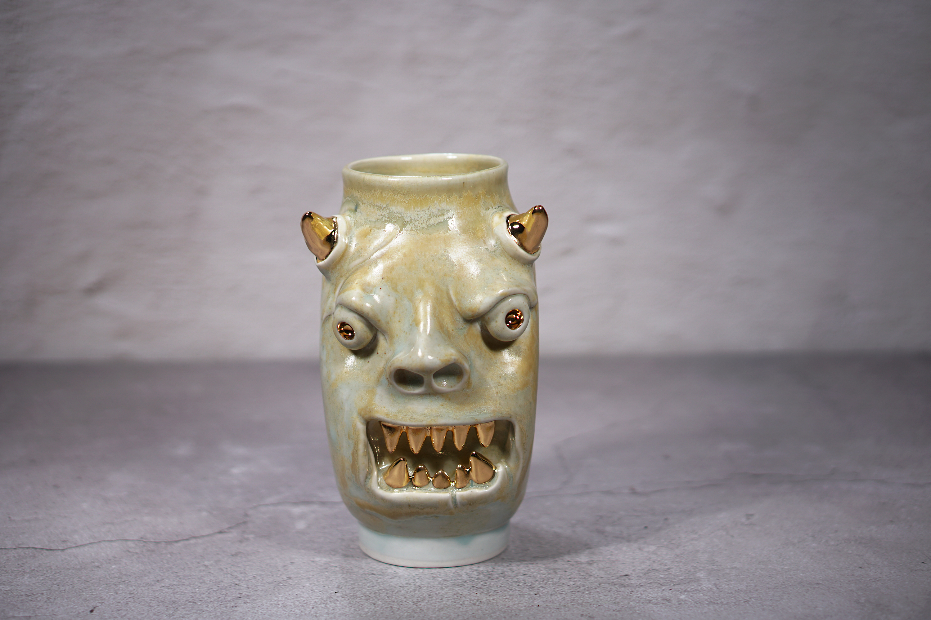 They make gold for good people, protect their homes, and help them succeed. Their figures exist in people's imaginations, and sometimes they are seen as men with magical powers, or they are portrayed as terrifying monsters. You can meet Korean goblin faces imagined by ceramic artist Hyung Jun Kim in our brand.