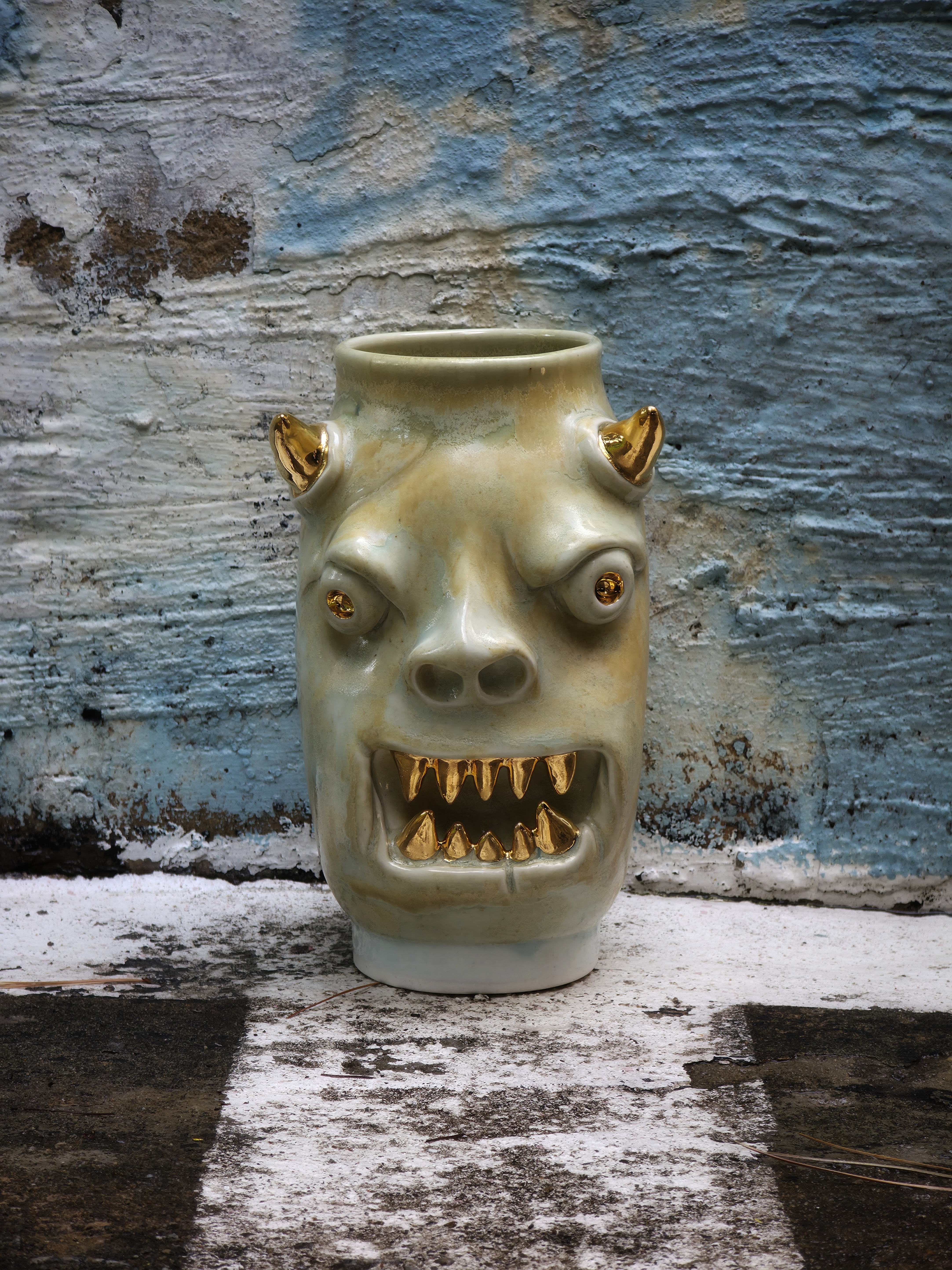 They make gold for good people, protect their homes, and help them succeed. Their figures exist in people's imaginations, and sometimes they are seen as men with magical powers, or they are portrayed as terrifying monsters. You can meet Korean goblin faces imagined by ceramic artist Hyung Jun Kim in our brand.