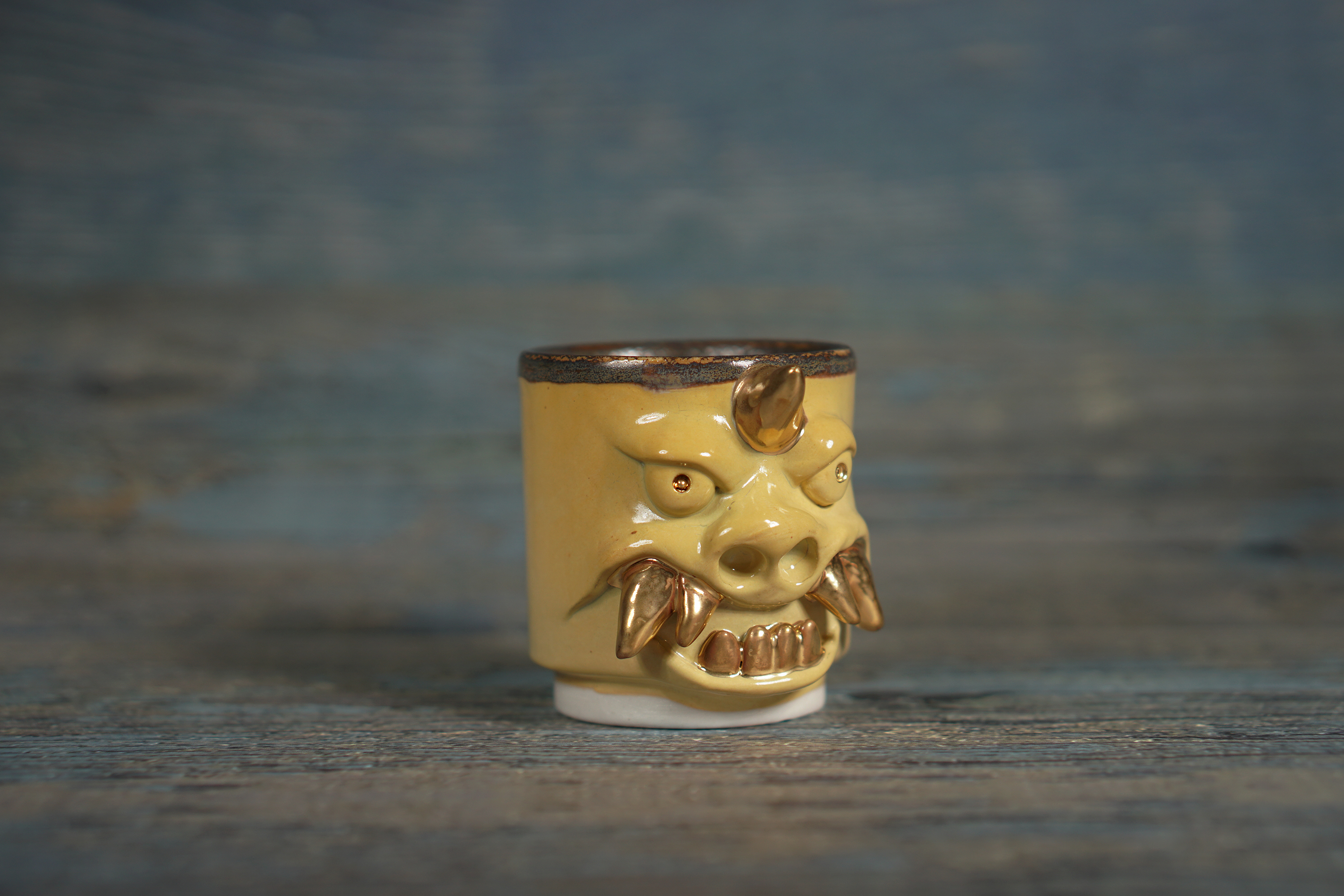 They make gold for good people, protect their homes, and help them succeed. Their figures exist in people's imaginations, and sometimes they are seen as men with magical powers, or they are portrayed as terrifying monsters. You can meet Korean goblin faces imagined by ceramic artist Hyung Jun Kim in our brand.