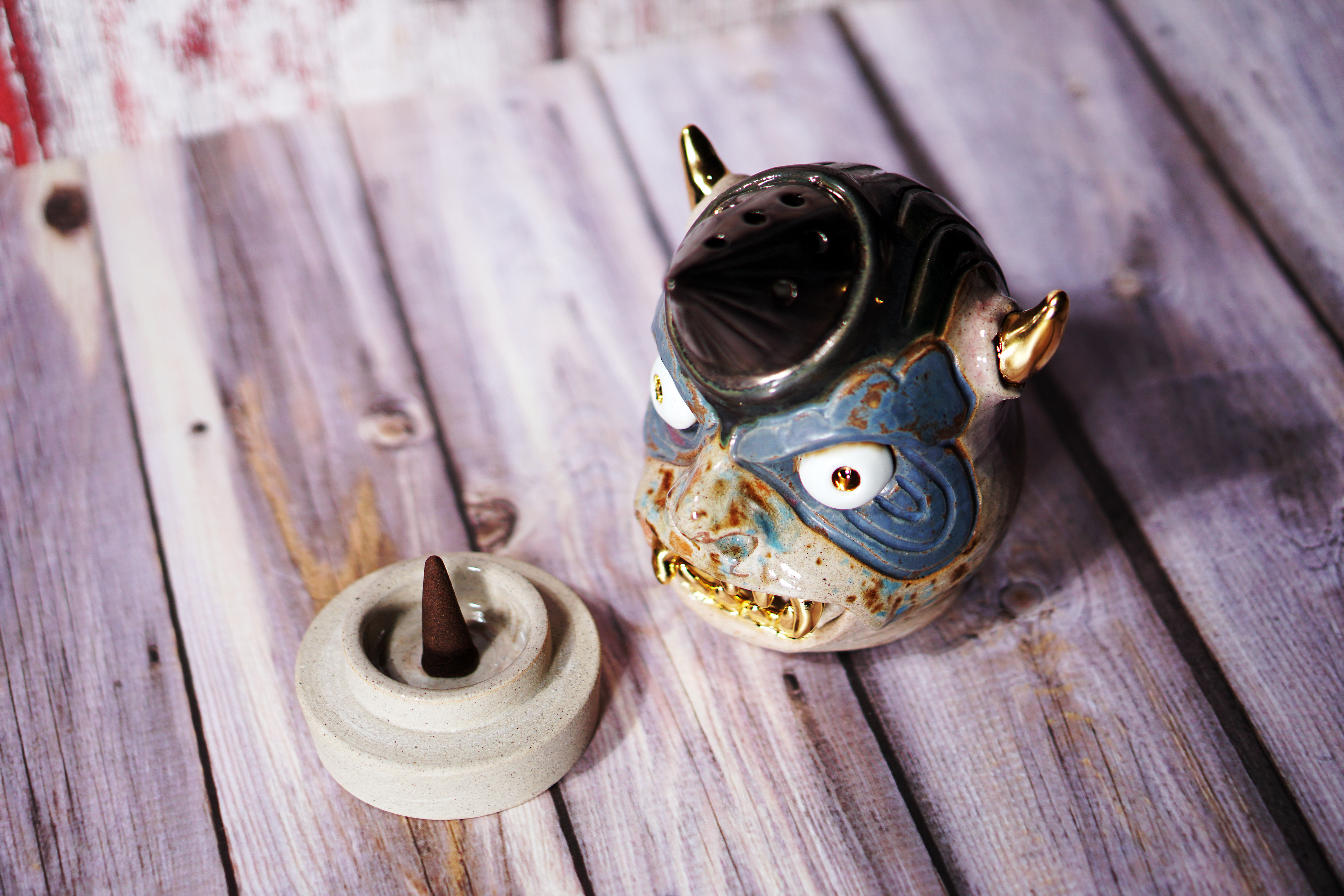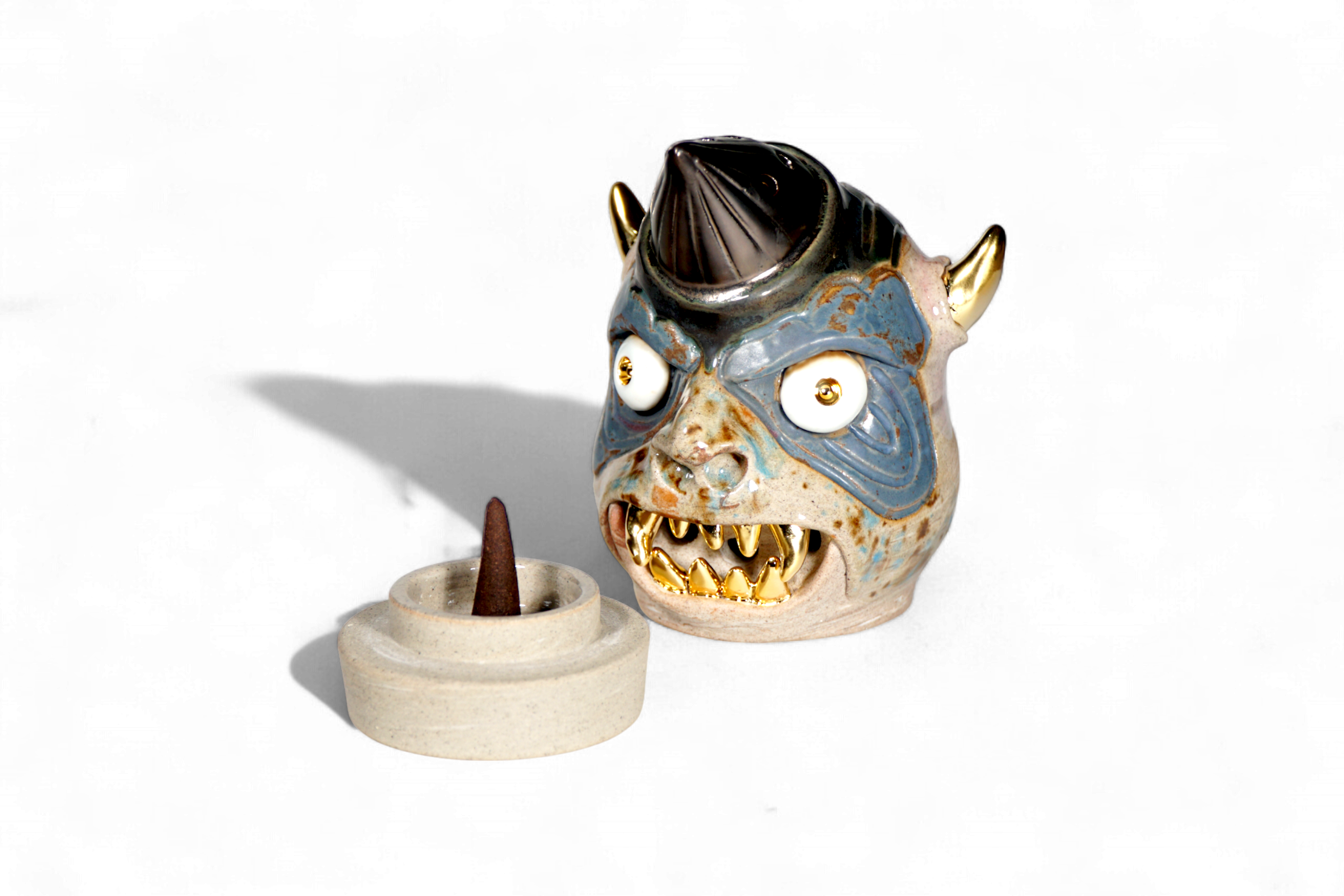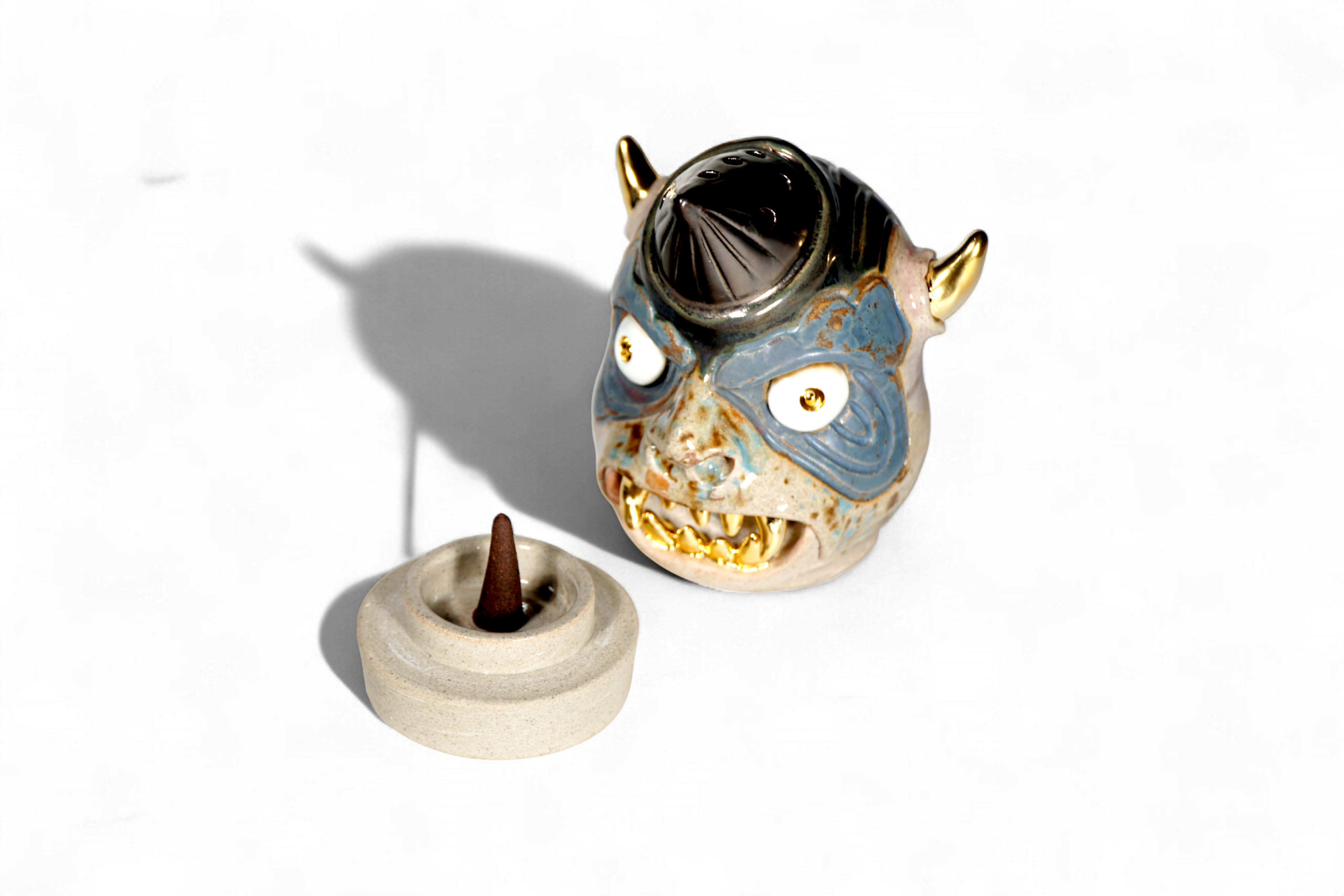 Made by sculpting and wheel throwing, the scent of incense burner spreads subtly through the hollow parts of the lid.