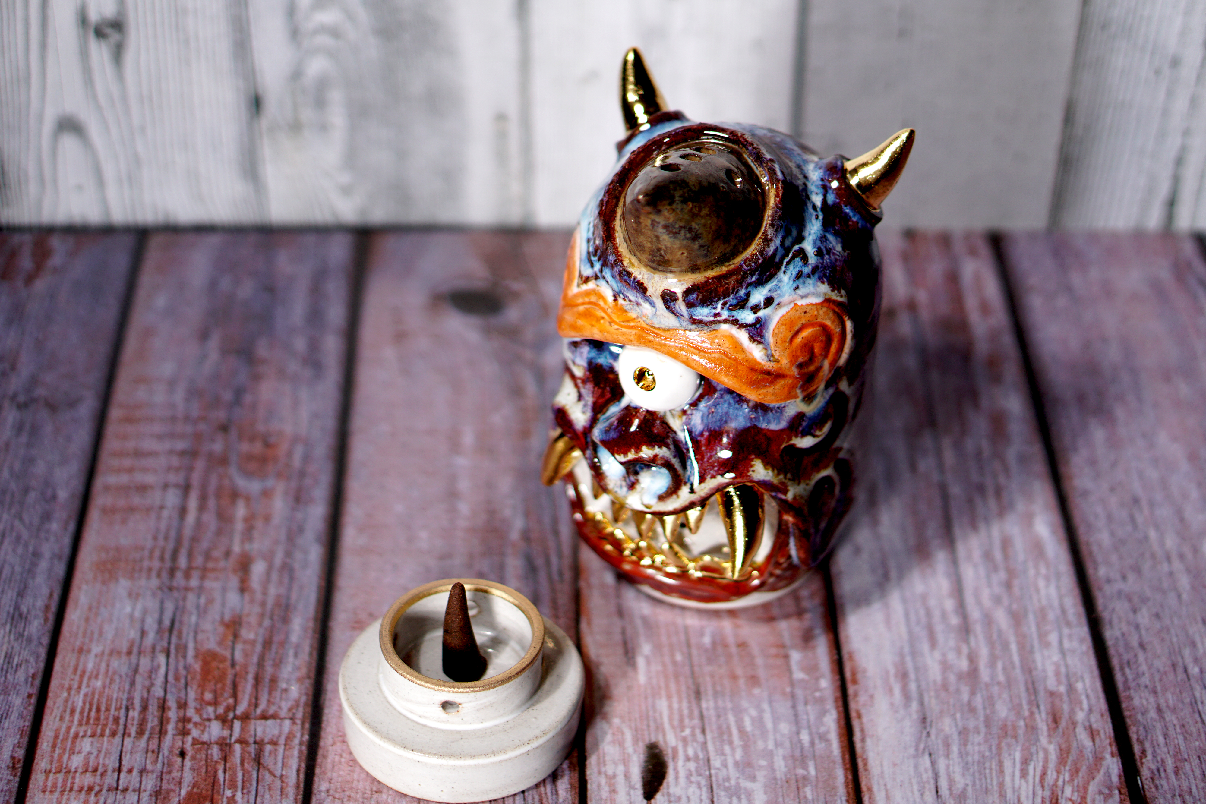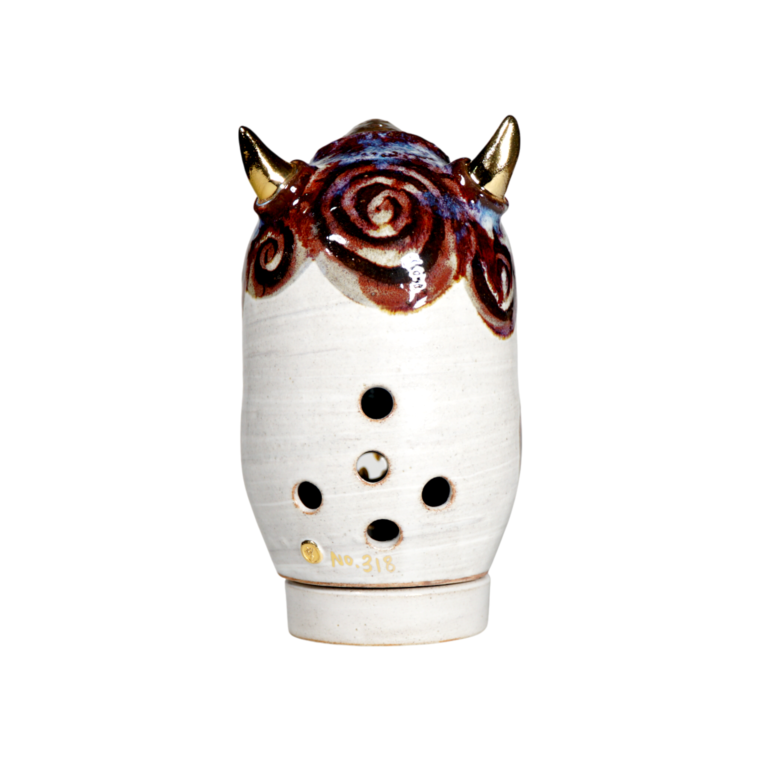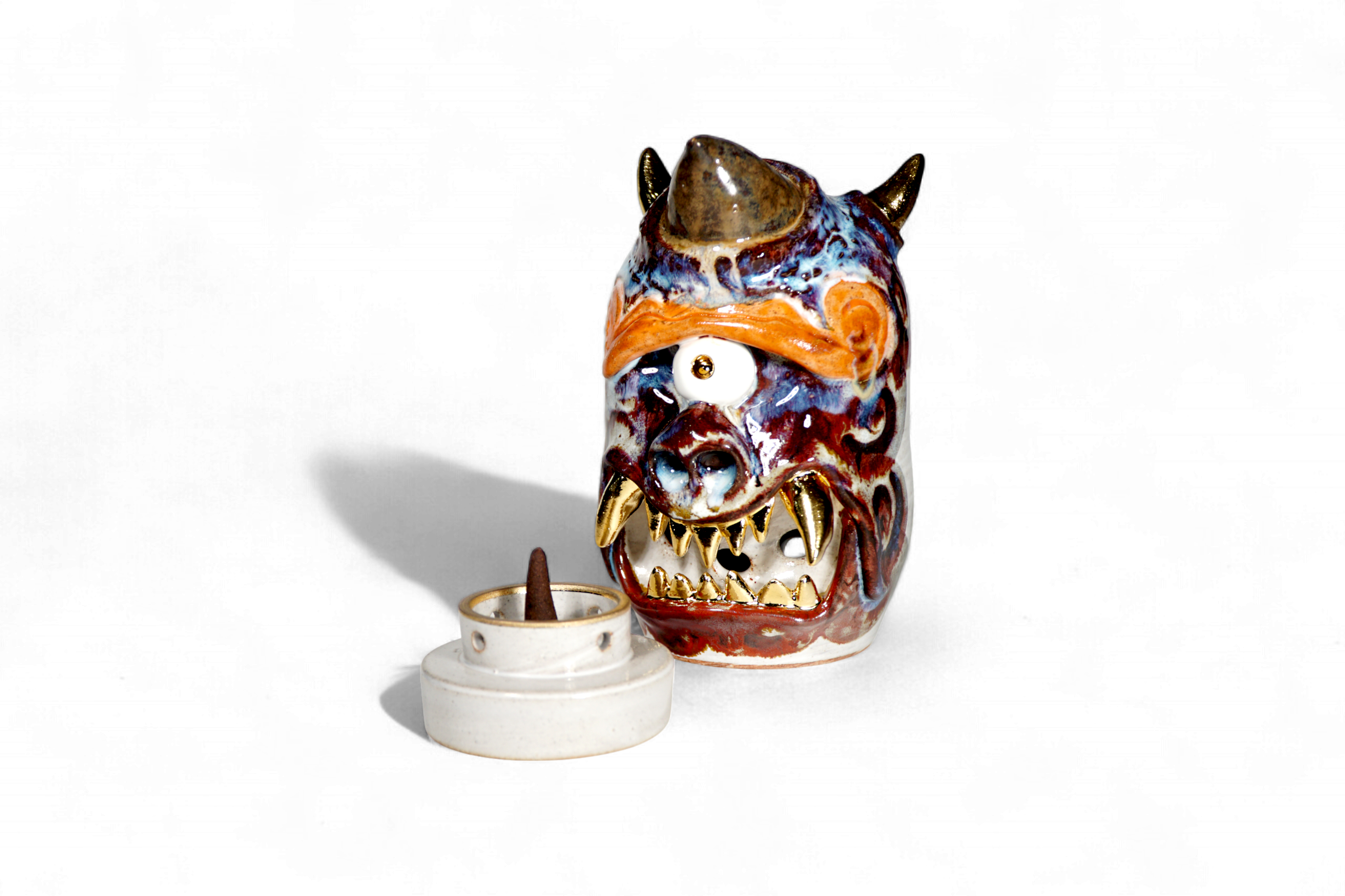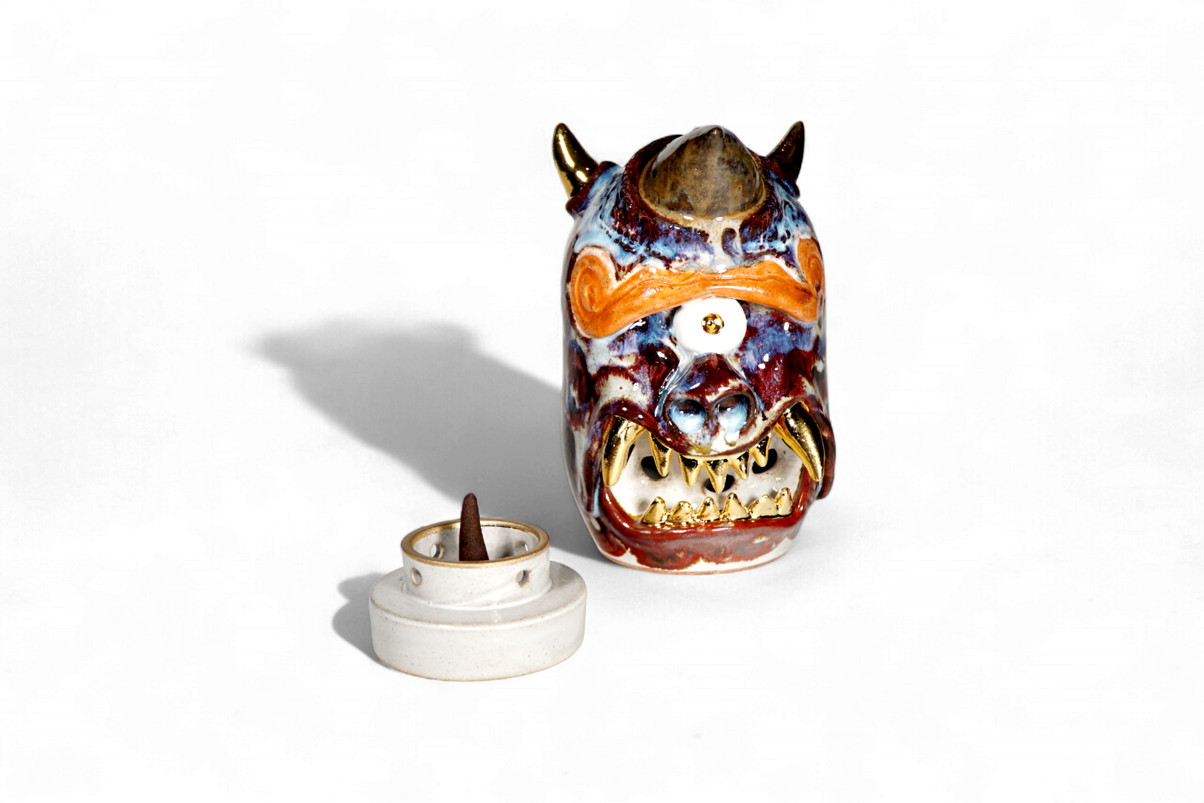 Made by sculpting and wheel throwing, the scent of incense burner spreads subtly through the hollow parts of the lid.