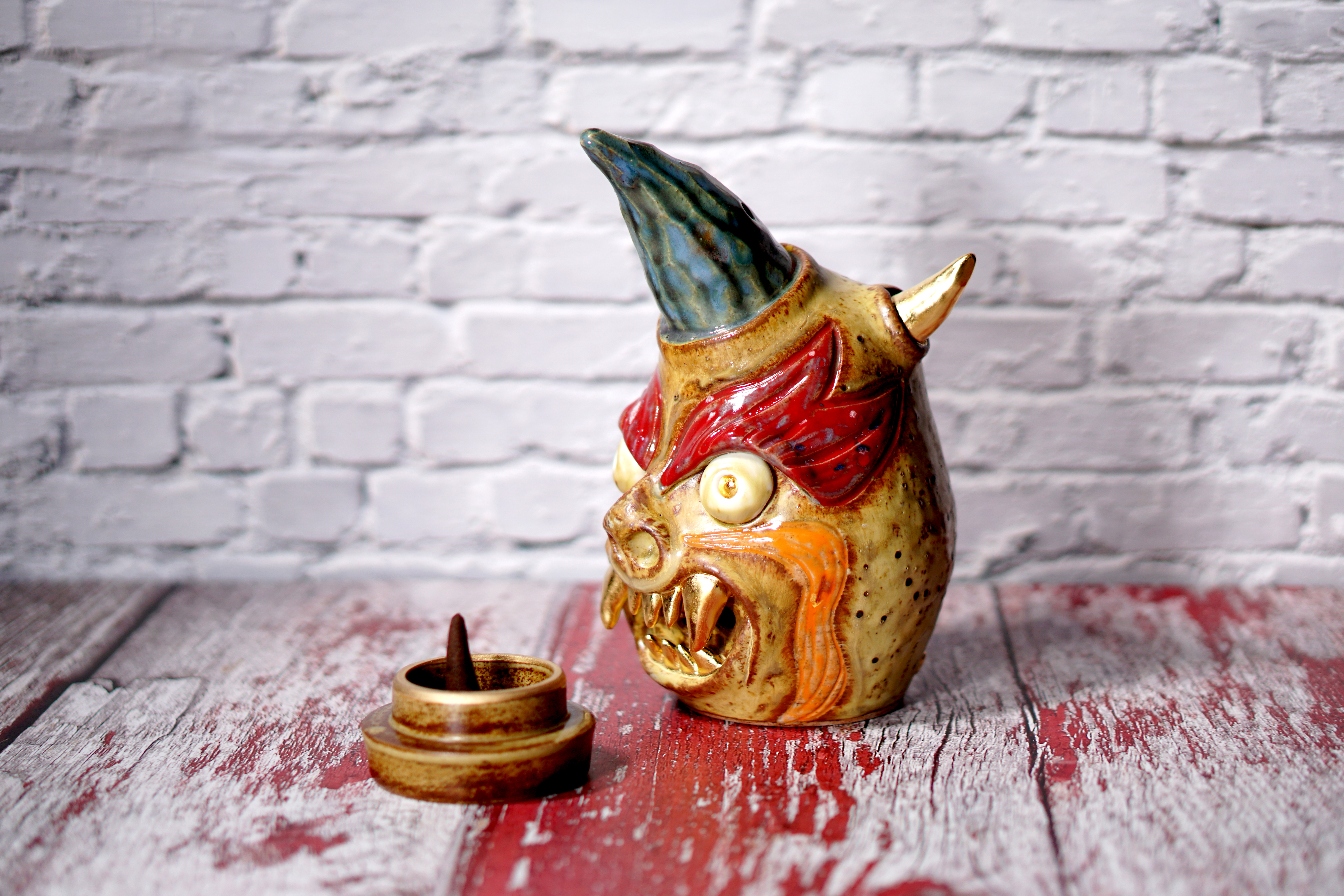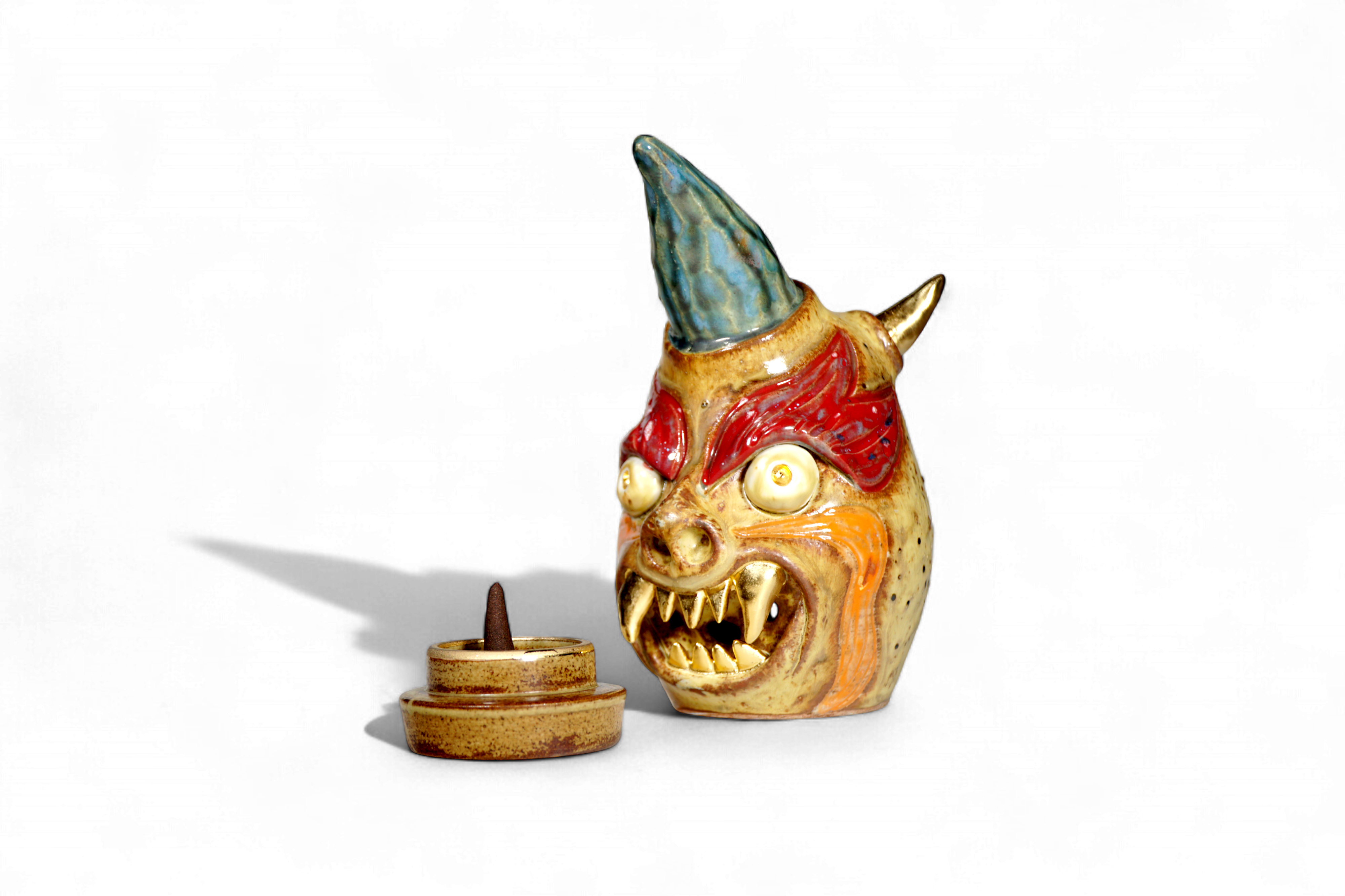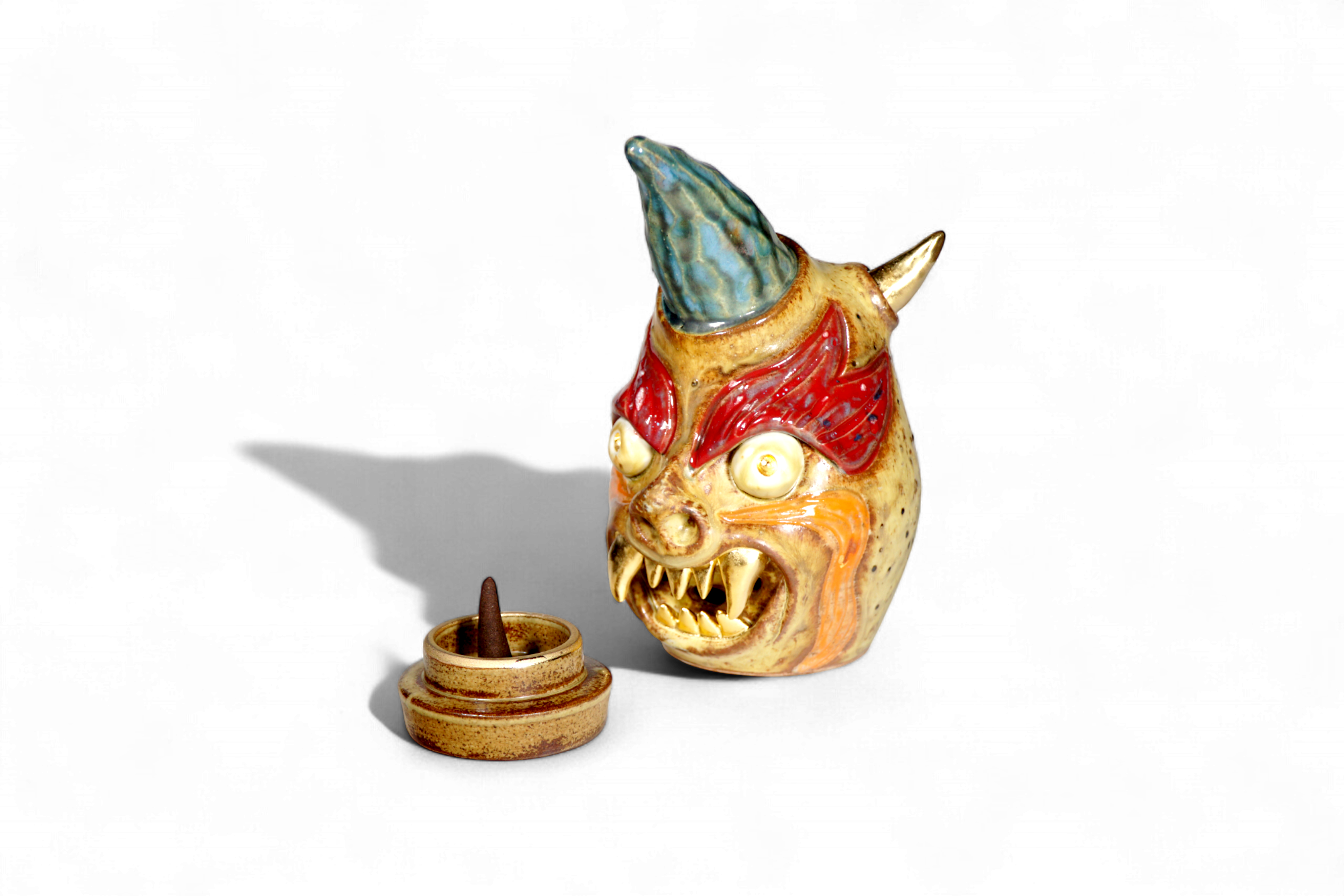 Made by sculpting and wheel throwing, the scent of incense burner spreads subtly through the hollow parts of the lid.